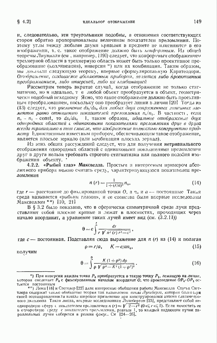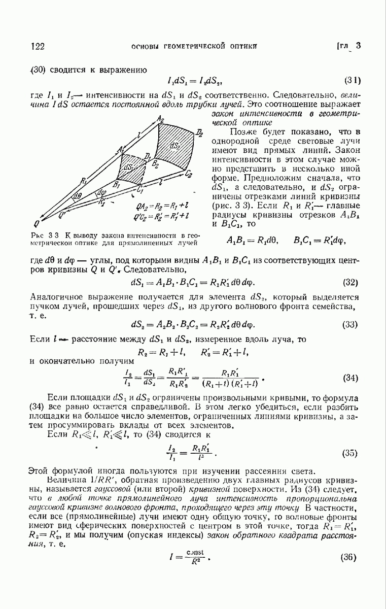 первой поверхностью), то амплитуды уменьшаются почти в отношении параксиальных радиусов кривизны волновых фронтов.