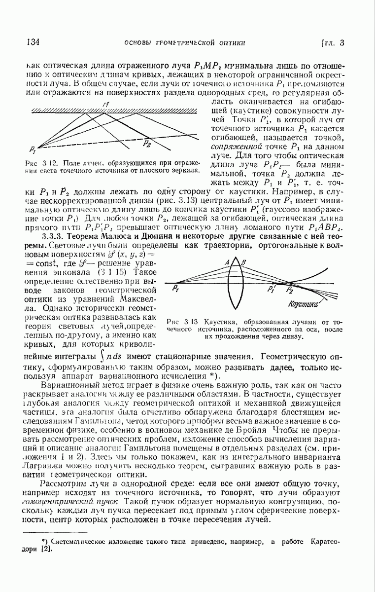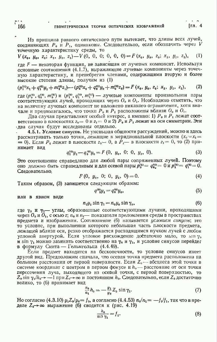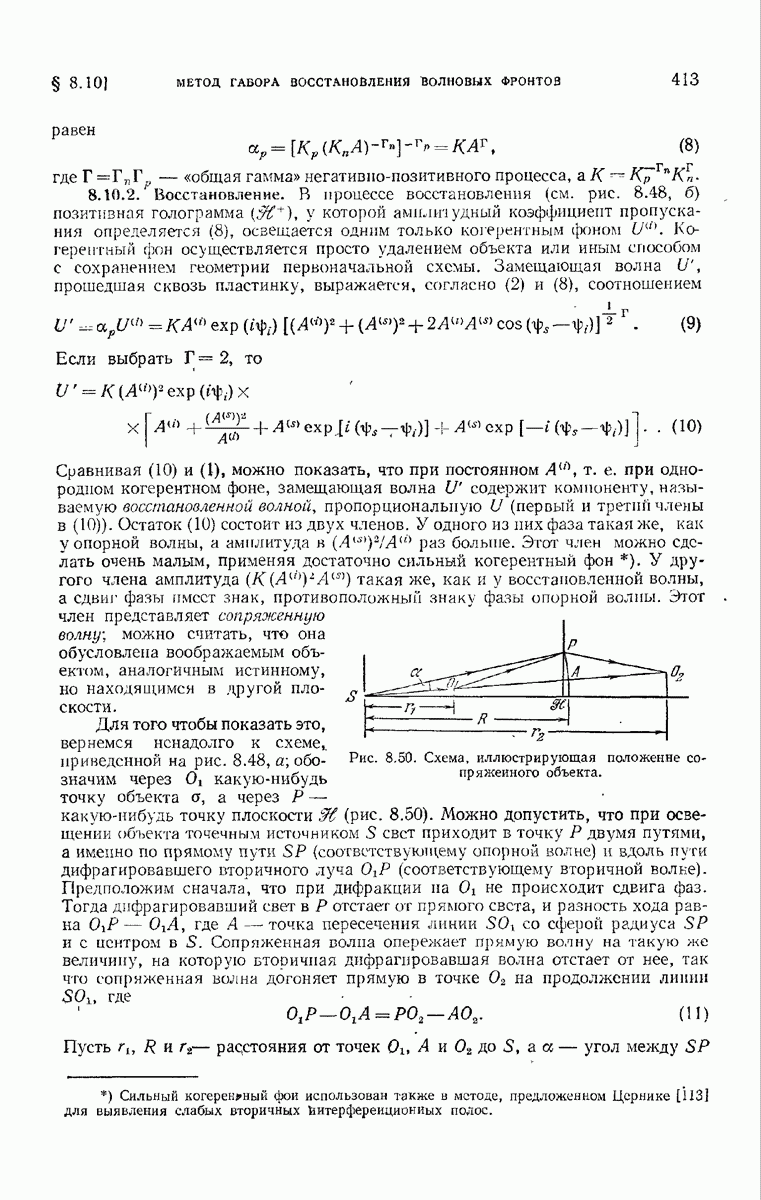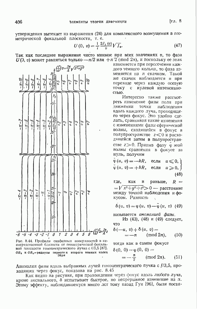 (см. рис. 8.7). Те же рассуждения применимы к обоим нолям и на любом другом волновом фронте, движущемся в пространстве между и второй поверхностью а. В самом деле, в п. 3.1.3 было показано, что в однородной среде направление колебаний вдоль каждого луча остается постоянным и, так как волновые фронты близки к сферическим (с центром в параксиальном изображении точки