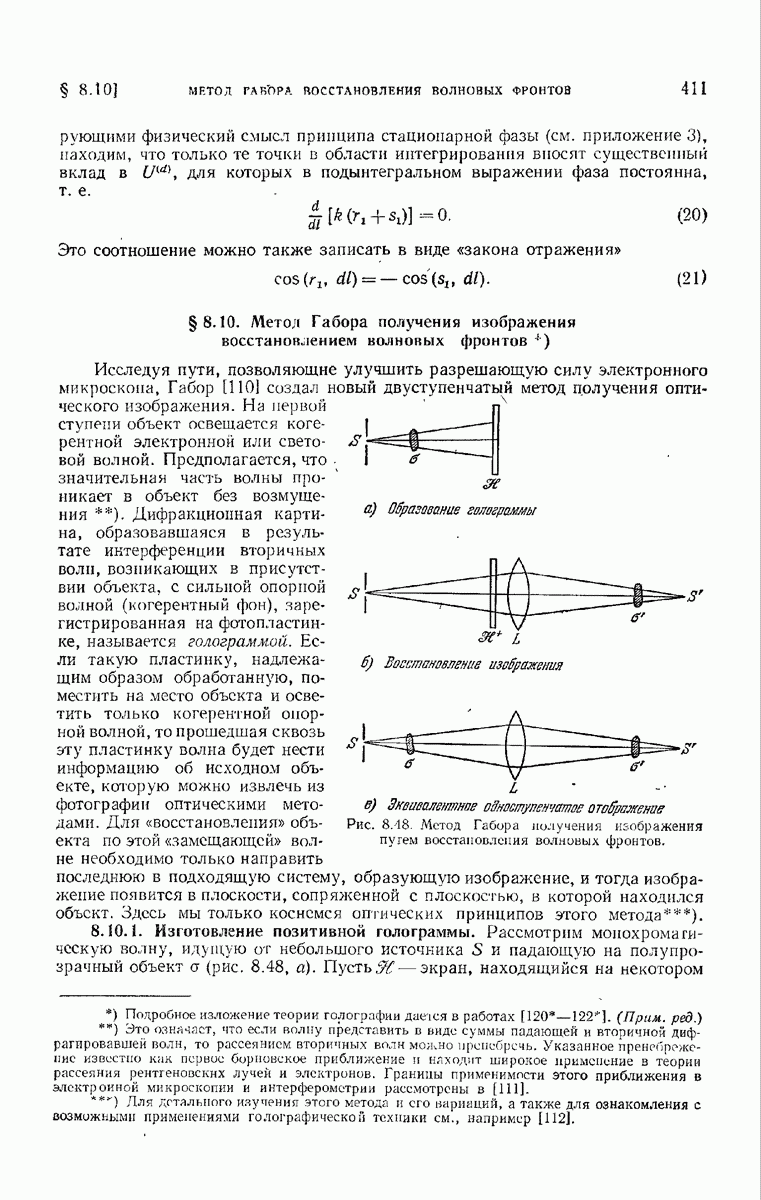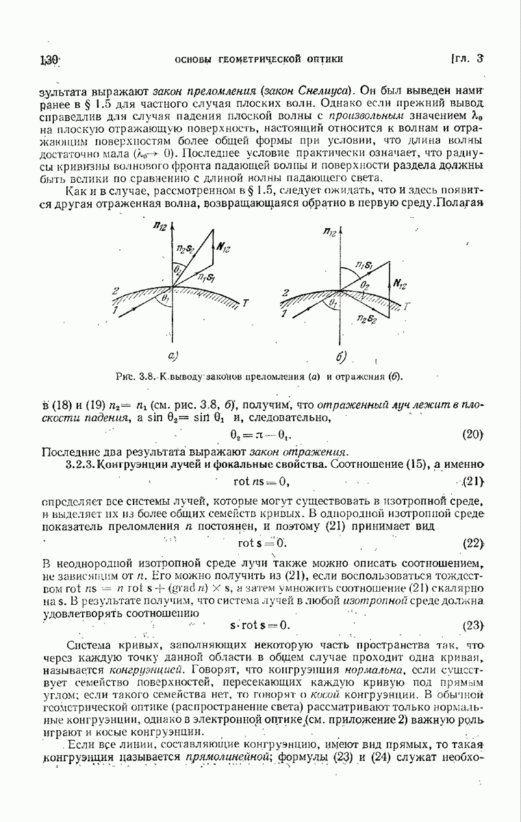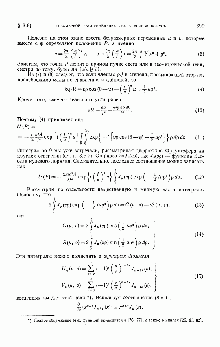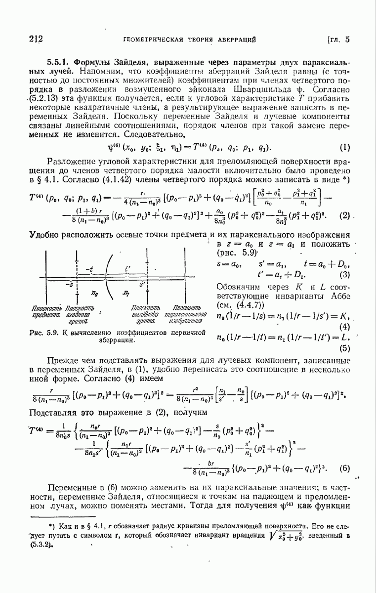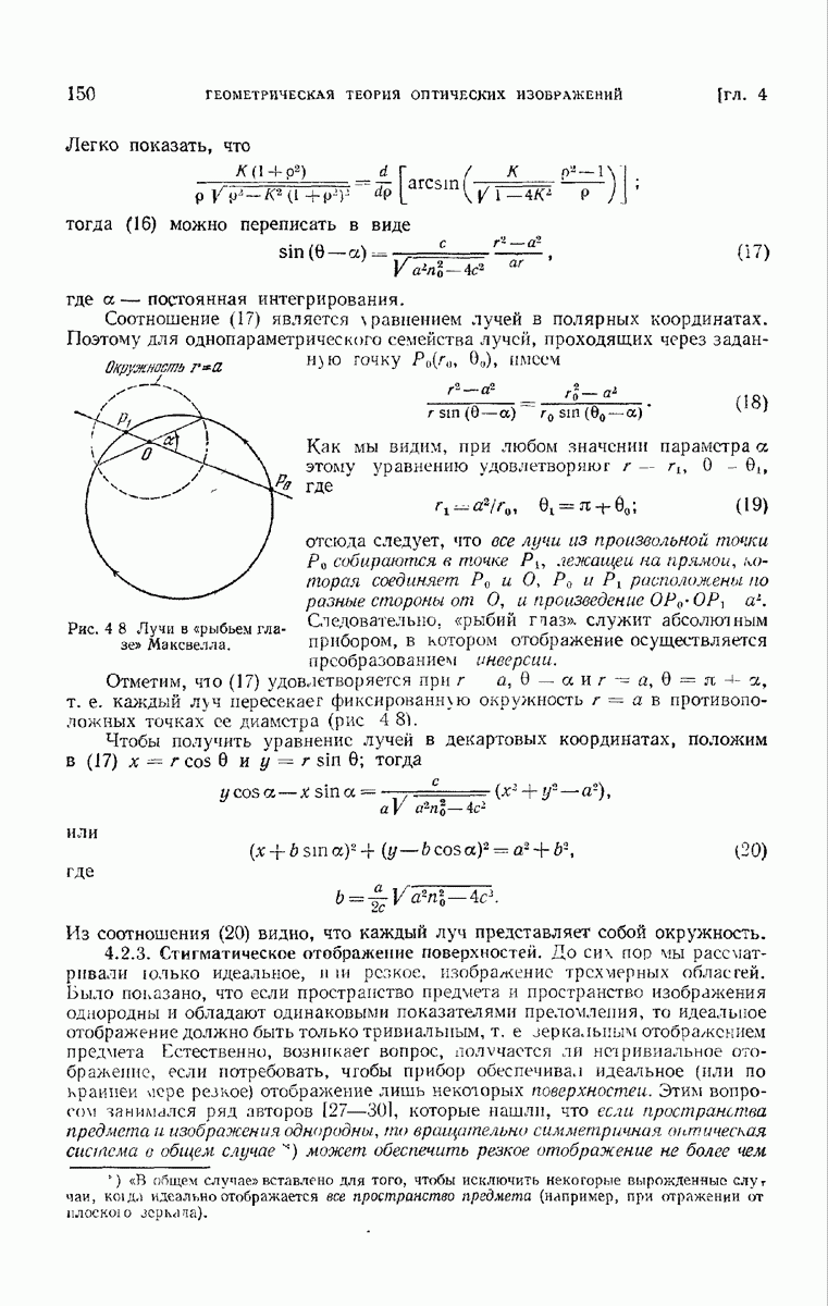 (см. рис. 8.7). Те же рассуждения применимы к обоим нолям и на любом другом волновом фронте, движущемся в пространстве между и второй поверхностью а. В самом деле, в п. 3.1.3 было показано, что в однородной среде направление колебаний вдоль каждого луча остается постоянным и, так как волновые фронты близки к сферическим (с центром в параксиальном изображении точки