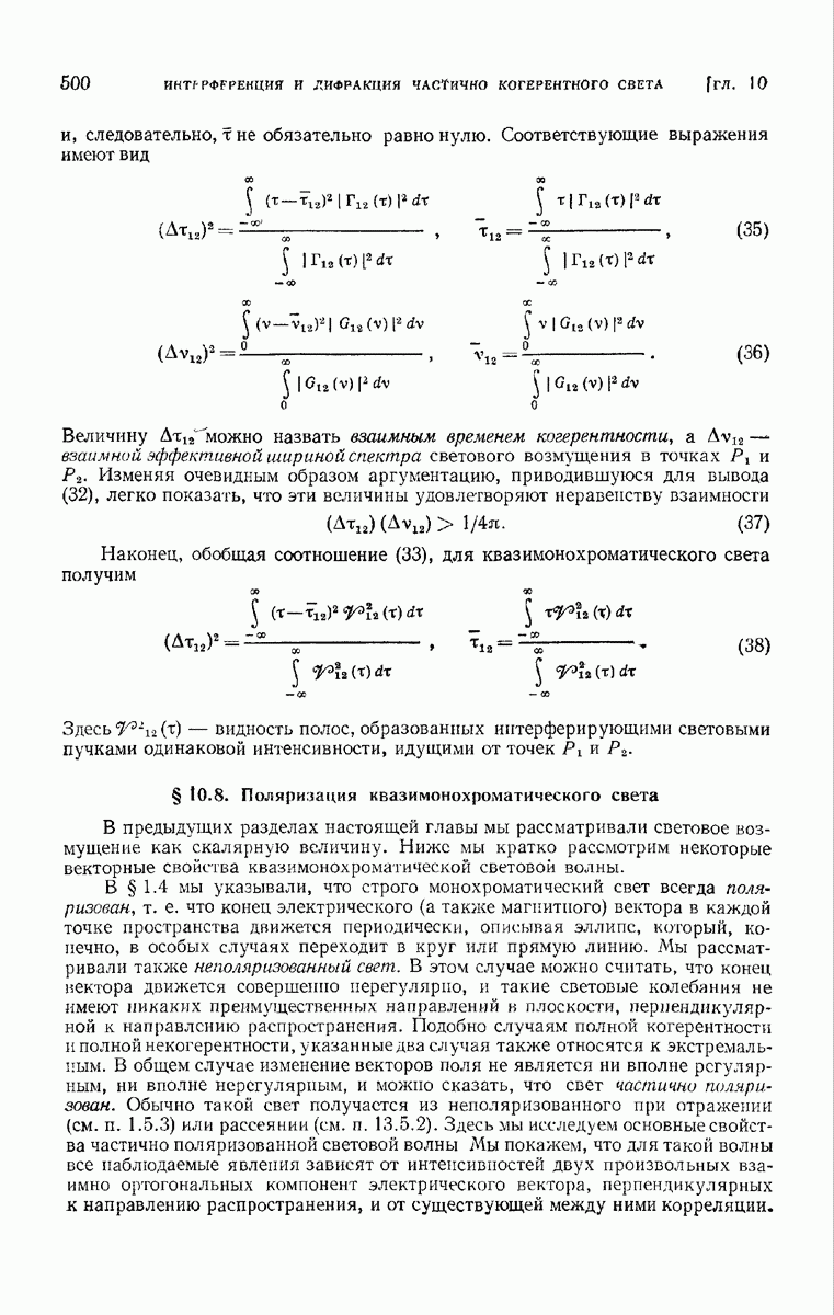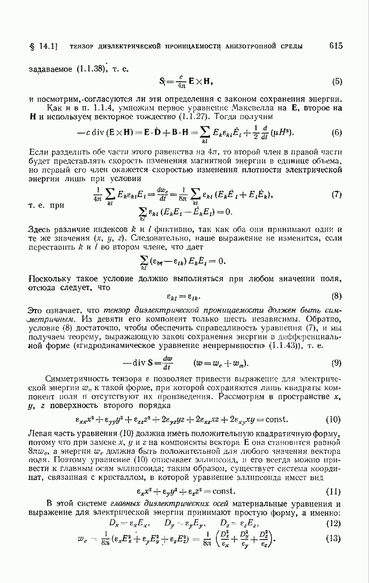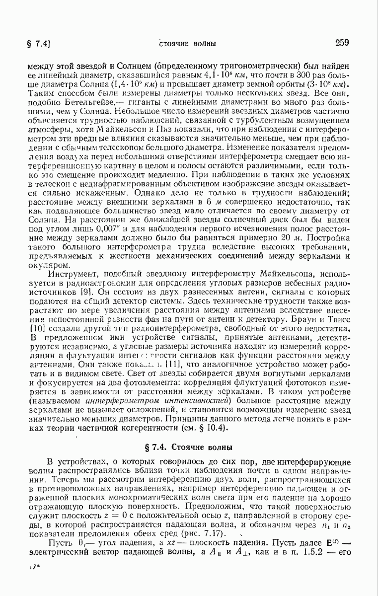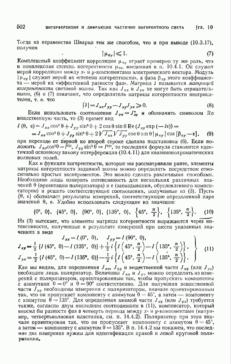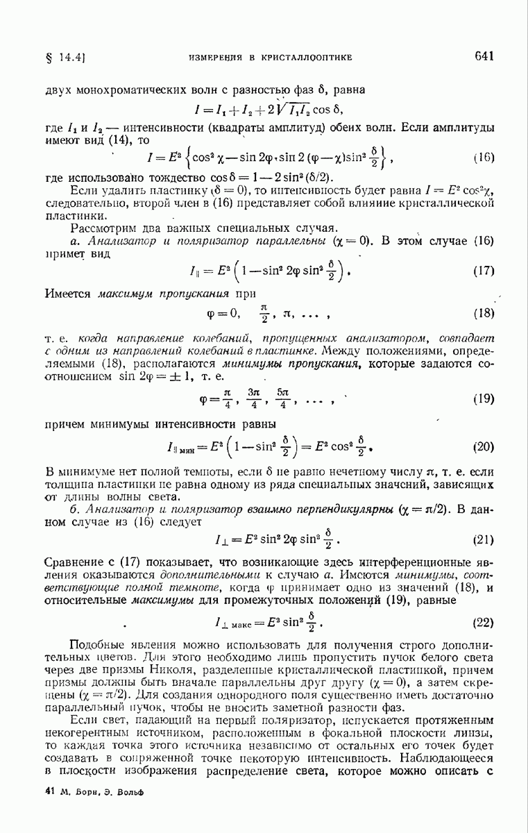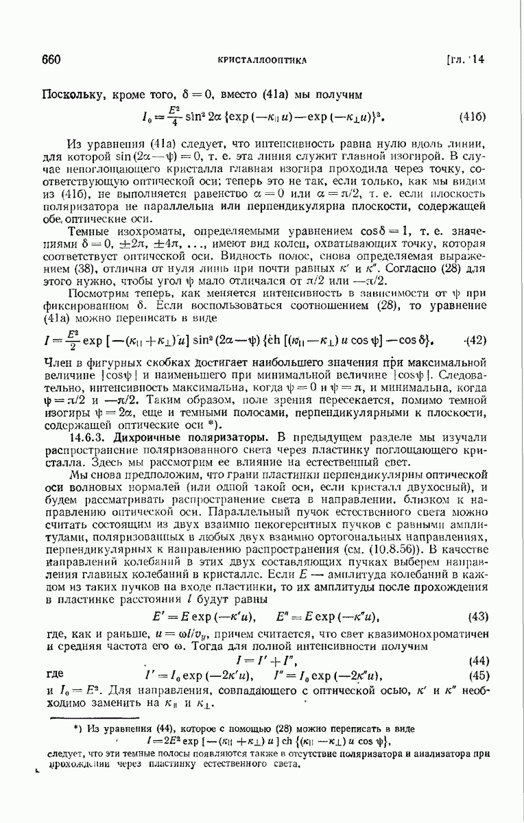 измеряются не мгновенные значения этих величин, а лишь значения, усредненные по времени в интервале, большом по сравнению с периодом световых колебаний. Более того, обычно имеют дело с естественным светом, где в наблюдаемом (макроскопическом) поле нет преимущественных направлений поляризации. В этом случае первостепенное значение имеет интенсивность I, уже определенная в п. 1.1.4 как средняя повремени энергия, протекающая в единицу времени через единицу площади, содержащую электрический и магнитный векторы, т. е.