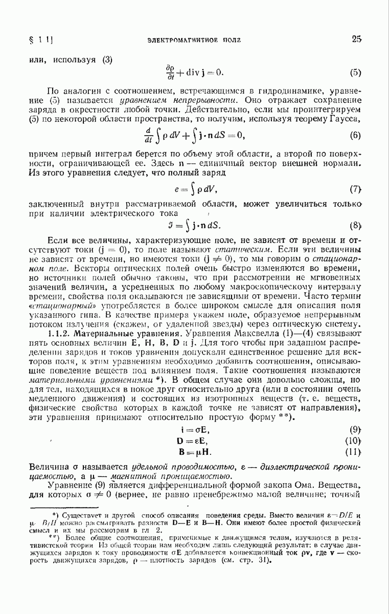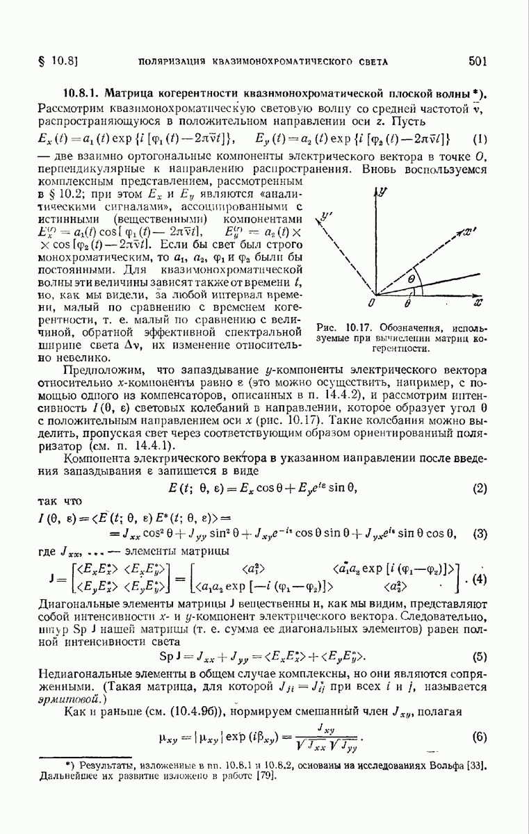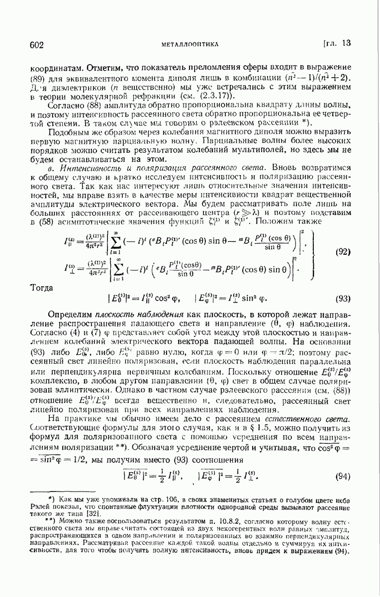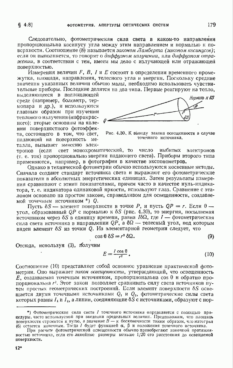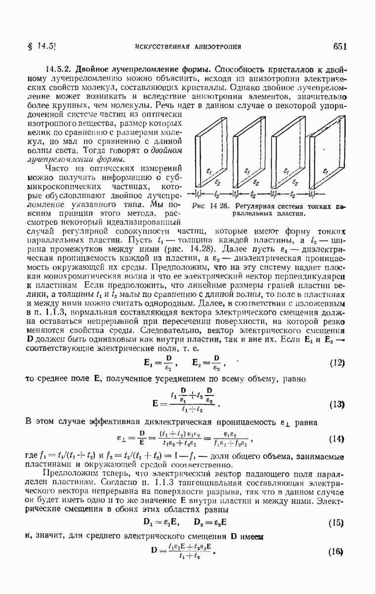 измеряются не мгновенные значения этих величин, а лишь значения, усредненные по времени в интервале, большом по сравнению с периодом световых колебаний. Более того, обычно имеют дело с естественным светом, где в наблюдаемом (макроскопическом) поле нет преимущественных направлений поляризации. В этом случае первостепенное значение имеет интенсивность I, уже определенная в п. 1.1.4 как средняя повремени энергия, протекающая в единицу времени через единицу площади, содержащую электрический и магнитный векторы, т. е.
