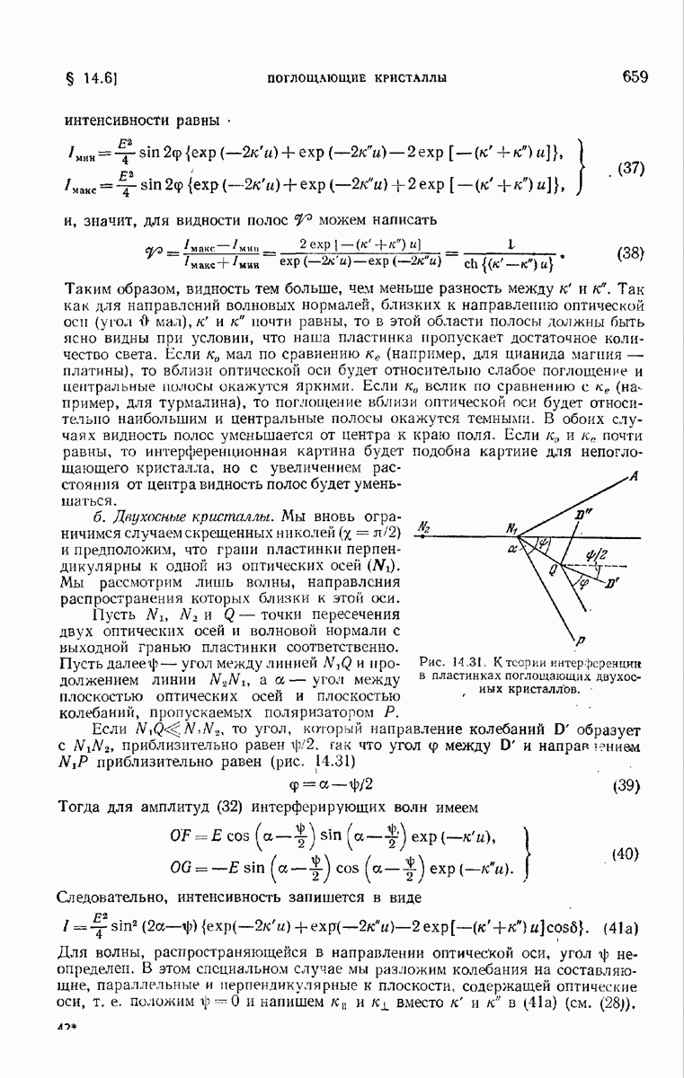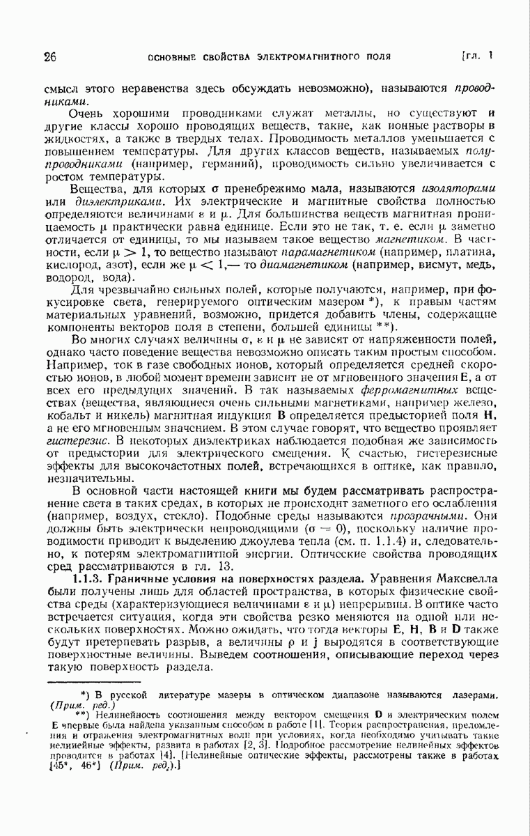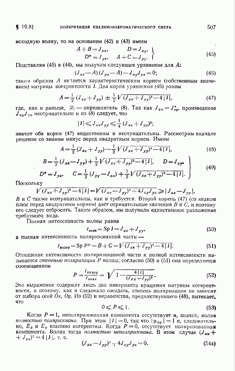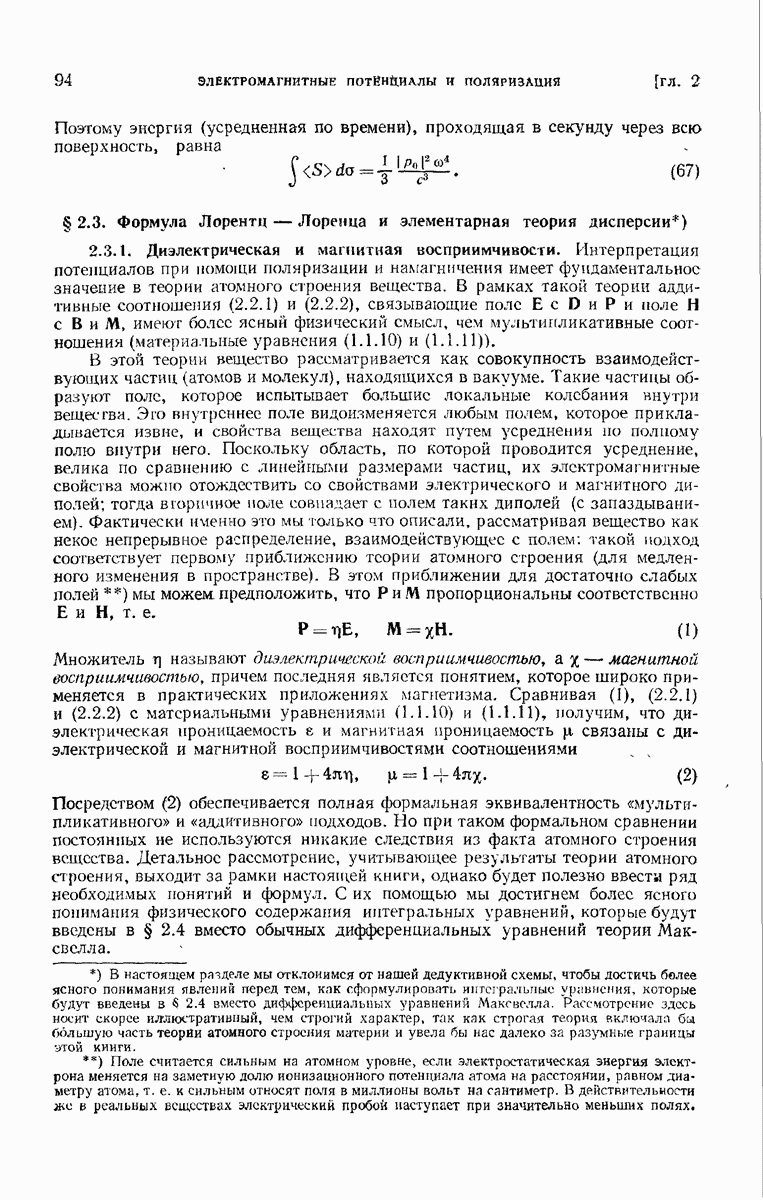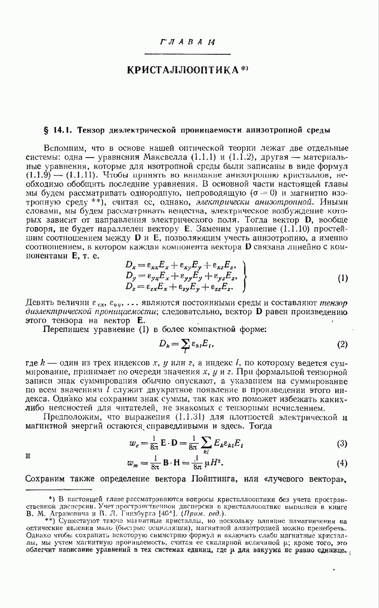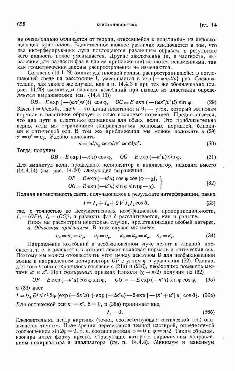 измеряются не мгновенные значения этих величин, а лишь значения, усредненные по времени в интервале, большом по сравнению с периодом световых колебаний. Более того, обычно имеют дело с естественным светом, где в наблюдаемом (макроскопическом) поле нет преимущественных направлений поляризации. В этом случае первостепенное значение имеет интенсивность I, уже определенная в п. 1.1.4 как средняя повремени энергия, протекающая в единицу времени через единицу площади, содержащую электрический и магнитный векторы, т. е.