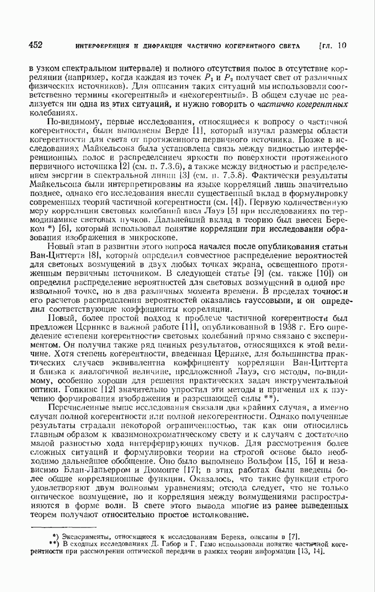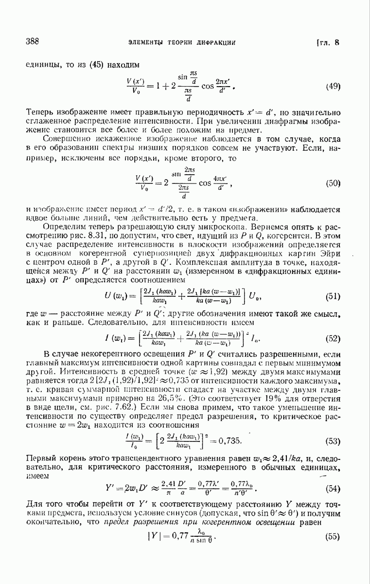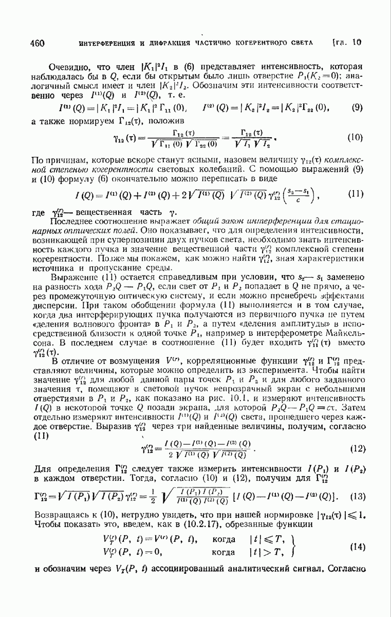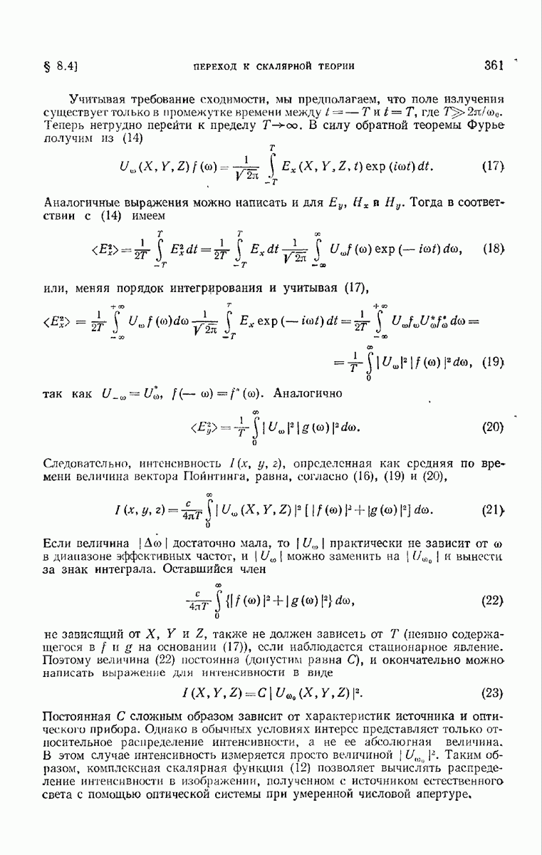 Мы покажем, что интенсивность электромагнитного поля, связанного с прохождением естественного света через правильно рассчитанные оптические приборы с отверстием средней величины, можно приближенно выразить через одну комплексную скалярную волновую функцию с помощью формулы