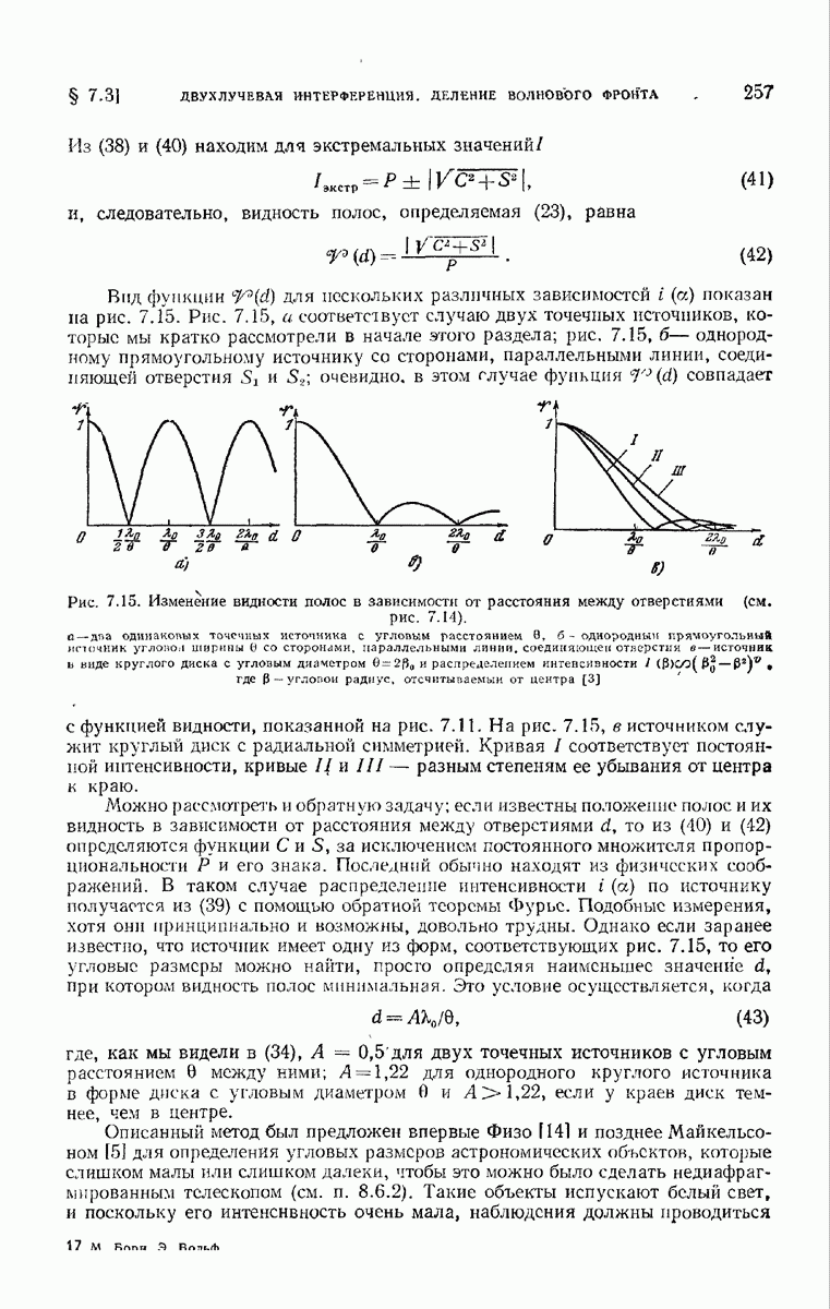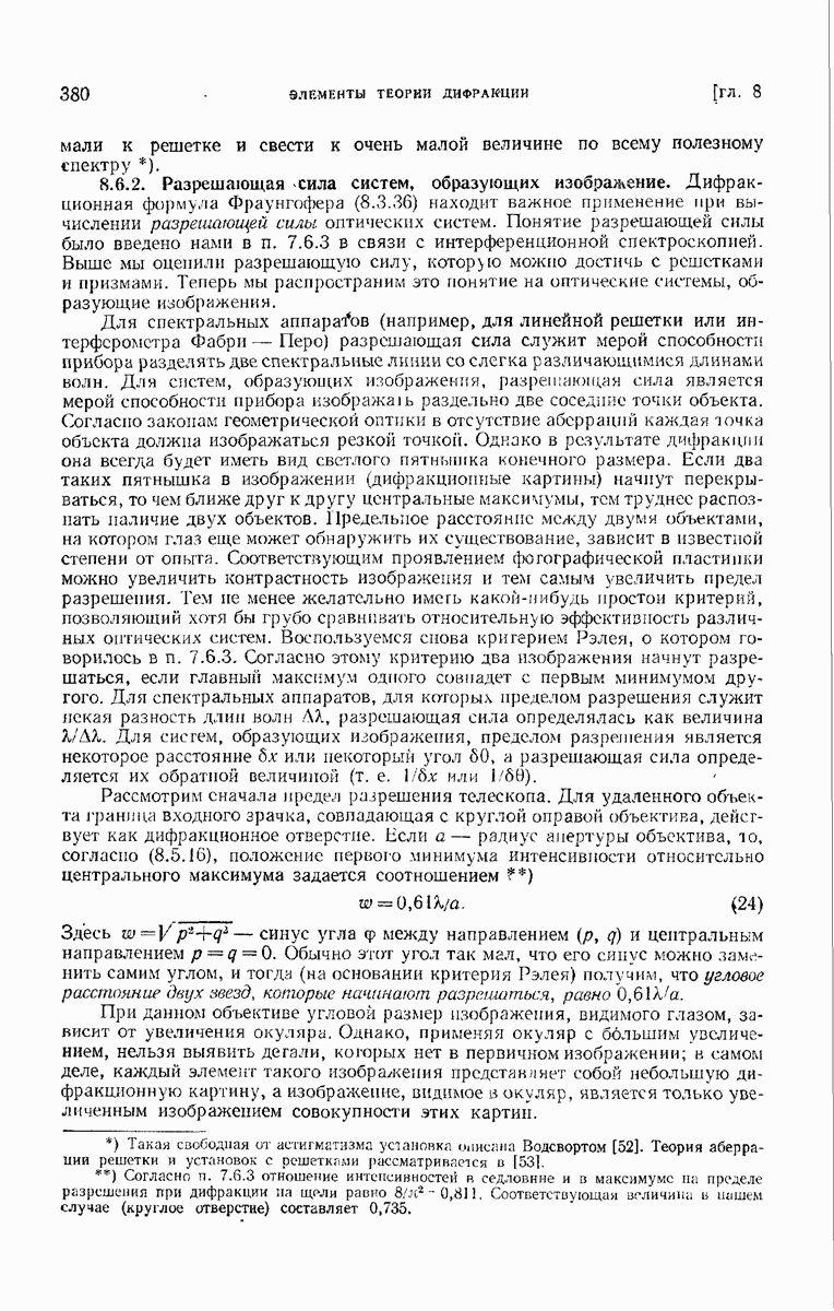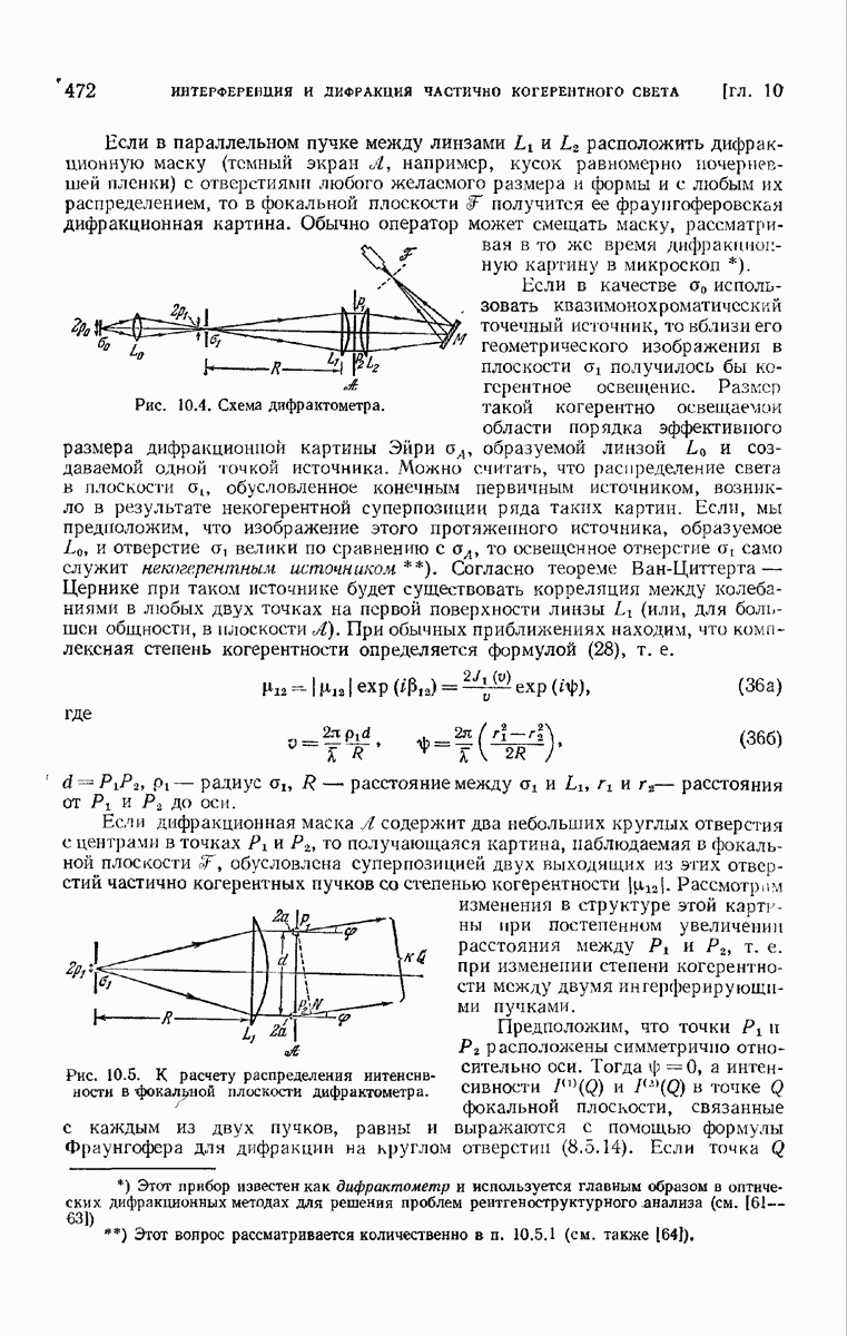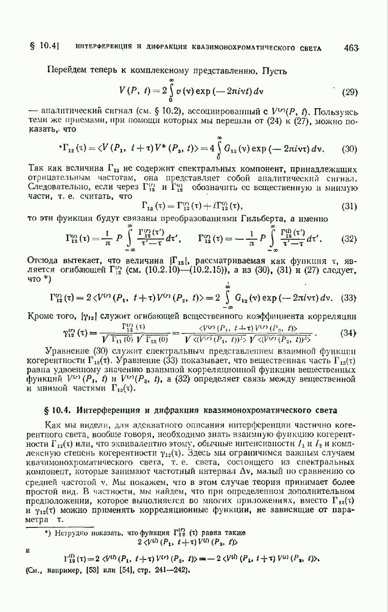 Мы покажем, что интенсивность электромагнитного поля, связанного с прохождением естественного света через правильно рассчитанные оптические приборы с отверстием средней величины, можно приближенно выразить через одну комплексную скалярную волновую функцию с помощью формулы