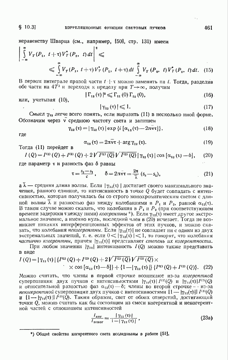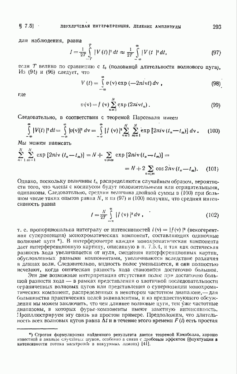 Так как исследуемое поле можно рассматривать как суперпозицию строго монохроматических полей, то удобнее сначала исследовать вклад, вносимый в интенсивность каждым монохроматическим осциллятором Герца, находящимся в