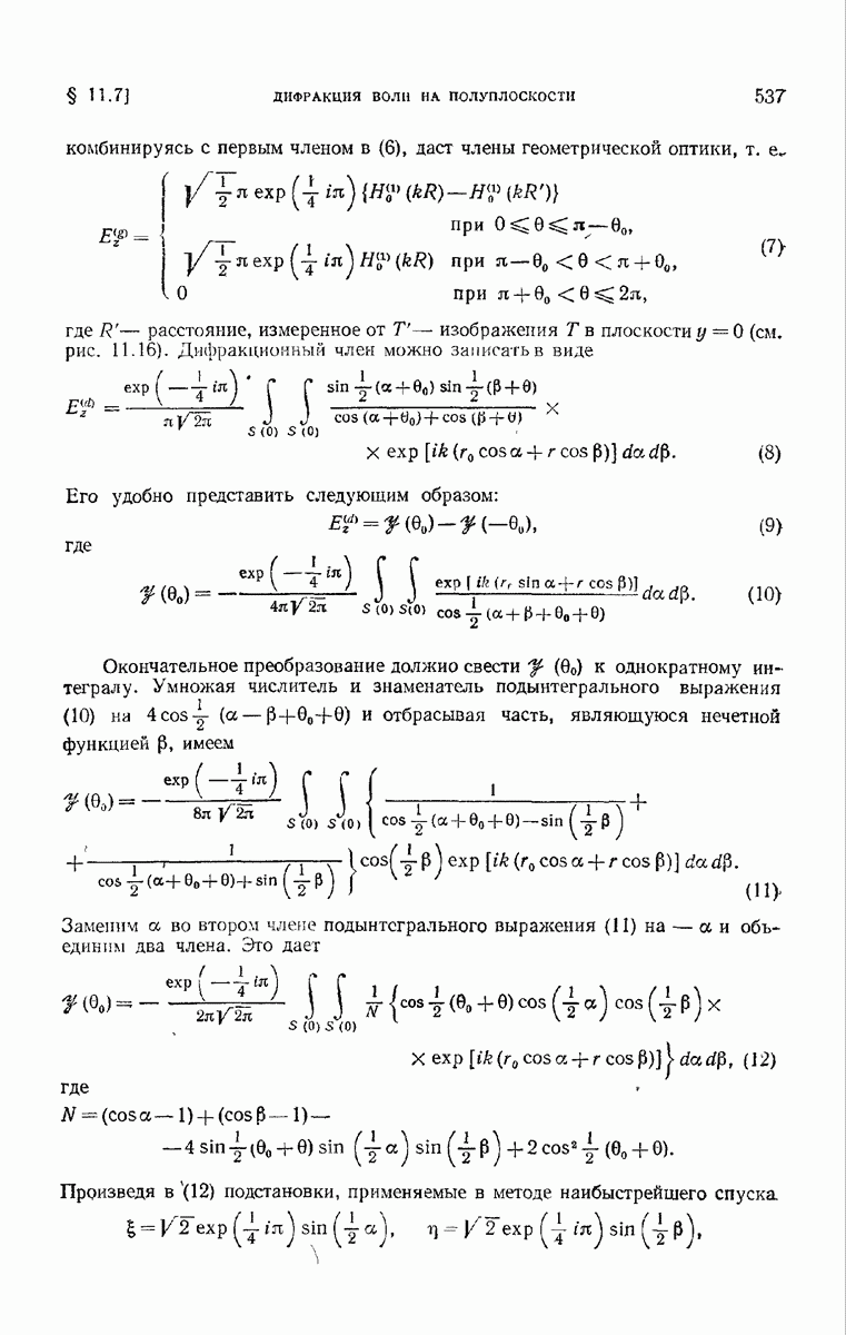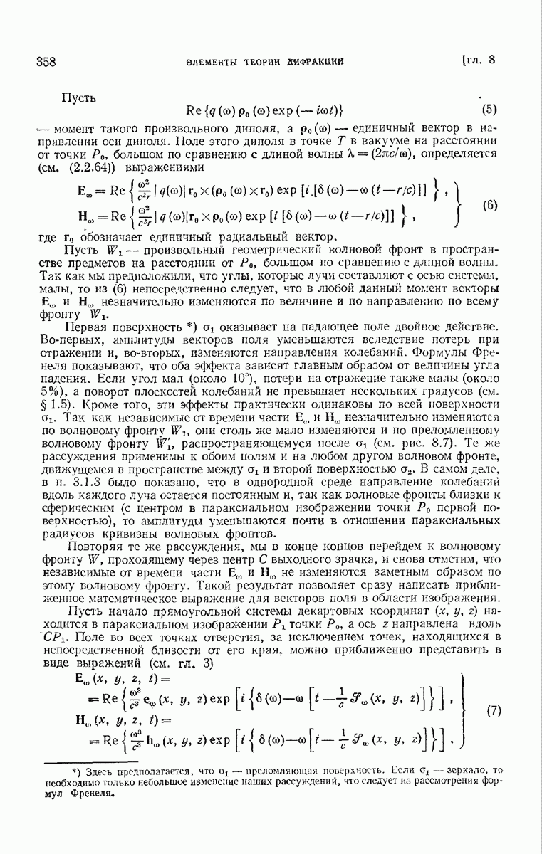 не изменяются заметным образом по этому волновому фронту. Такой результат позволяет сразу написать приближенное математическое выражение для векторов поля в области изображения.