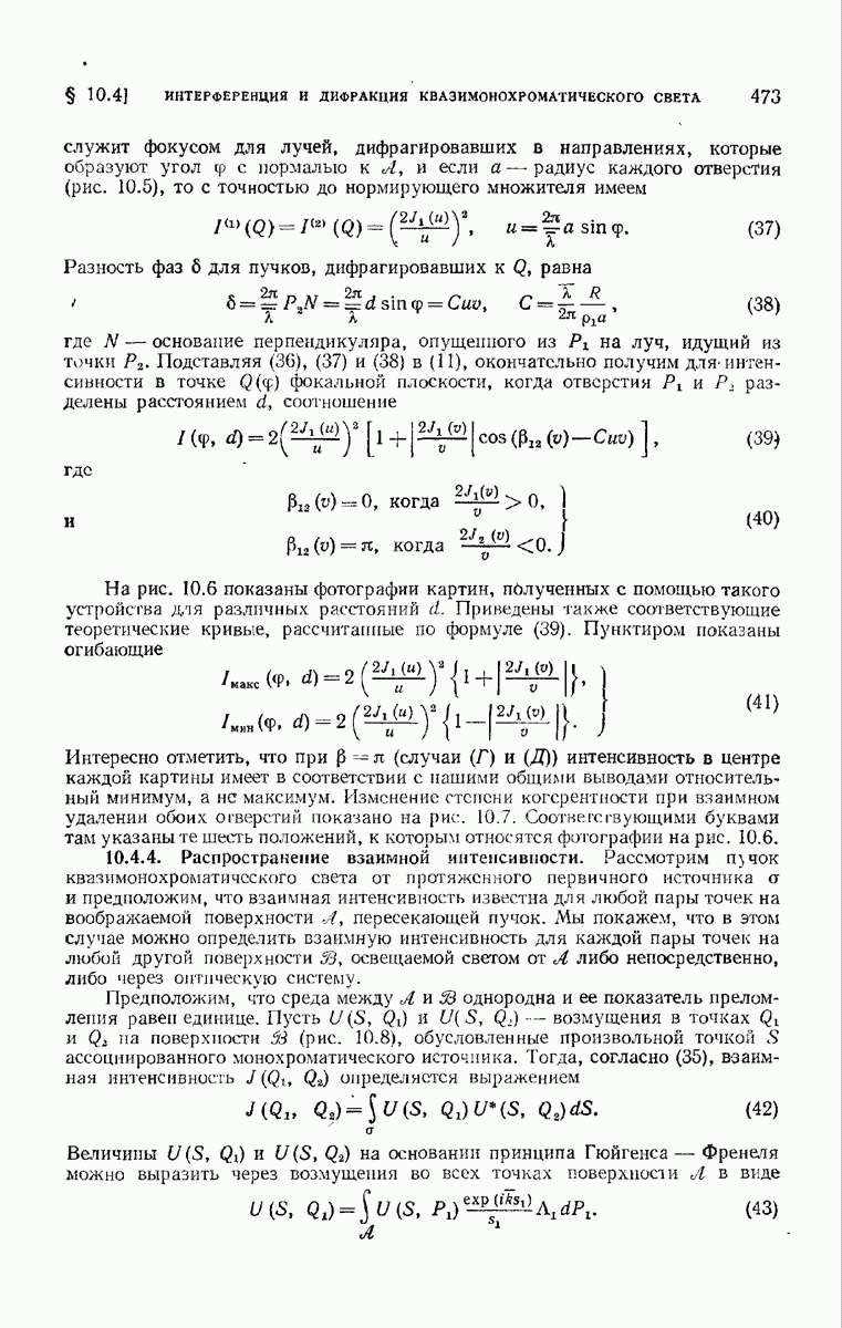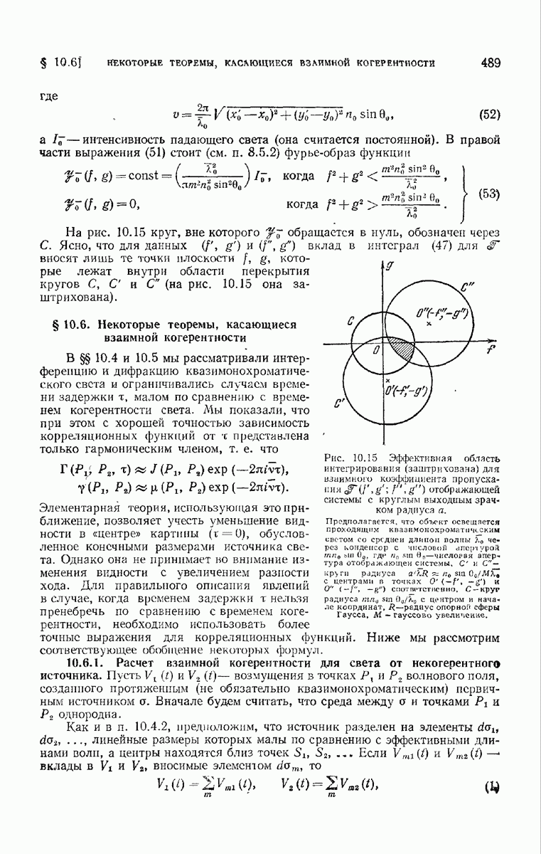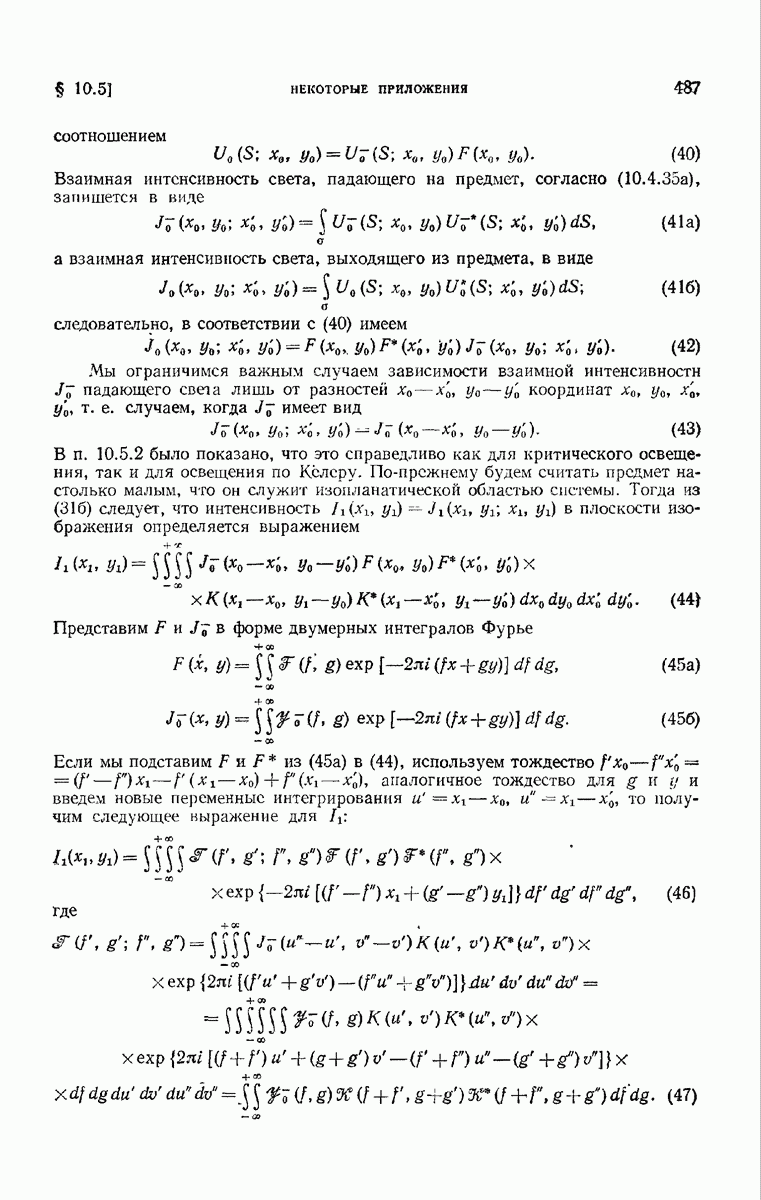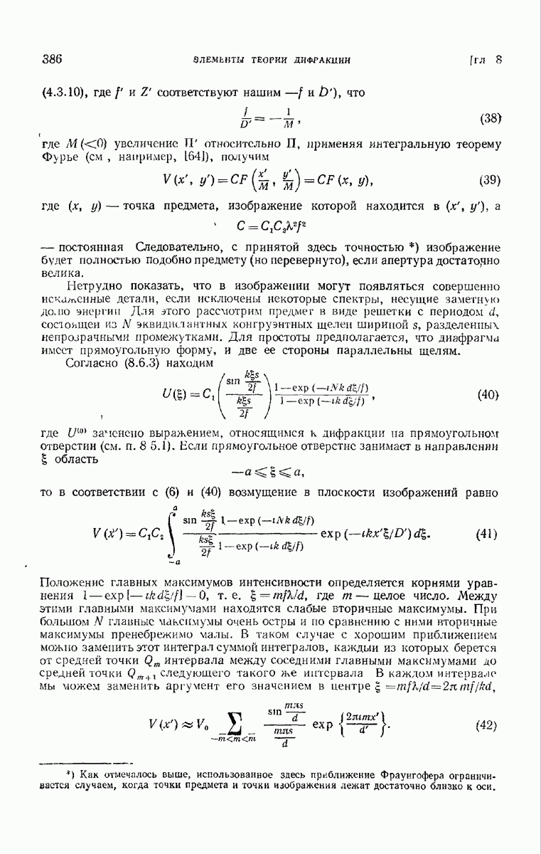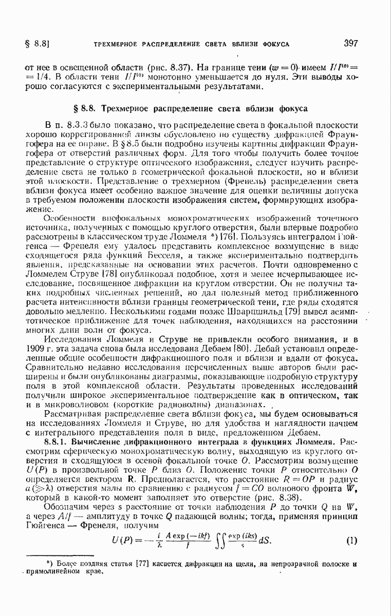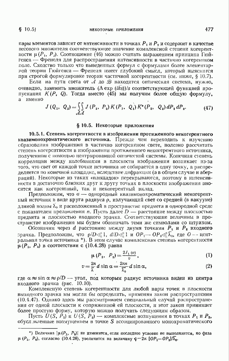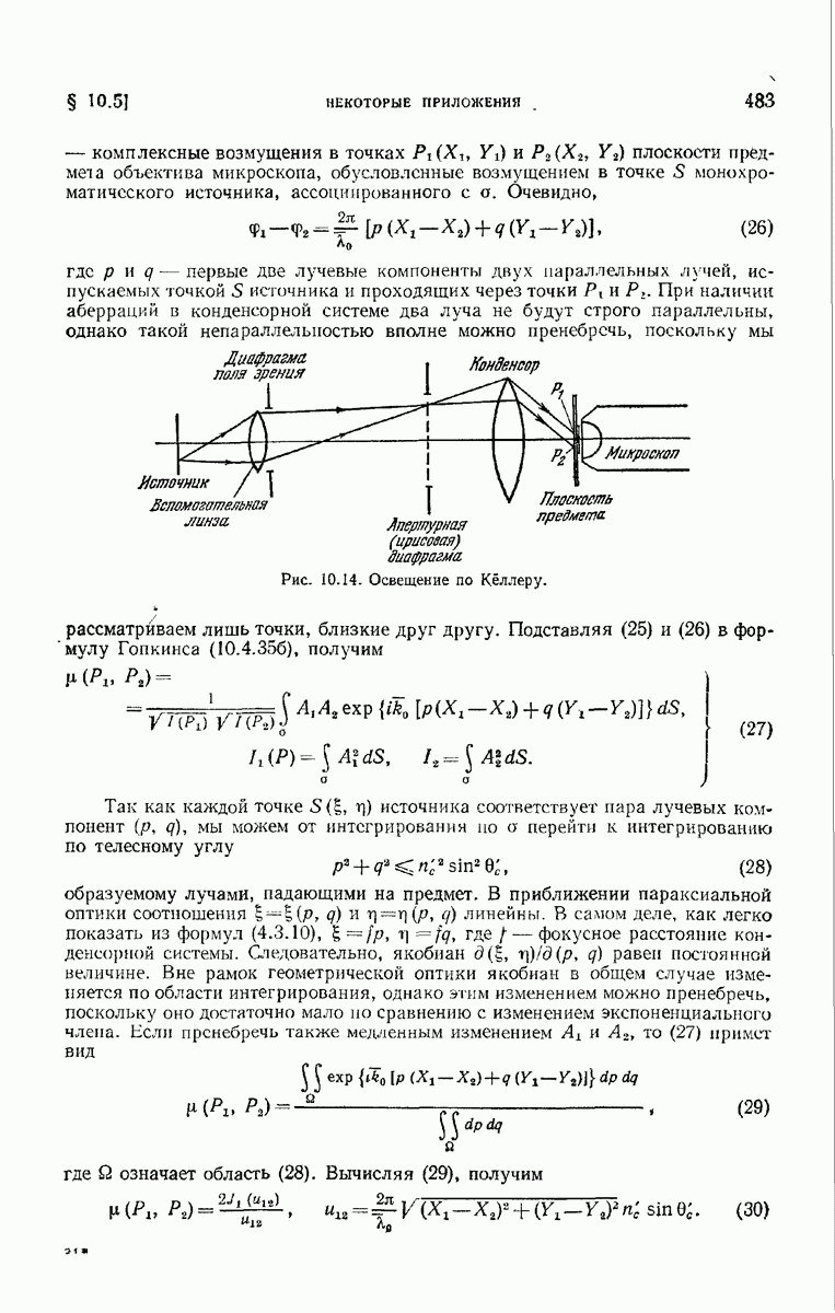 — точка в области изображений, где определяется интенсивность. Если углы, под которыми из Р видны диаметры выходного зрачка, малы, то, используя формулу Кирхгофа с теми же допущениями, как и в предыдущем параграфе, и интегрируя выражение (7) по части