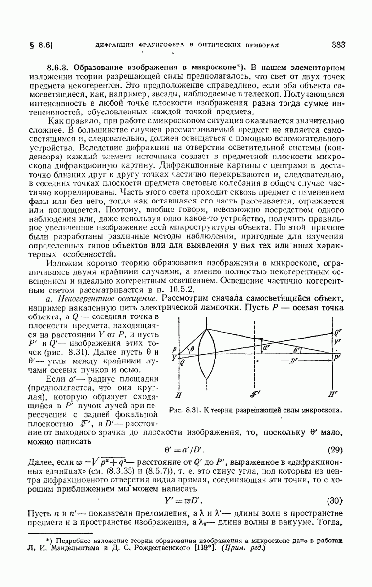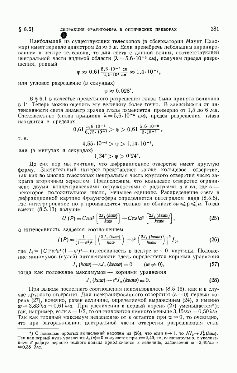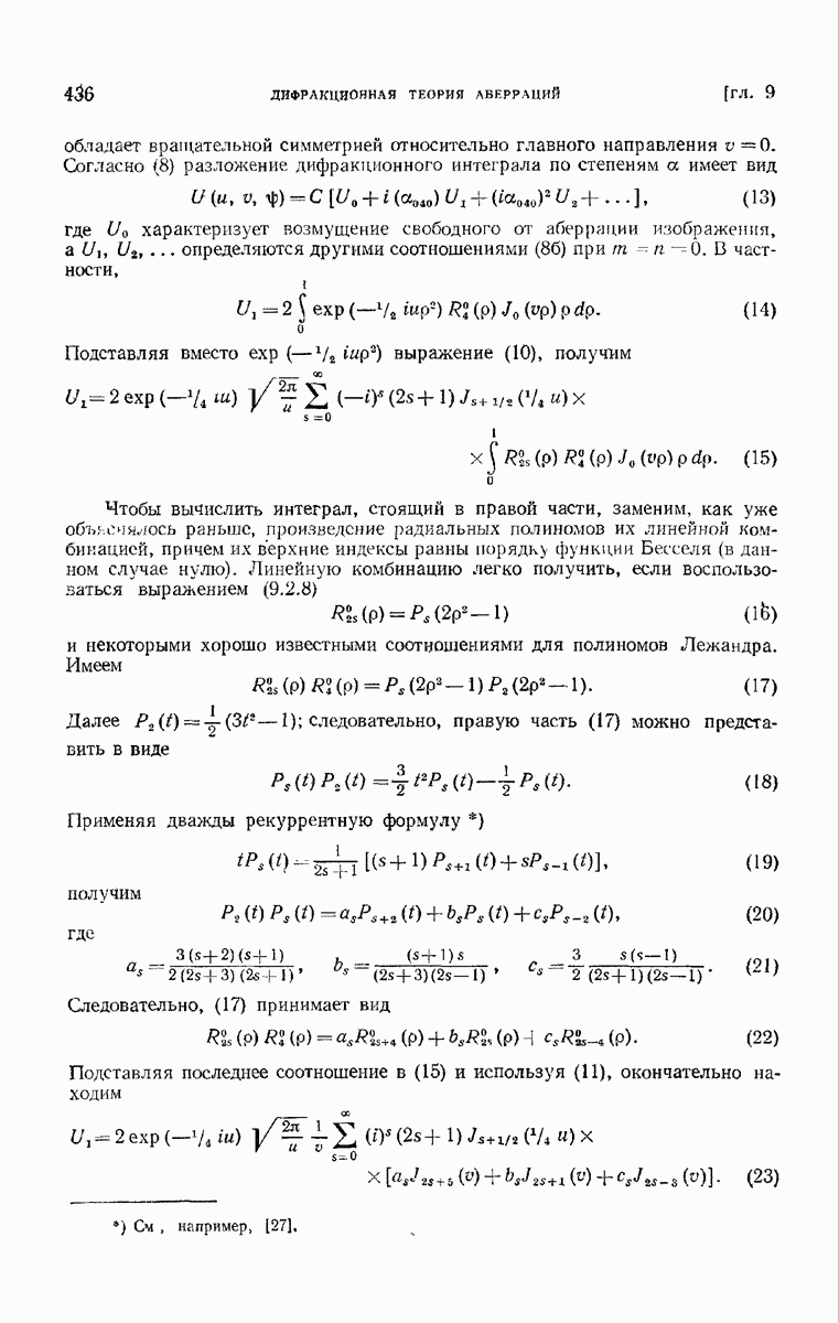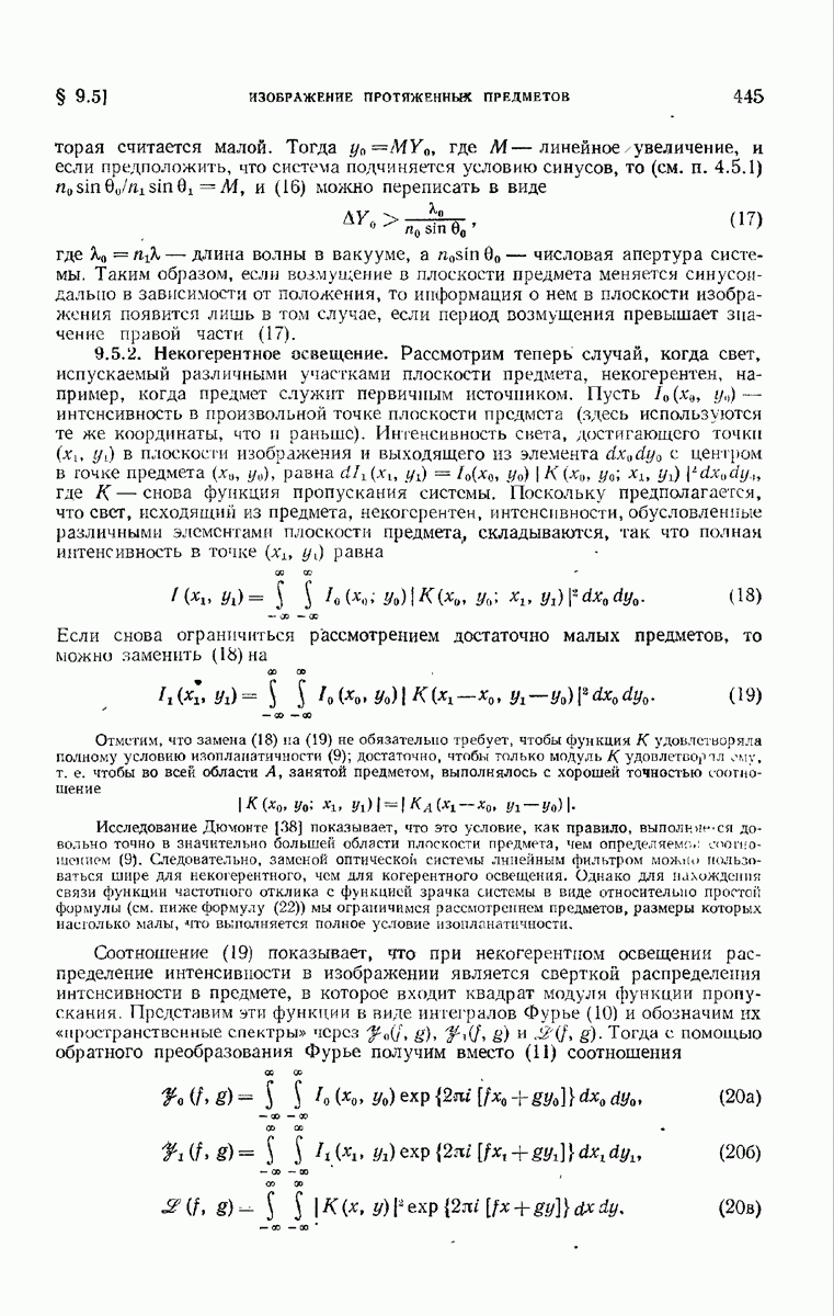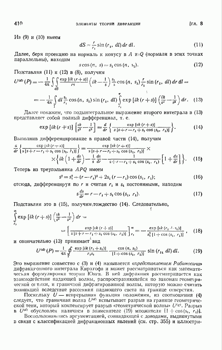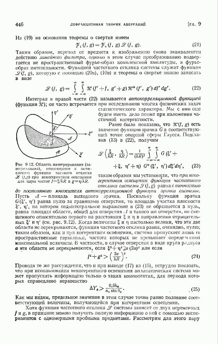 — точка в области изображений, где определяется интенсивность. Если углы, под которыми из Р видны диаметры выходного зрачка, малы, то, используя формулу Кирхгофа с теми же допущениями, как и в предыдущем параграфе, и интегрируя выражение (7) по части