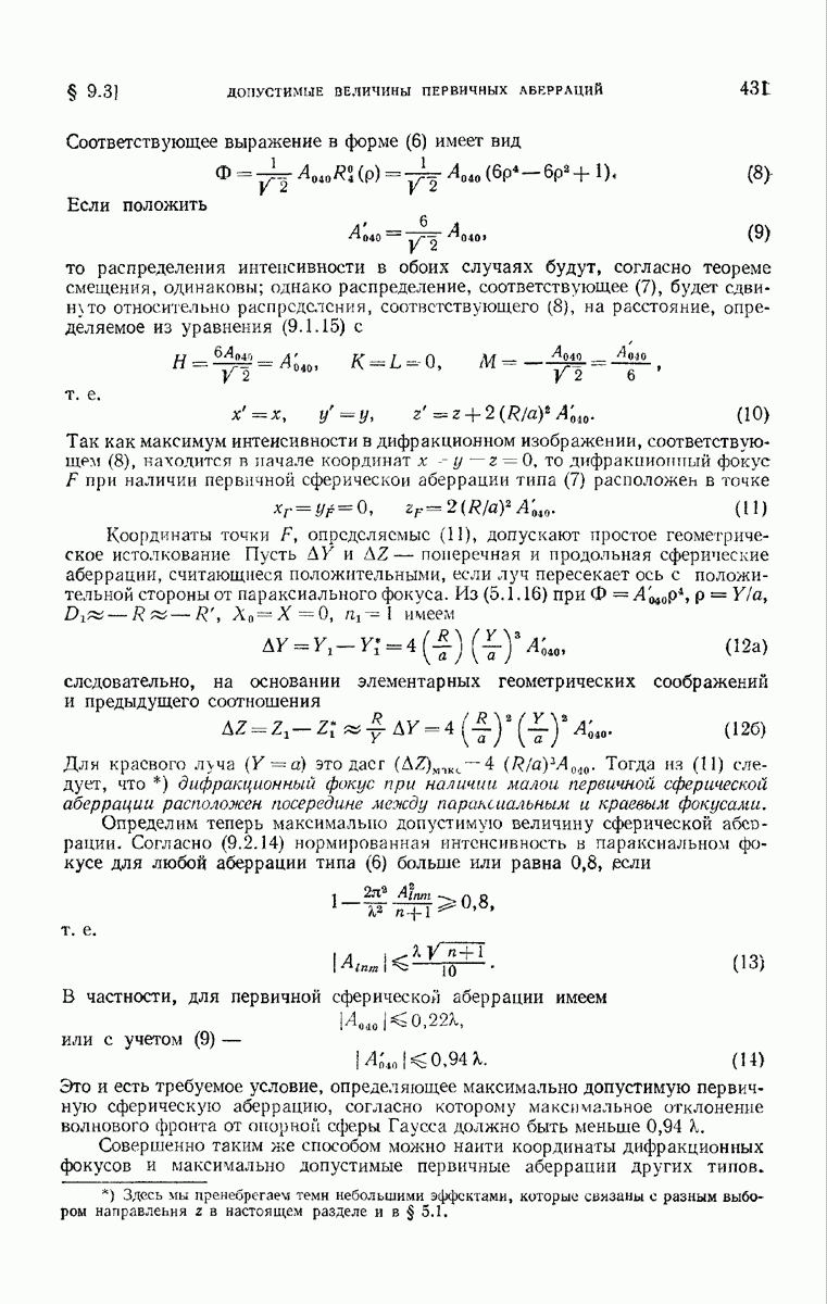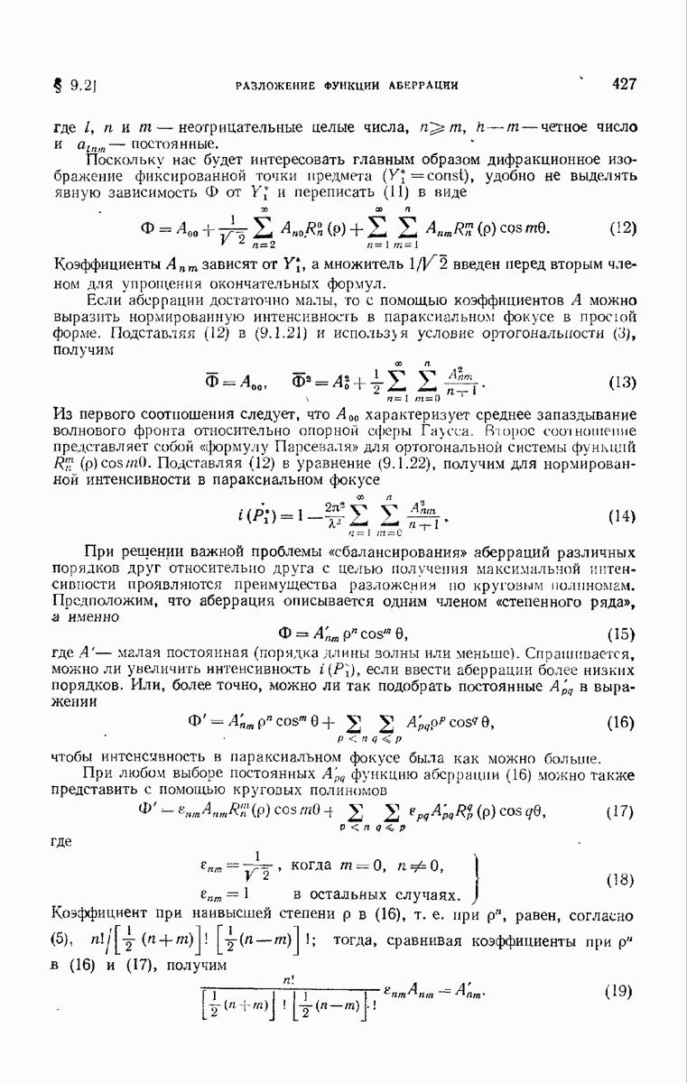 которые они принимают в центре С выходного зрачка. Тогда, поскольку эти векторы взаимно ортогональны и удовлетворяют (8), можно принять, если вдобавок считать