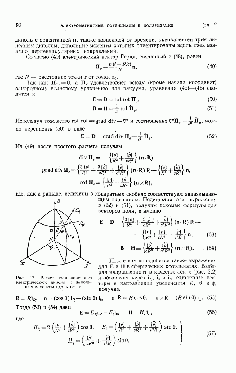 — единичный вектор в направлении оси диполя. Поле этого диполя в точке Т в вакууме на расстоянии от точки