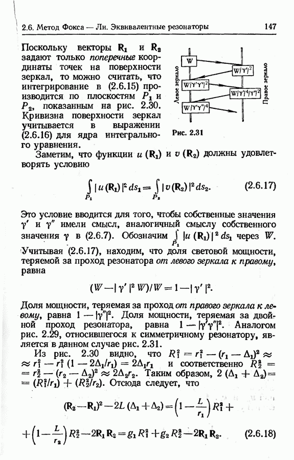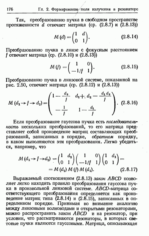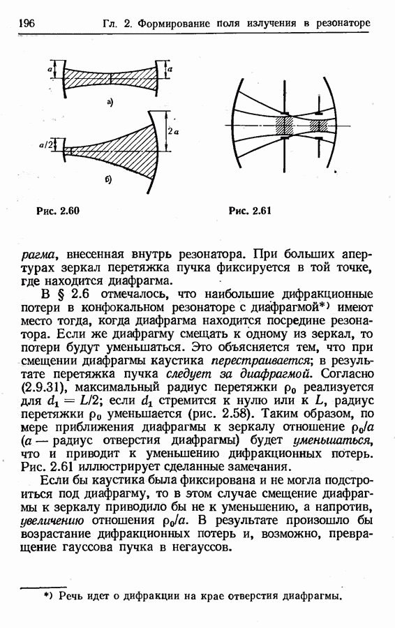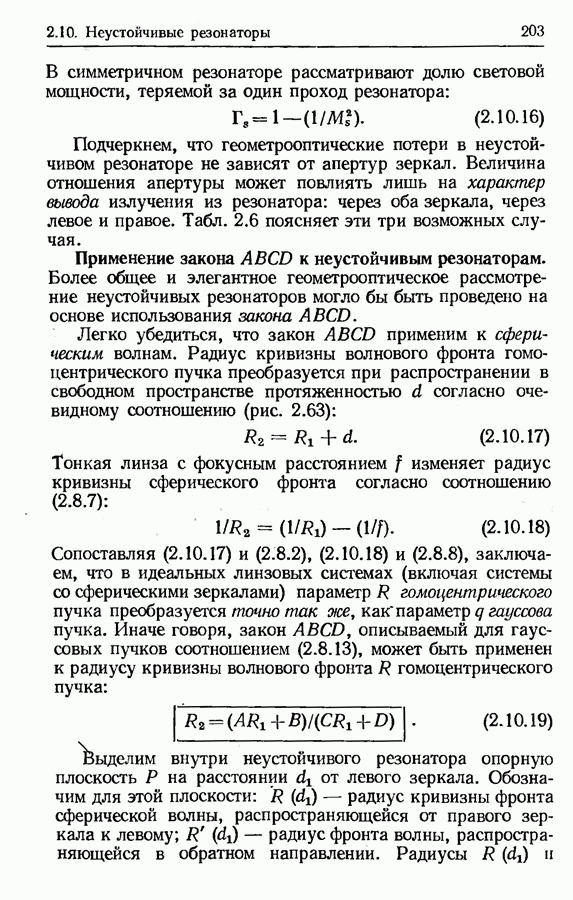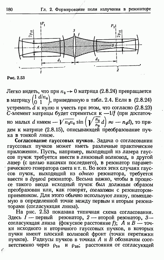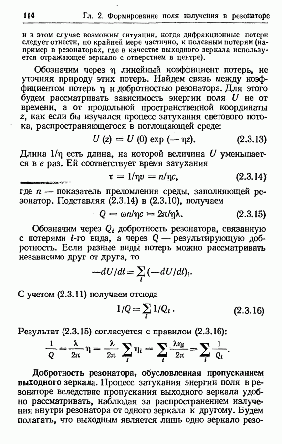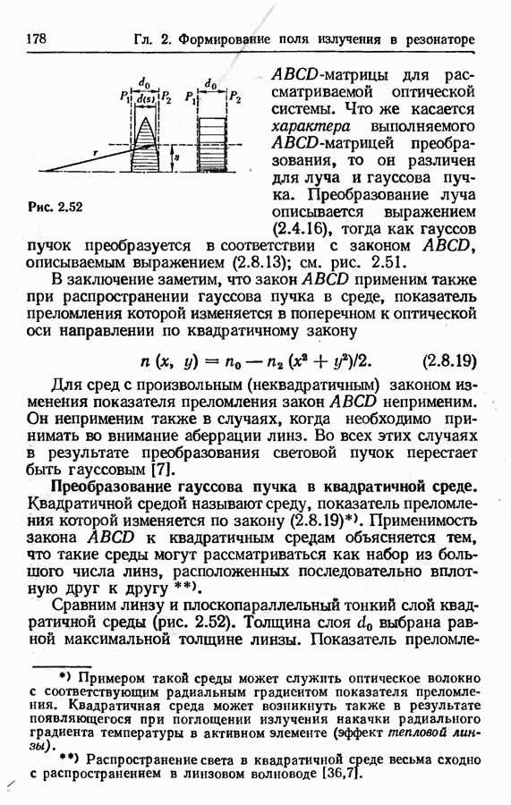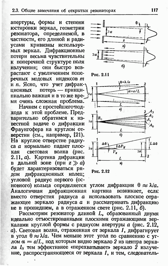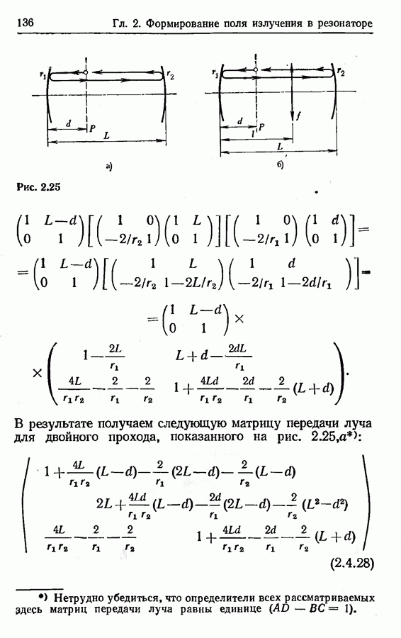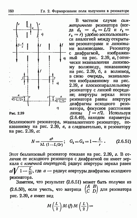 4 — зеркало оптического резонатора, 5 — лазерное излучение. На рис. 1.11, б показано поперечное сечение лазера; поверхность отражателя является в сечении эллипсом, в фокусах которого находятся активный элемент и источник накачки. На практике могут использоваться отражатели различной формы и конструкции. Так, используется двухламповый отражатель, показанный в поперечном сечении на рис. 1.11, в. Такой отражатель позволяет повысить выходную мощность излучения.