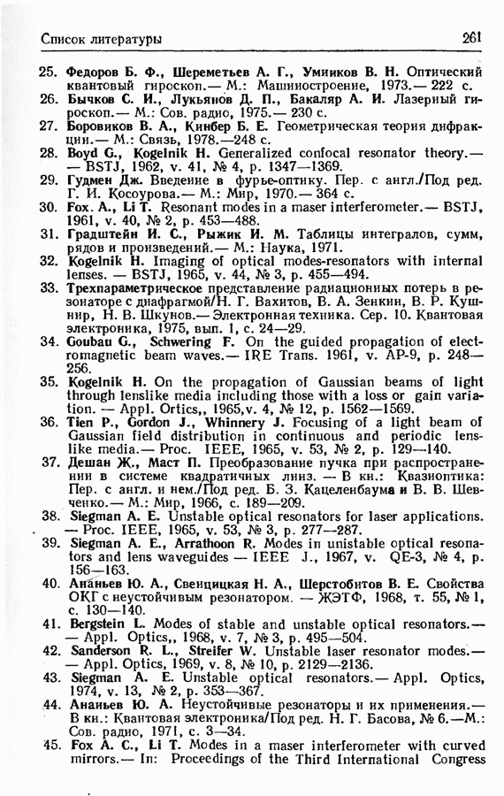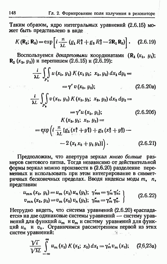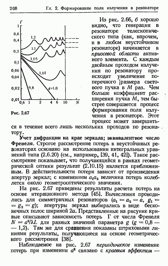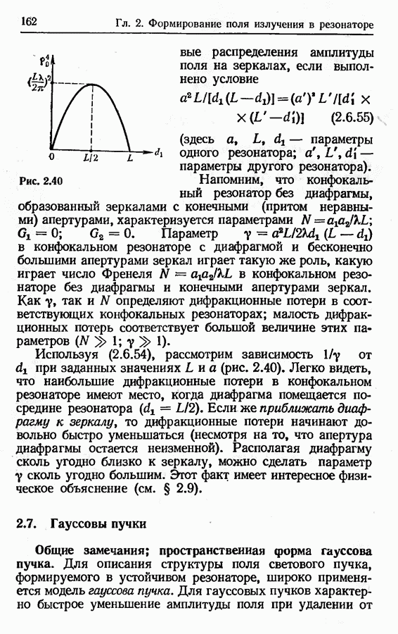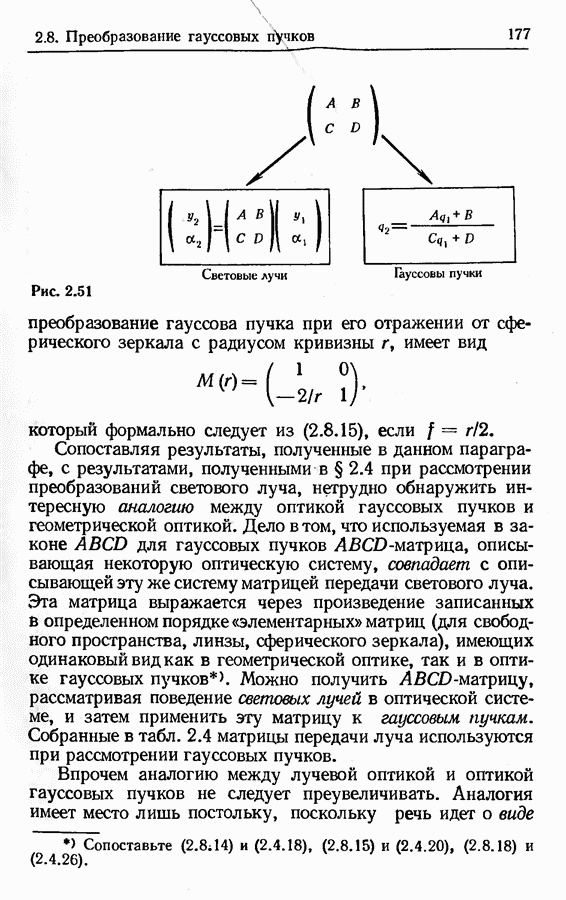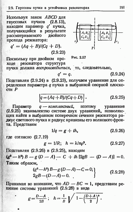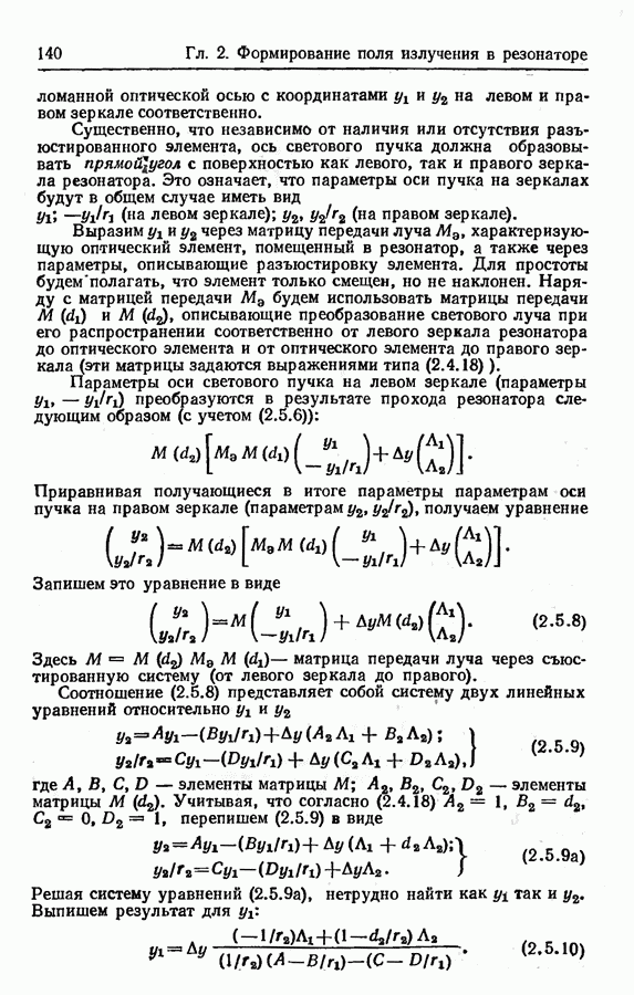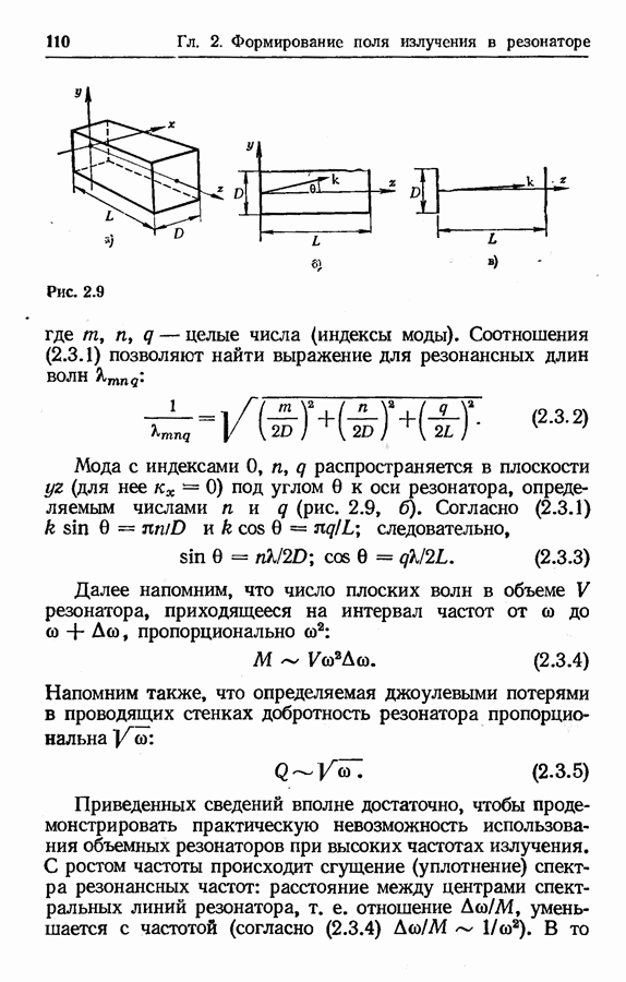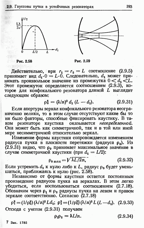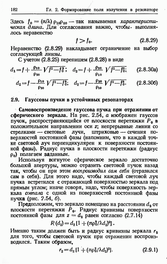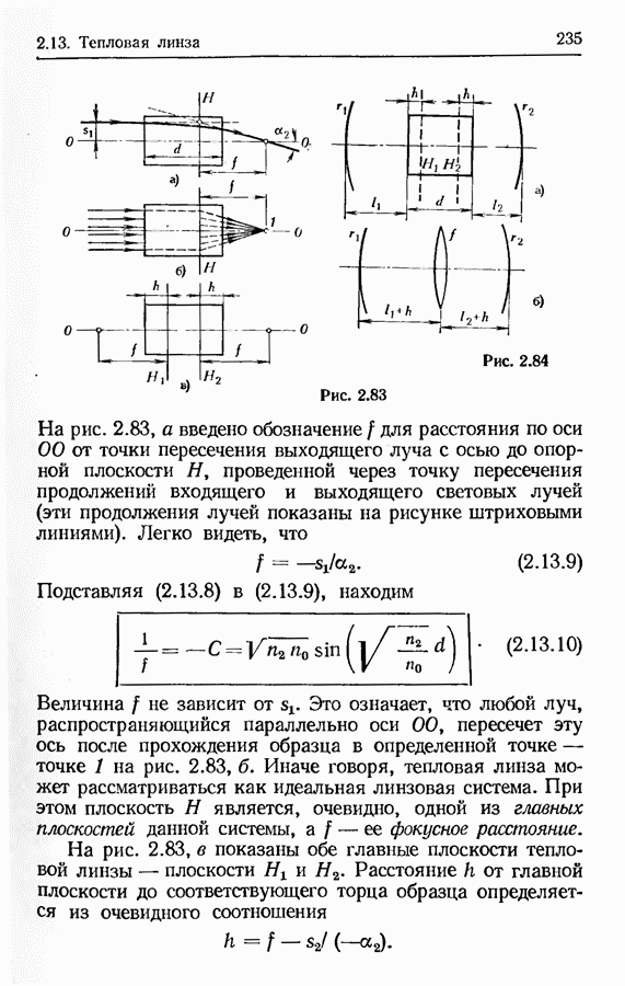 4 — зеркало оптического резонатора, 5 — лазерное излучение. На рис. 1.11, б показано поперечное сечение лазера; поверхность отражателя является в сечении эллипсом, в фокусах которого находятся активный элемент и источник накачки. На практике могут использоваться отражатели различной формы и конструкции. Так, используется двухламповый отражатель, показанный в поперечном сечении на рис. 1.11, в. Такой отражатель позволяет повысить выходную мощность излучения.