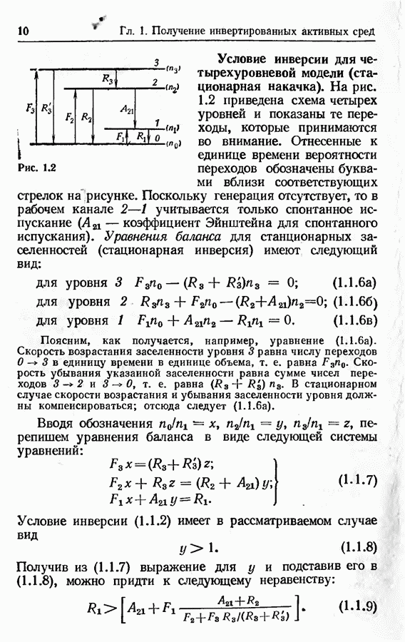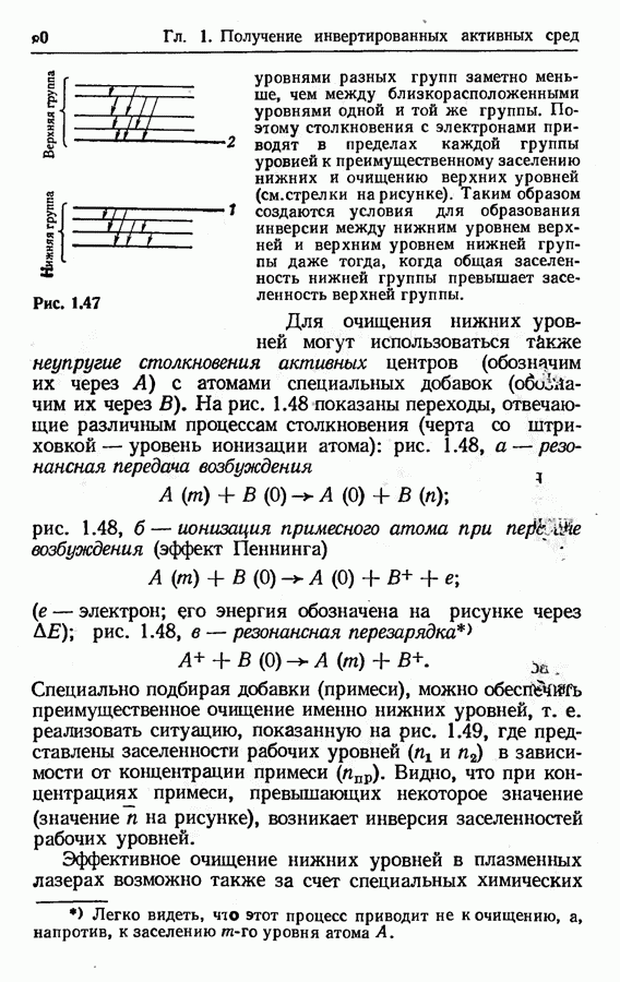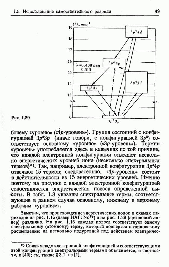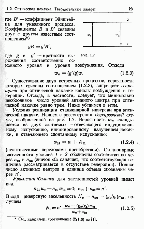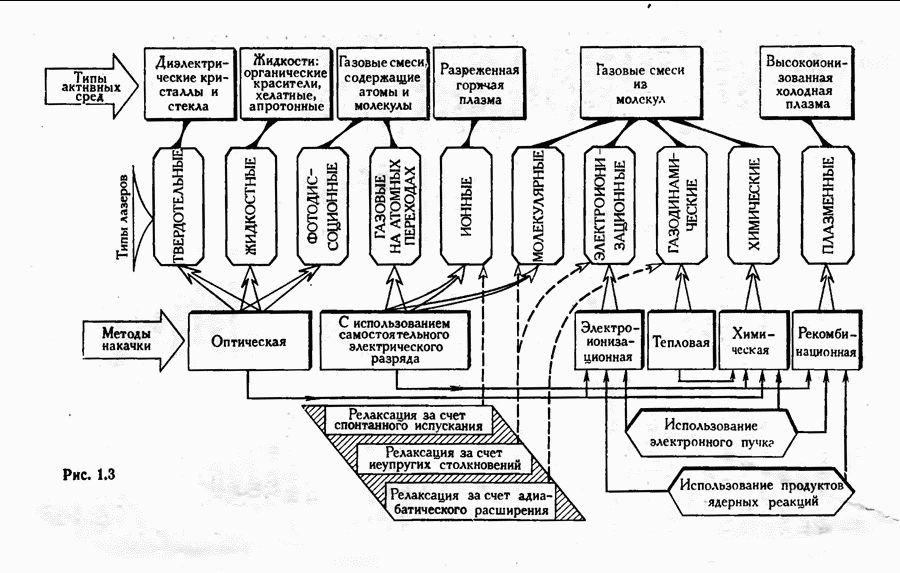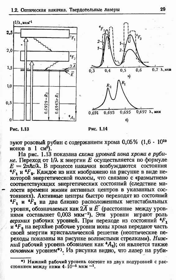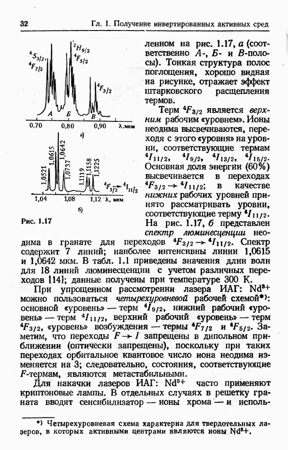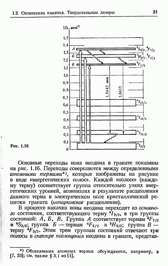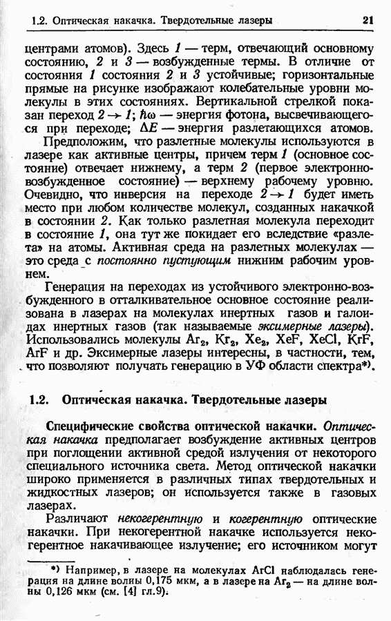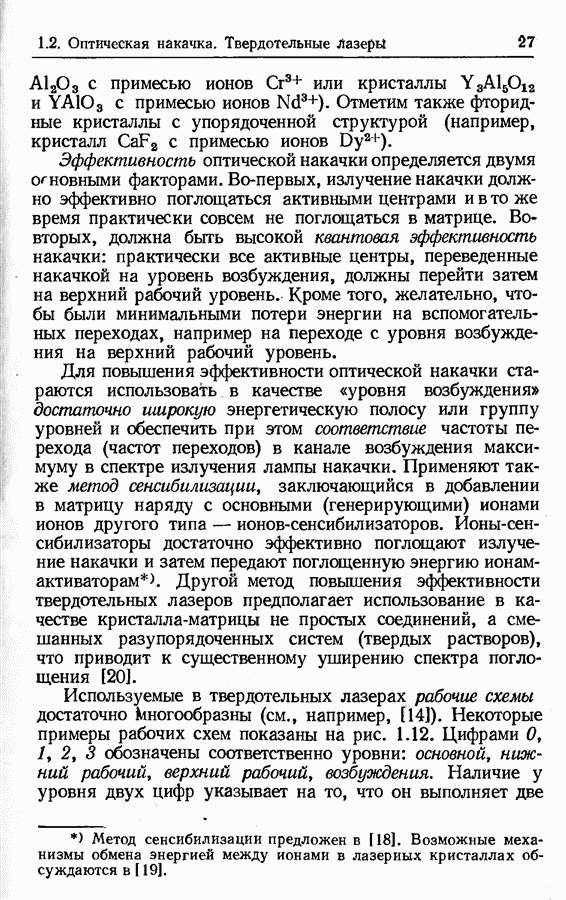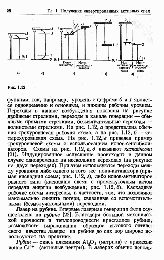 Используемые в твердотельных лазерах рабочие схемы достаточно Многообразны (см., например, [14]). Некоторые примеры рабочих схем показаны на рис. 1.12. Цифрами 0, 1, 2, 3 обозначены соответственно уровни: основной, нижний рабочий, верхний рабочий, возбуждения. Наличие у уровня двух цифр указывает на то, что он выполняет две