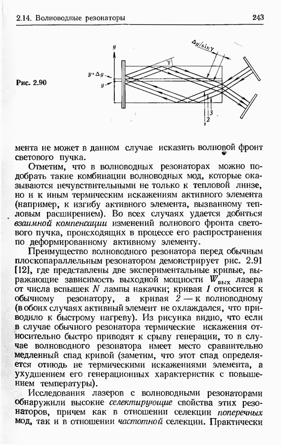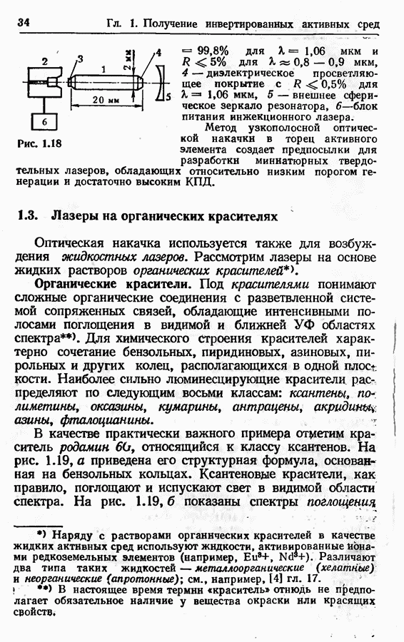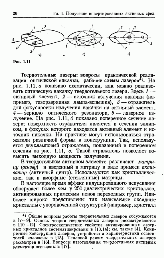 На рис. 1.11, а показано схематически, как можно реализовать оптическую накачку твердотельного лазера. Здесь 1 — активный элемент, 2 — источник излучения накачки (например, газоразрядная лампа-вспышка), 3 — отражатель для фокусировки излучения накачки на активный элемент,
