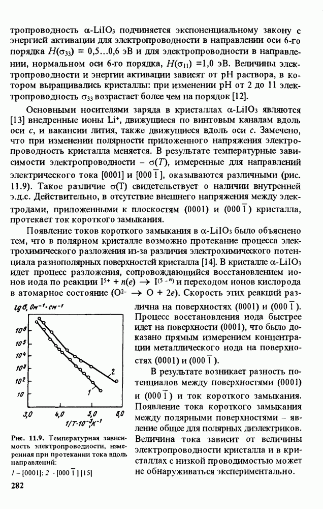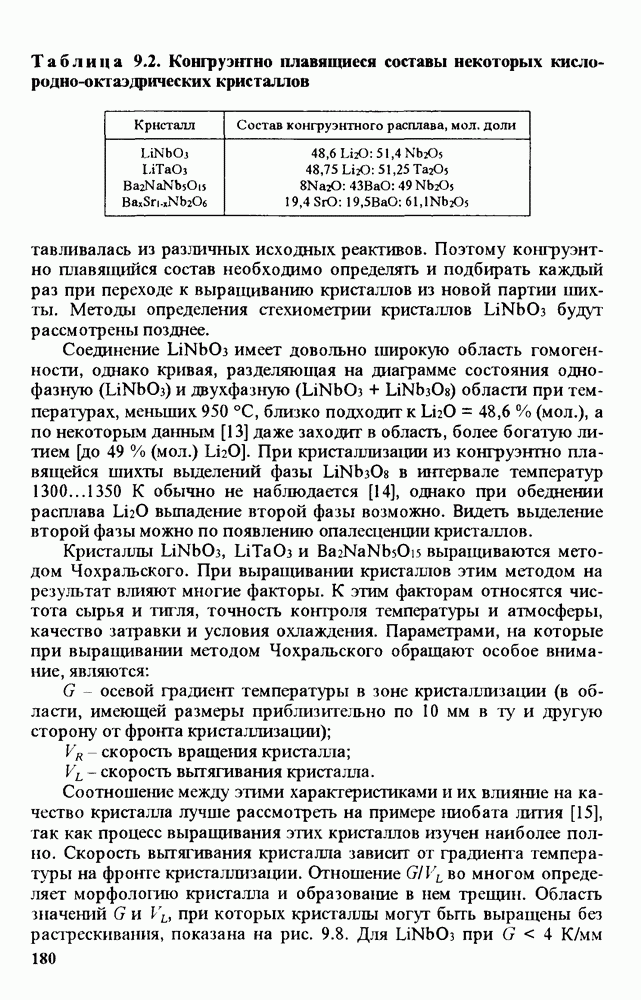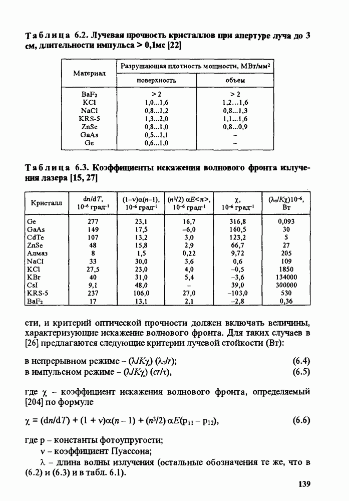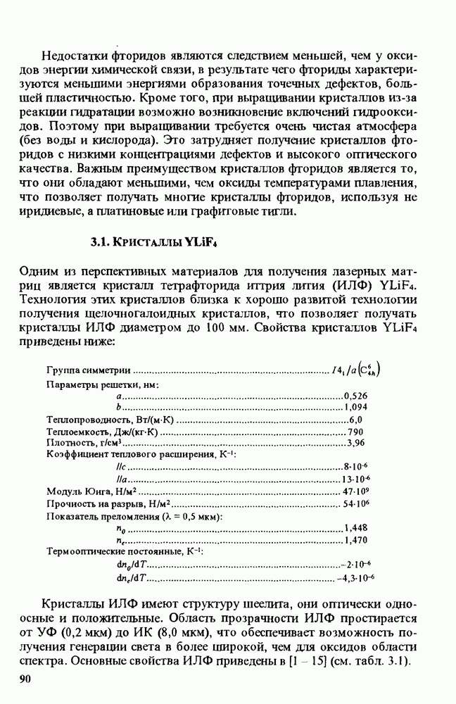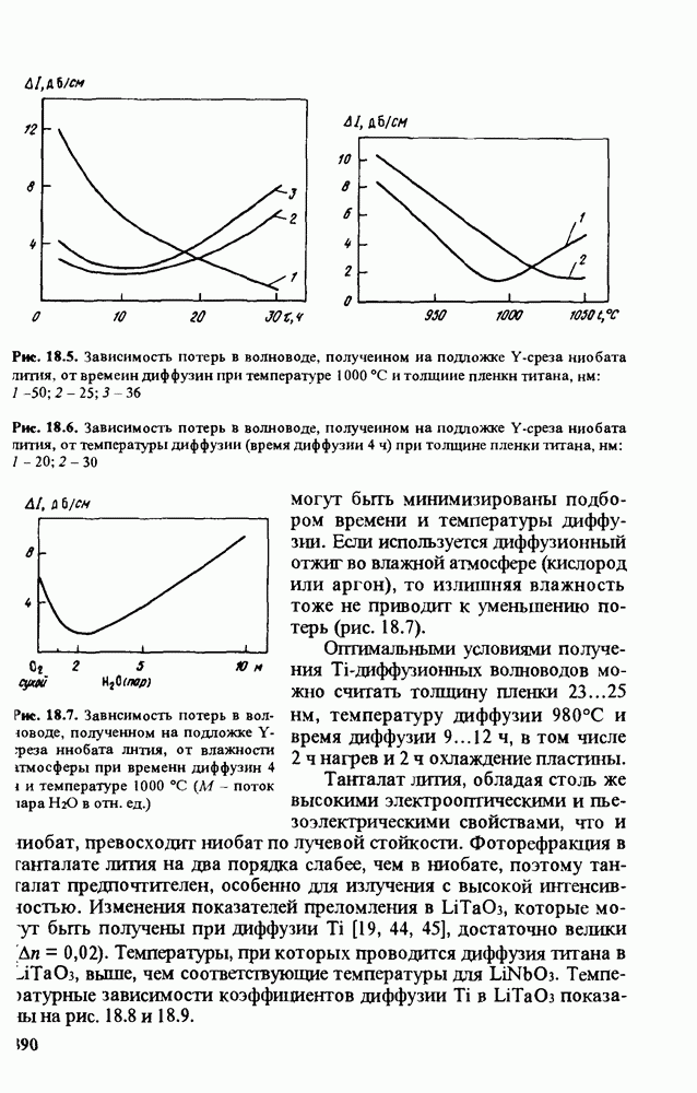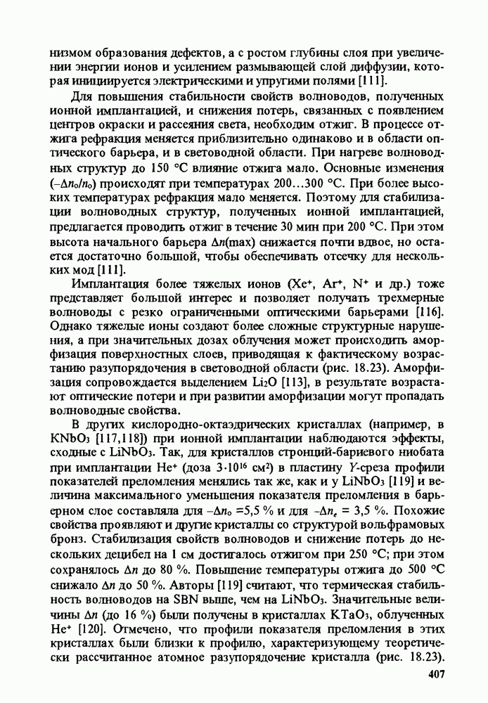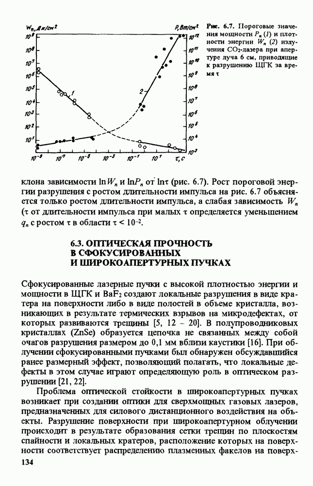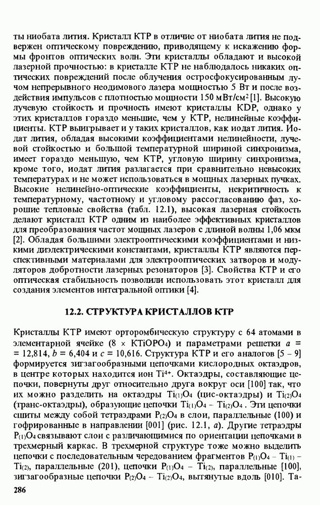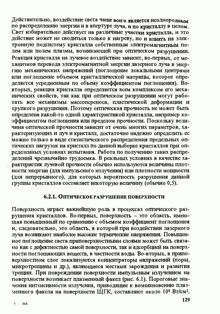 Рис. 9.62. Экспериментальная зависимость интенсивности света в данной точке ннтерферограммы от вращения плоскости поляризации падающего света для кристаллов с величиной ОСП, равной, В этих кристаллах оптическая неоднородность в основном определяется упругооптическим эффектом. Упругооптические коэффициенты относительно невелики и слабо зависят от типа кристалла. Поэтому оптическая неоднородность, вызванная только упругооптическим эффектом, относительно невелика. В этом случае оптическая неоднородность определяется остаточными упругими напряжениями. Эти напряжения весьма стабильны при низких температурах и могут изменяться только под действием высокотемпературного отжига. Поэтому и оптическая однородность этих кристаллов стабильна при низких (комнатных) температурах. Примером таких кристаллов являются Существенно меняется ситуация в кристаллах, обладающих сильным электрооптическим эффектом. При том же структурном совершенстве электрооптические кристаллы оказываются гораздо более неоднородными в оптическом отношении, чем кристаллы, не обладающие этим эффектом. Примером кристалла, в котором электрооптический эффект играет решающую роль в определении его оптической однородности, является ниобат лития. Важность этого кристалла для практического применения требует отдельного рассмотрения его оптической однородности и стабильности к внешним воздействиям. Однородность кристалла может меняться под воздействием внешних факторов, в частности, под действием температуры, электрических полей, оптического излучения. Воздействие мощного лазерного излучения может приводить как к необратимым изменениям оптических свойств, так и к потере сплошности кристалл, к их разрушению. Поэтому для характеристики устойчивости кристалла к воздействию оптического излучения используются две характеристики: 1. Лазерная (оптическая) стойкость, определяемая как изменение контрастности под действием света. Оценивается мощность или энергия импульсов света, для которых изменение контрастности не превосходит определенную величину (обычно 0,005). 2. Лазерная (оптическая) прочность, определяемая как пороговая энергия, которую выдерживает оптический элемент до появления необратимых разрушений (пор, трещин). При задании этой характеристики рекомендуется указывать режим испытаний (длительность импульсов, их скважность, апертуру излучения и т. д.). Хороший оптический материал должен иметь оптическую прочность в импульсном режиме не менее