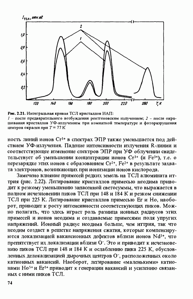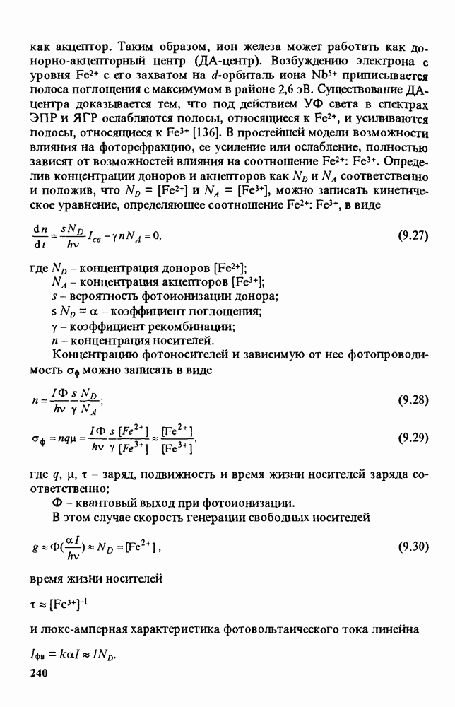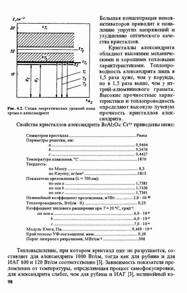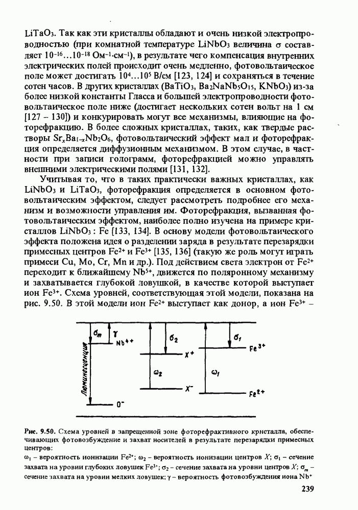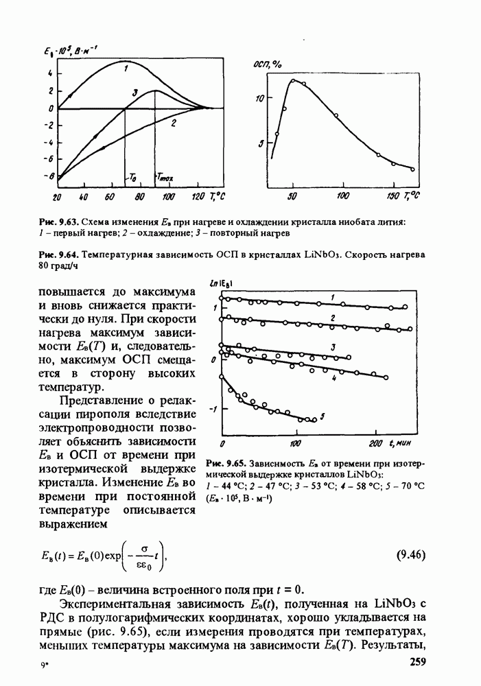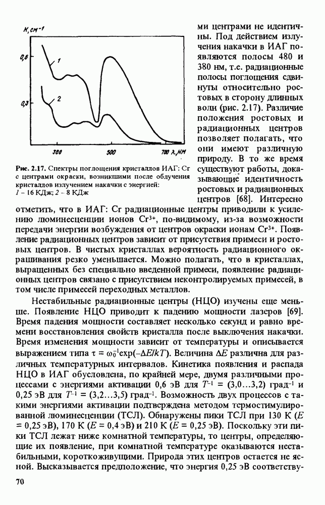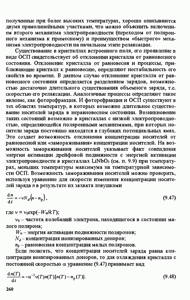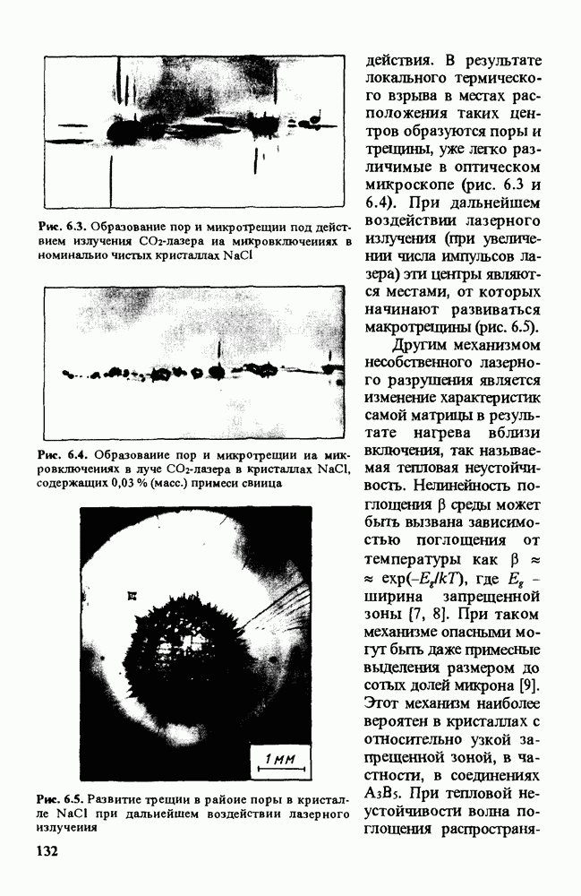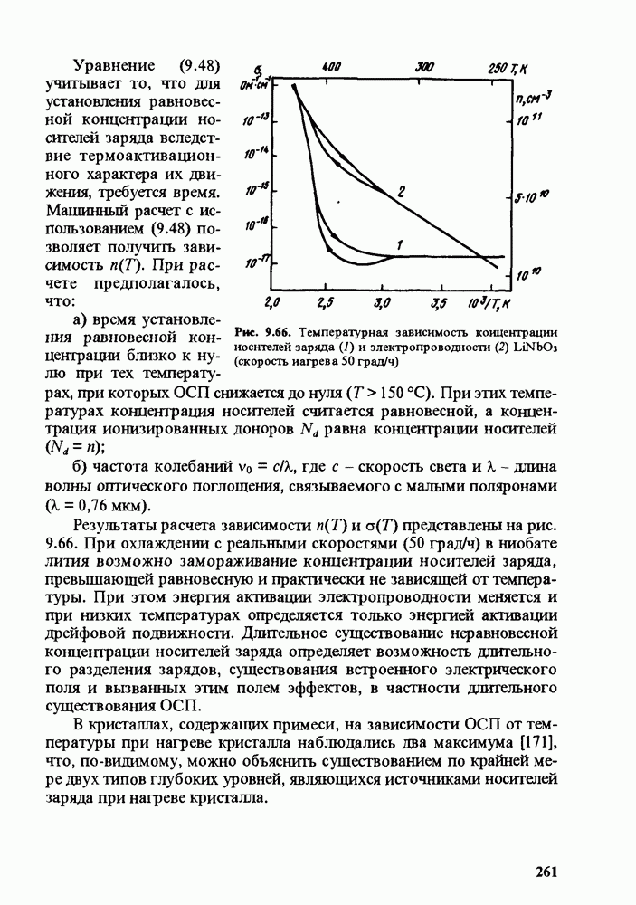 Рис. 9.62. Экспериментальная зависимость интенсивности света в данной точке ннтерферограммы от вращения плоскости поляризации падающего света для кристаллов с величиной ОСП, равной, В этих кристаллах оптическая неоднородность в основном определяется упругооптическим эффектом. Упругооптические коэффициенты относительно невелики и слабо зависят от типа кристалла. Поэтому оптическая неоднородность, вызванная только упругооптическим эффектом, относительно невелика. В этом случае оптическая неоднородность определяется остаточными упругими напряжениями. Эти напряжения весьма стабильны при низких температурах и могут изменяться только под действием высокотемпературного отжига. Поэтому и оптическая однородность этих кристаллов стабильна при низких (комнатных) температурах. Примером таких кристаллов являются Существенно меняется ситуация в кристаллах, обладающих сильным электрооптическим эффектом. При том же структурном совершенстве электрооптические кристаллы оказываются гораздо более неоднородными в оптическом отношении, чем кристаллы, не обладающие этим эффектом. Примером кристалла, в котором электрооптический эффект играет решающую роль в определении его оптической однородности, является ниобат лития. Важность этого кристалла для практического применения требует отдельного рассмотрения его оптической однородности и стабильности к внешним воздействиям. Однородность кристалла может меняться под воздействием внешних факторов, в частности, под действием температуры, электрических полей, оптического излучения. Воздействие мощного лазерного излучения может приводить как к необратимым изменениям оптических свойств, так и к потере сплошности кристалл, к их разрушению. Поэтому для характеристики устойчивости кристалла к воздействию оптического излучения используются две характеристики: 1. Лазерная (оптическая) стойкость, определяемая как изменение контрастности под действием света. Оценивается мощность или энергия импульсов света, для которых изменение контрастности не превосходит определенную величину (обычно 0,005). 2. Лазерная (оптическая) прочность, определяемая как пороговая энергия, которую выдерживает оптический элемент до появления необратимых разрушений (пор, трещин). При задании этой характеристики рекомендуется указывать режим испытаний (длительность импульсов, их скважность, апертуру излучения и т. д.). Хороший оптический материал должен иметь оптическую прочность в импульсном режиме не менее