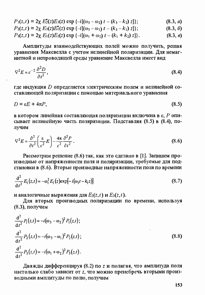 Рис. 9.61. Расчет интенсивности света в данной точке ннтерферограммы в зависимости от вращения плоскости поляризации падающего света. Величины
