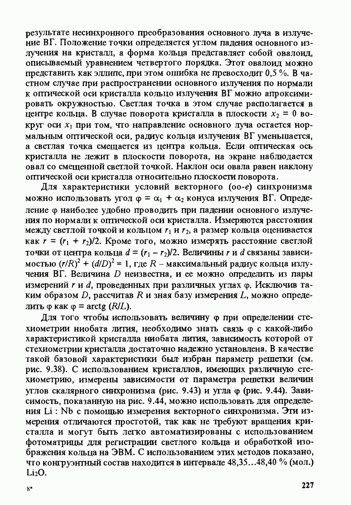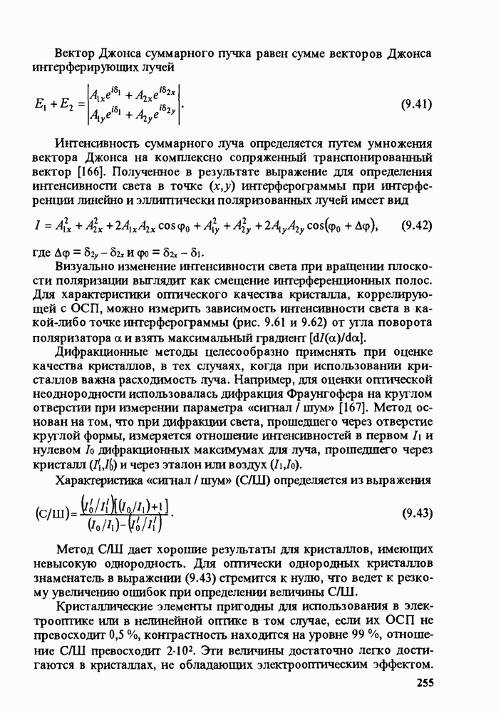 Метод С/Ш дает хорошие результаты для кристаллов, имеющих невысокую однородность. Для оптически однородных кристаллов знаменатель в выражении (9.43) стремится к нулю, что ведет к резкому увеличению ошибок при определении величины С/Ш. Кристаллические элементы пригодны для использования в электрооптике или в нелинейной оптике в том случае, если их ОСП не превосходит