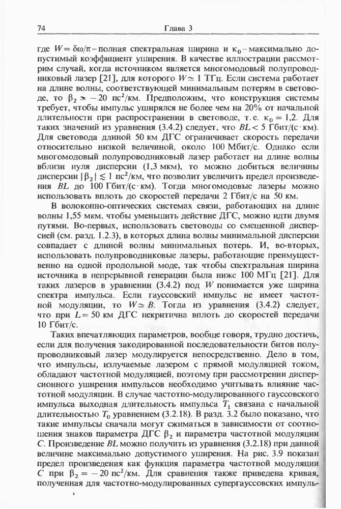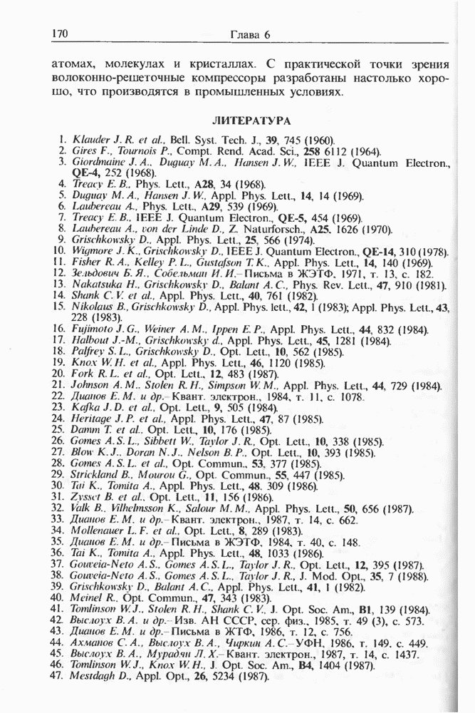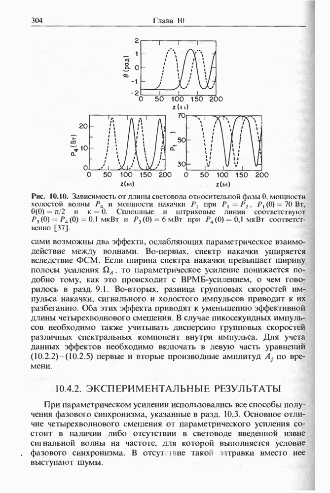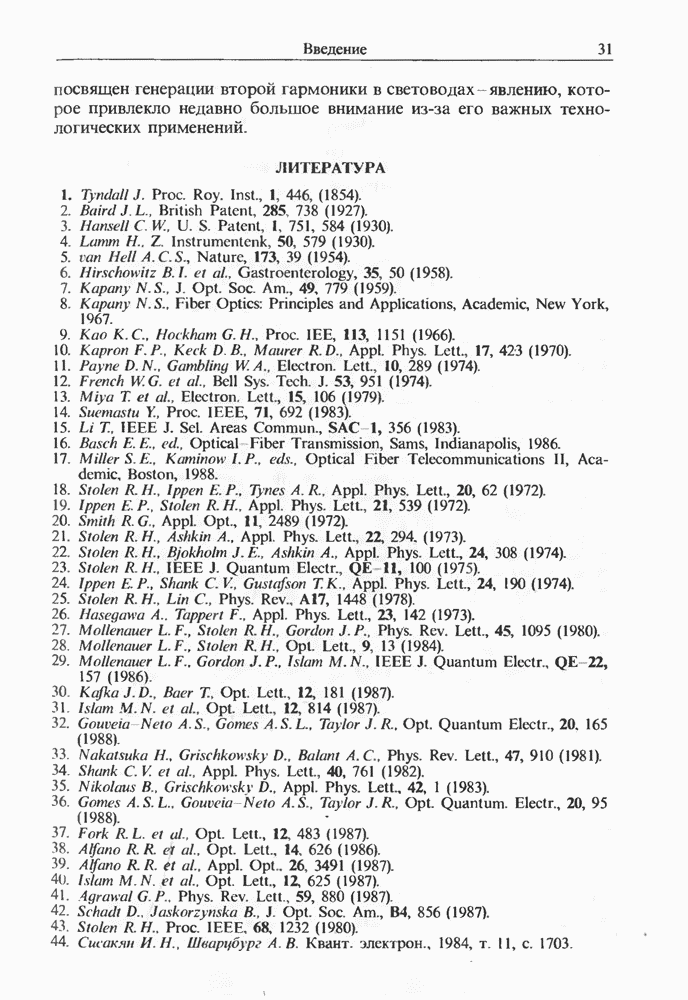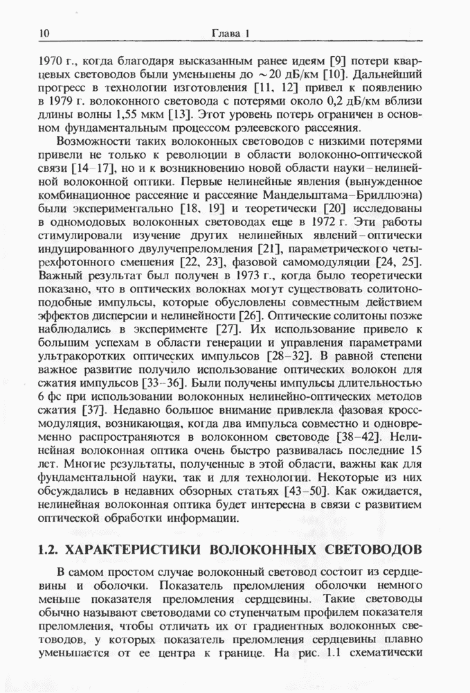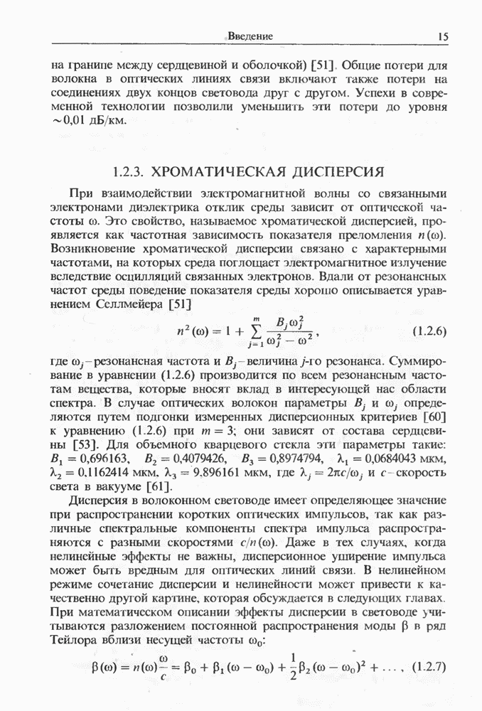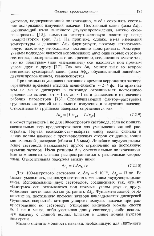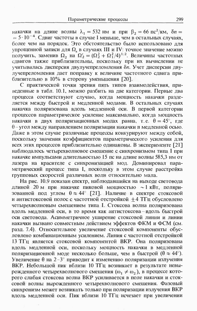 Подводя итоги данной главы, отметим, что ВКР сверхкоротких импульсов в области отрицательной дисперсии световодов это нелинейное явление, при котором могут генерироваться сверхкороткие солитоноподобные импульсы длительностью менее Эти солитоны нужно отличать от солитонов ВКР, возникающих в молекулярных газах [139]. Там время отклика среды больше длительности солитона, и необходимо учитывать динамику колебательных мод, участвующих в процессе ВКР [139 - 141] В случае световодов время комбинационного отклика много меньше длительности солитона.