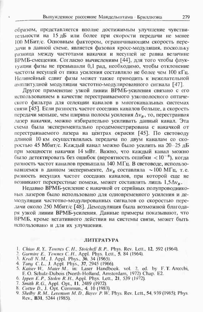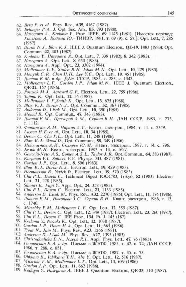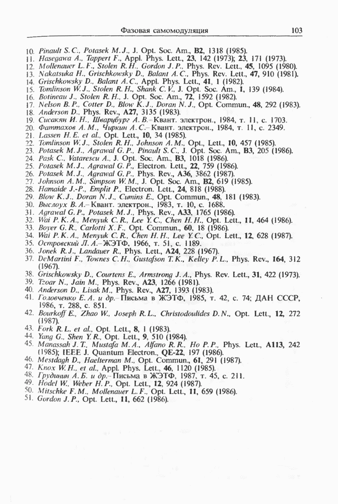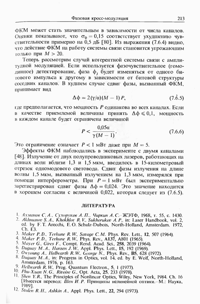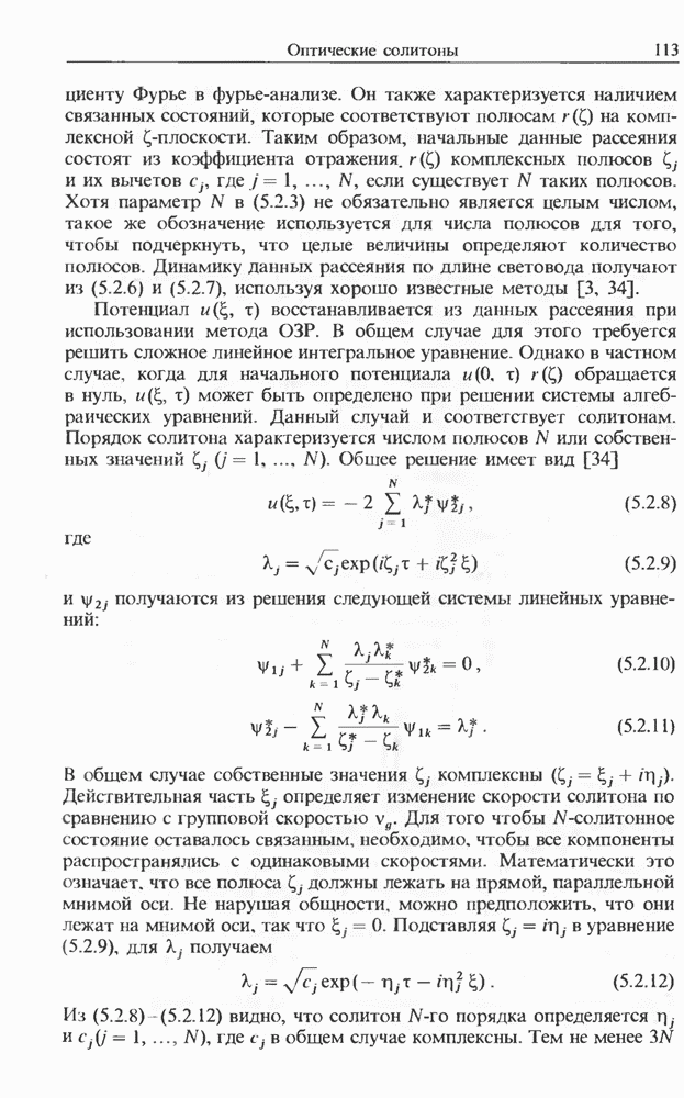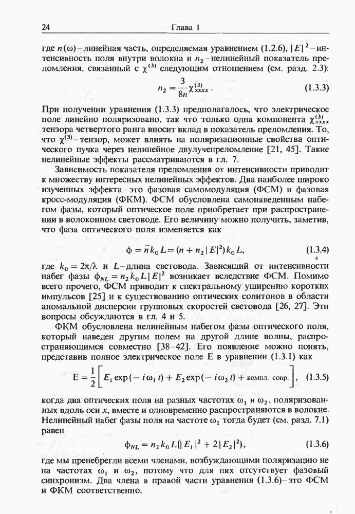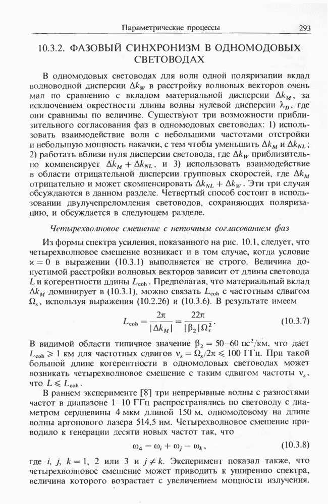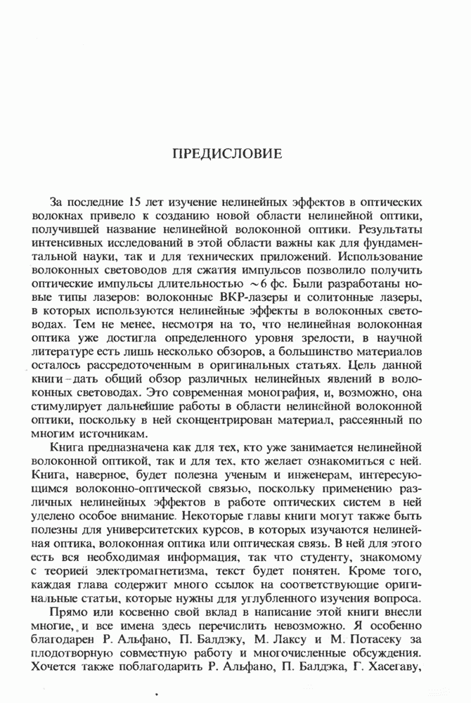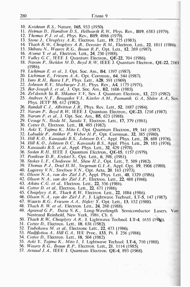 Подводя итоги данной главы, отметим, что ВКР сверхкоротких импульсов в области отрицательной дисперсии световодов это нелинейное явление, при котором могут генерироваться сверхкороткие солитоноподобные импульсы длительностью менее Эти солитоны нужно отличать от солитонов ВКР, возникающих в молекулярных газах [139]. Там время отклика среды больше длительности солитона, и необходимо учитывать динамику колебательных мод, участвующих в процессе ВКР [139 - 141] В случае световодов время комбинационного отклика много меньше длительности солитона.