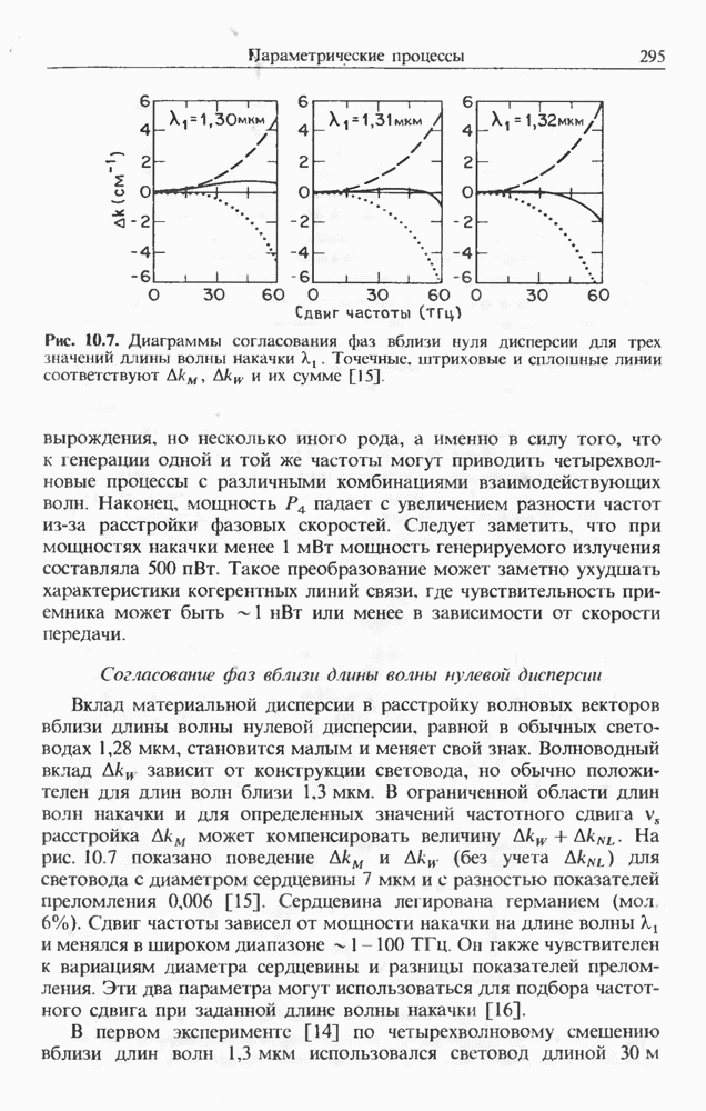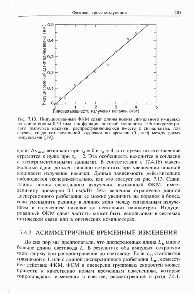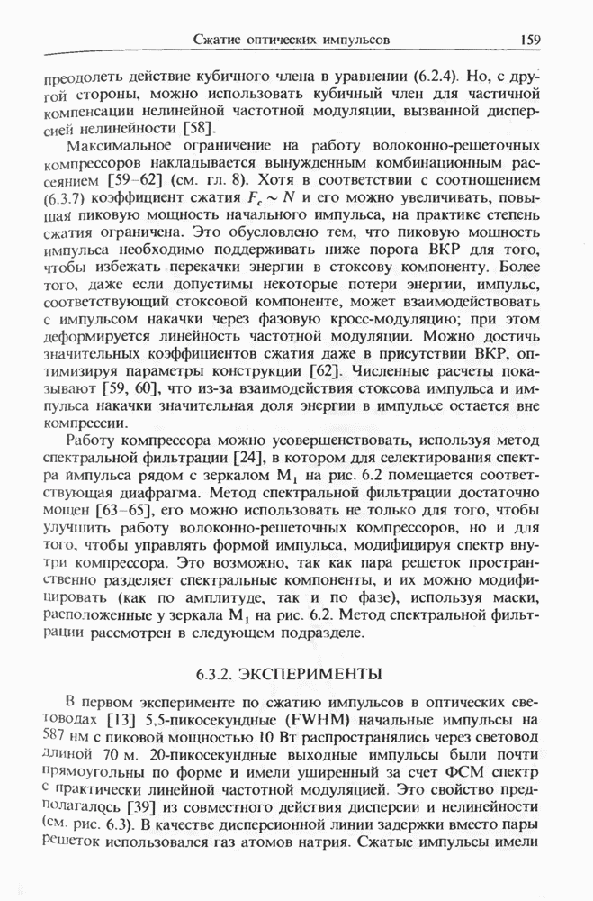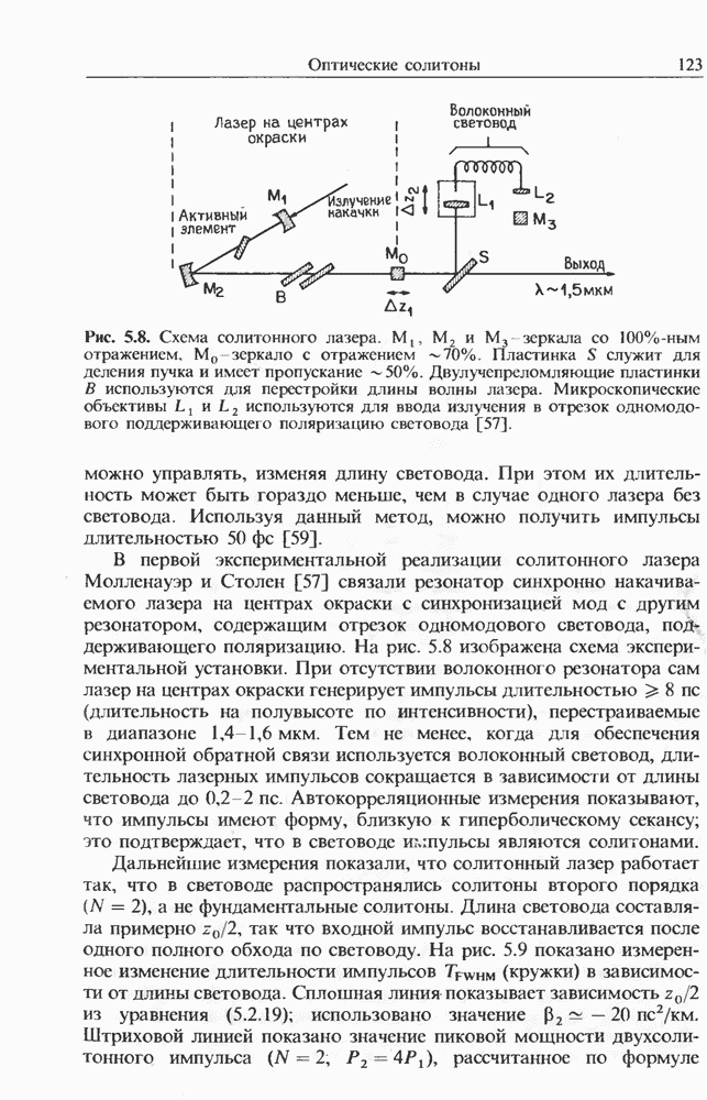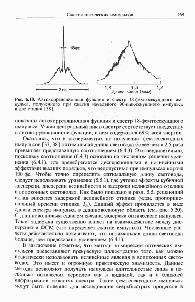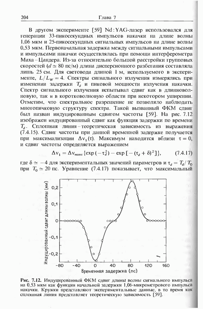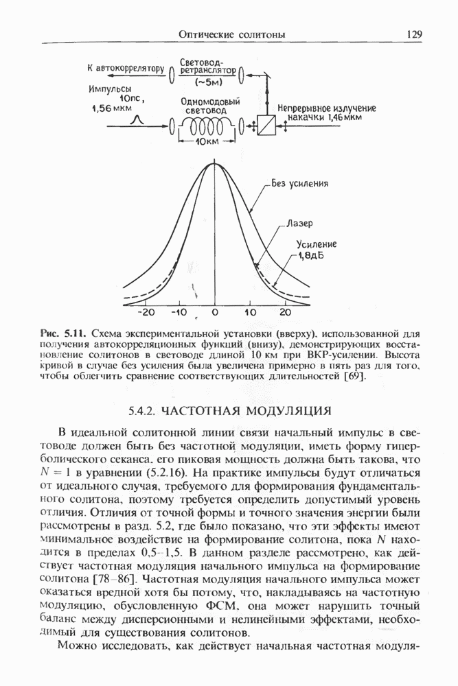 Солитоны ВКР были также получены при накачке -пикосекунд-ными импульсами от Nd ИАГ-лазера с синхронизацией мод, работавшего на длине волны 1,32 мкм. В эксперименте [129] в обычном световоде с нулем дисперсии вблизи 1,3 мкм были получены -фем-тосекундные импульсы ВКР на длине волны 1,4 мкм. В другом