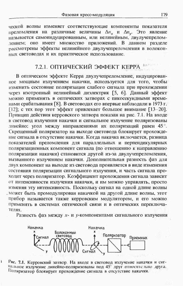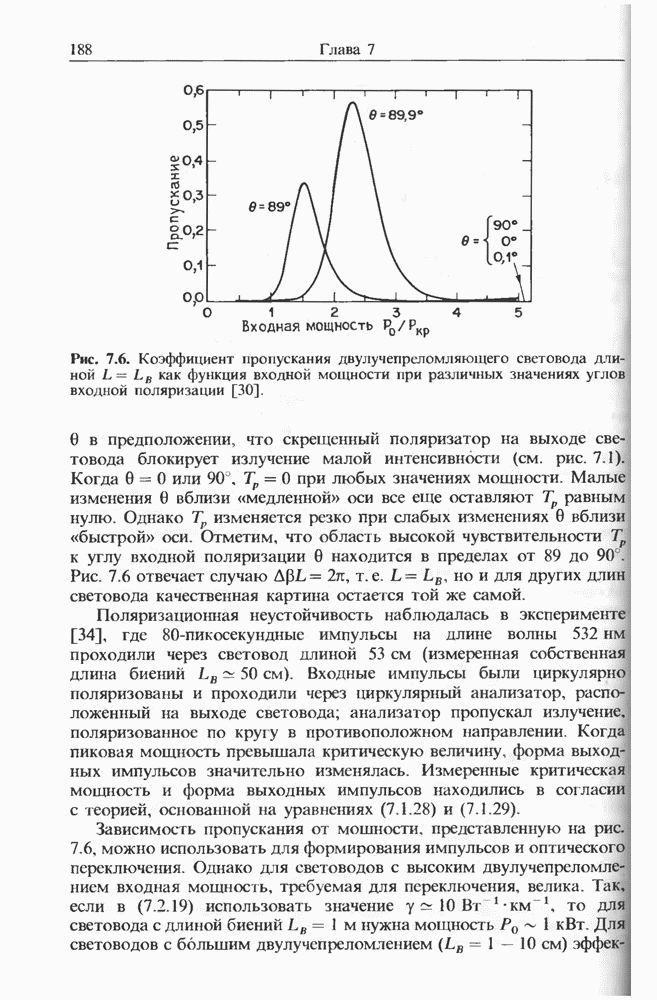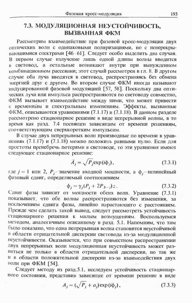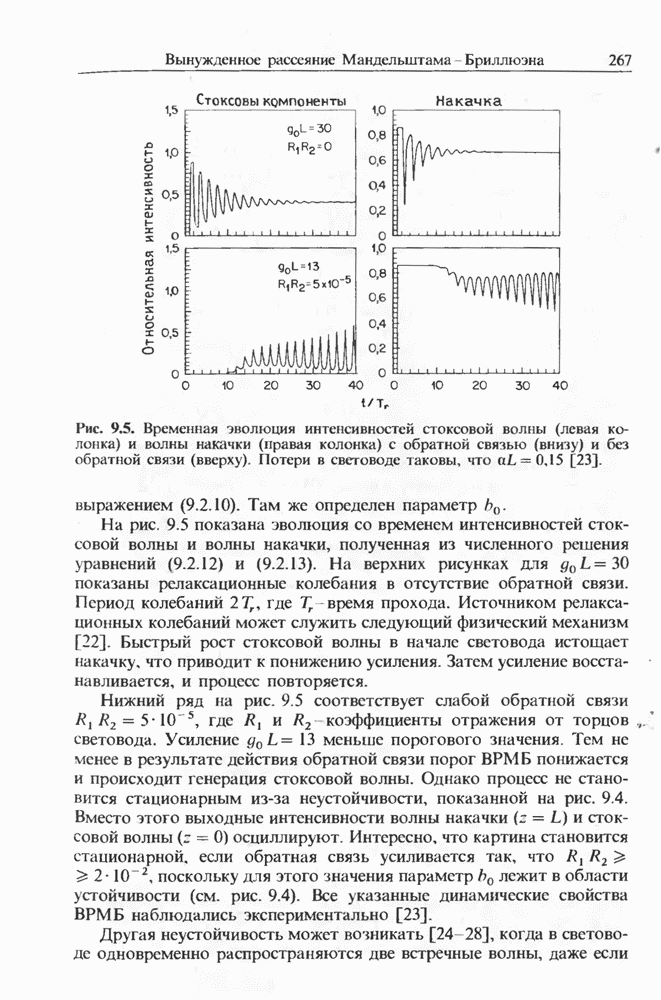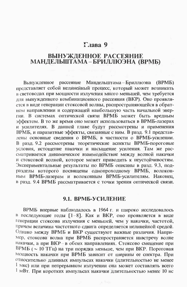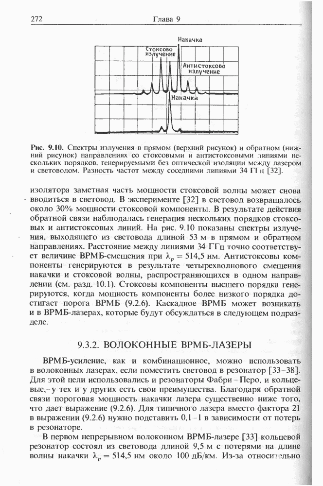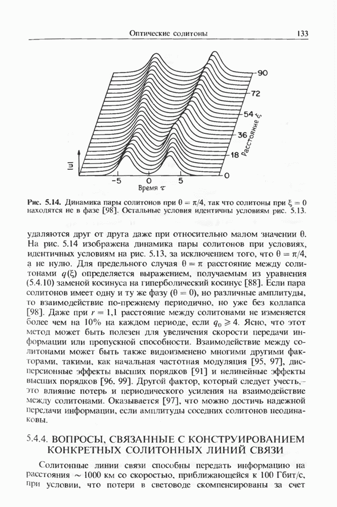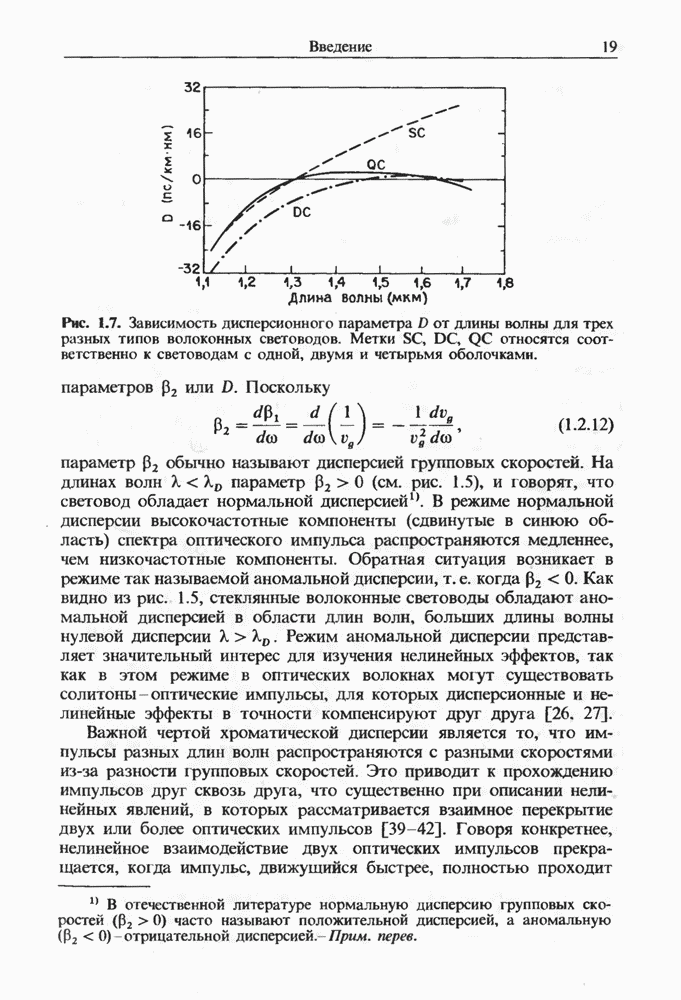 Когда длина волны накачки лежит в области отрицательной дисперсии световода, в импульсах накачки и ВКР могут появляться солитонные эффекты, возникающие в результате совместного действия нелинейности и дисперсии (см. гл. 5). Этот случай, в силу его большой научной и практической важности, широко исследовался как теоретически, так и экспериментально [118 138].
