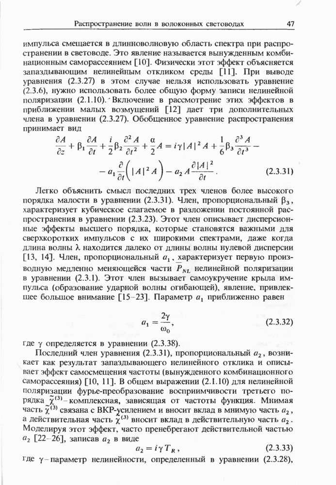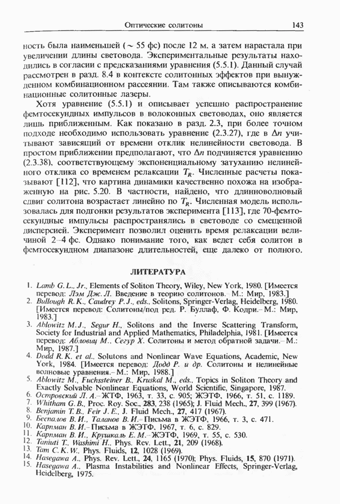 Теоретическое описание солитонов, возникающих при ВКР в световодах, не завершено, и продолжается работа над новыми моделями [123].