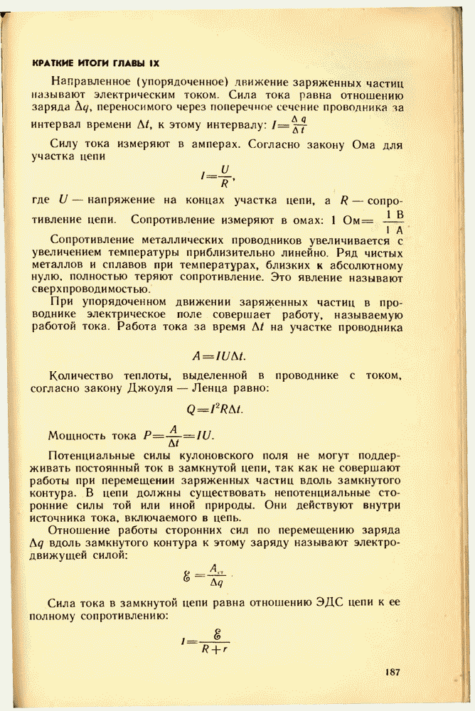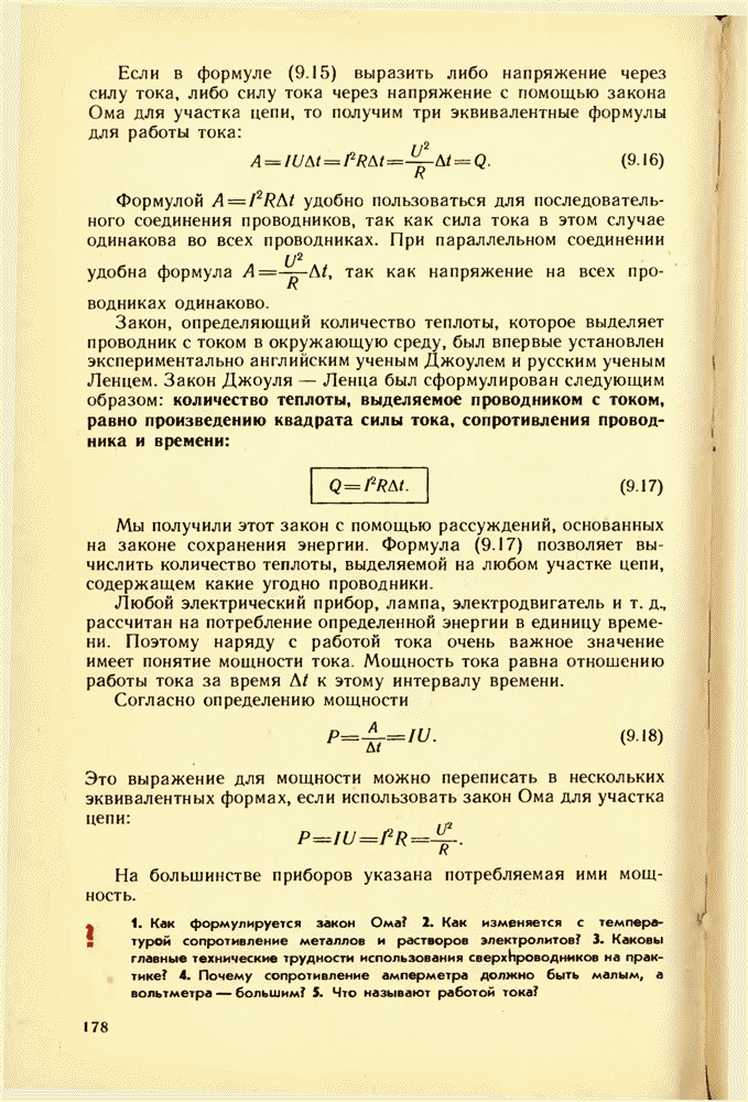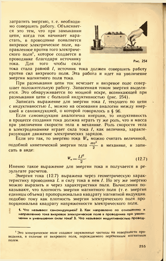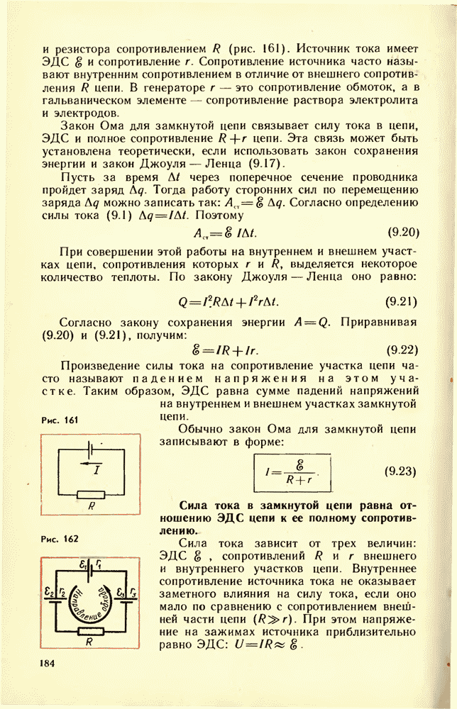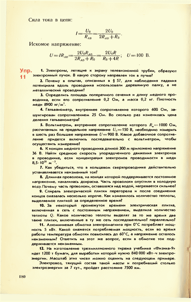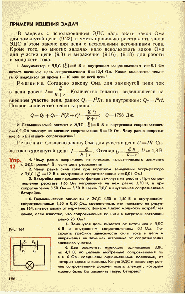 От источника тока энергия может быть передана по проводам к устройствам, потребляющим энергию: электрической лампе, электродвигателю, радиоприемнику и т. д. Для этого составляют электрические цепи различной сложности. Электрическая цепь состоит из источника энергии, устройств, потребляющих электрическую энергию, соединительных проводов и выключателей для замыкания цепи. Часто в электрическую цепь включают приборы, контролирующие силу тока и напряжение на различных участках цепи, — амперметры и вольтметры.