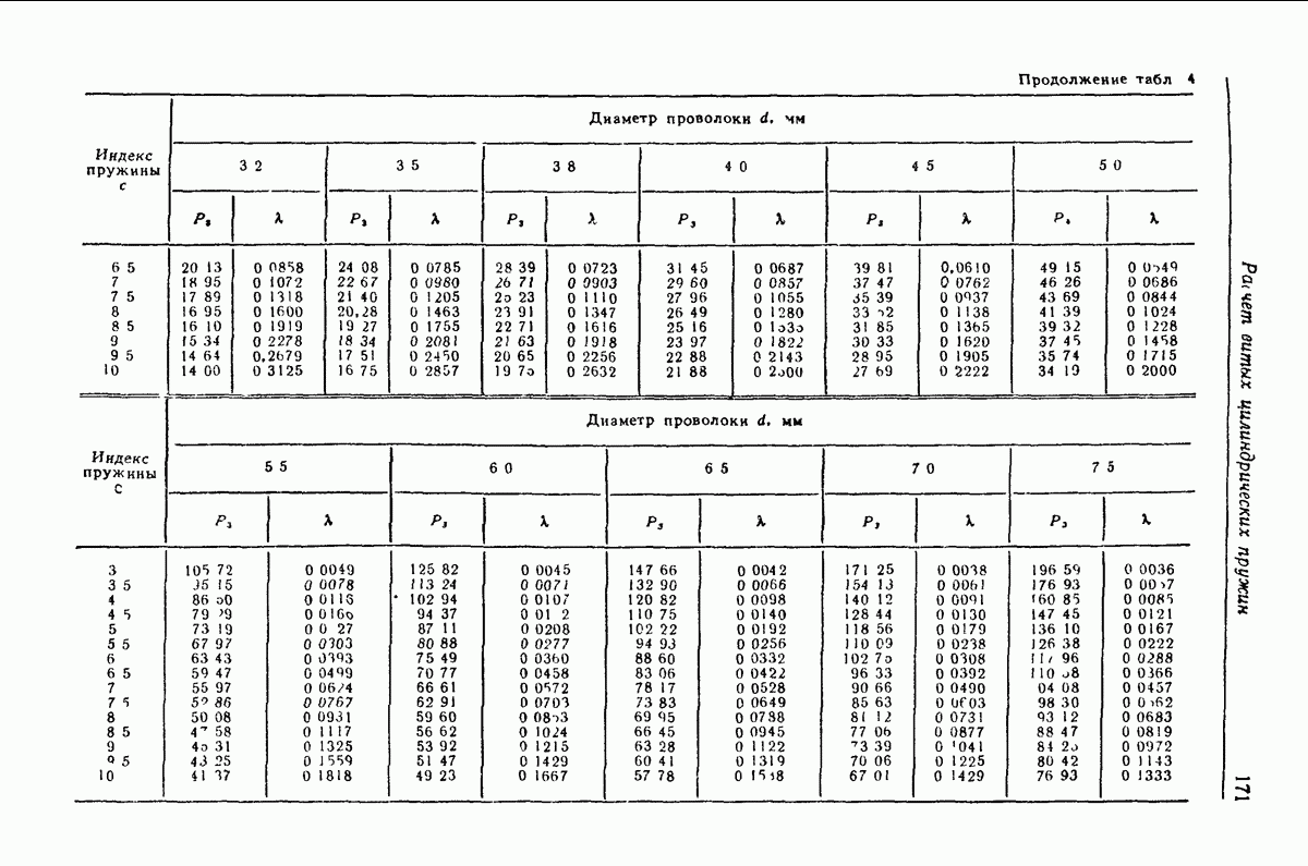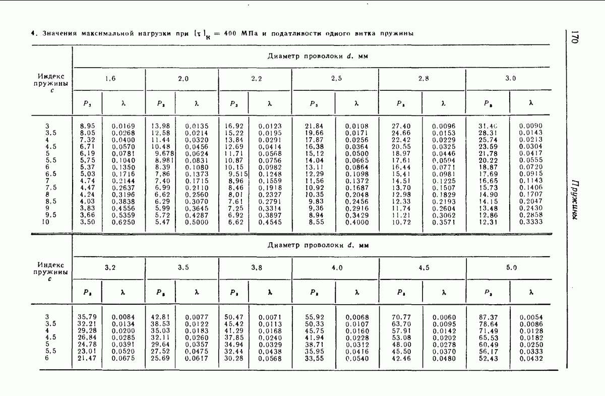 Расчет первой пружины. Назначаем индекс пружины с — 8,7. По формуле (31) вычисляем диаметр проволоки пружины