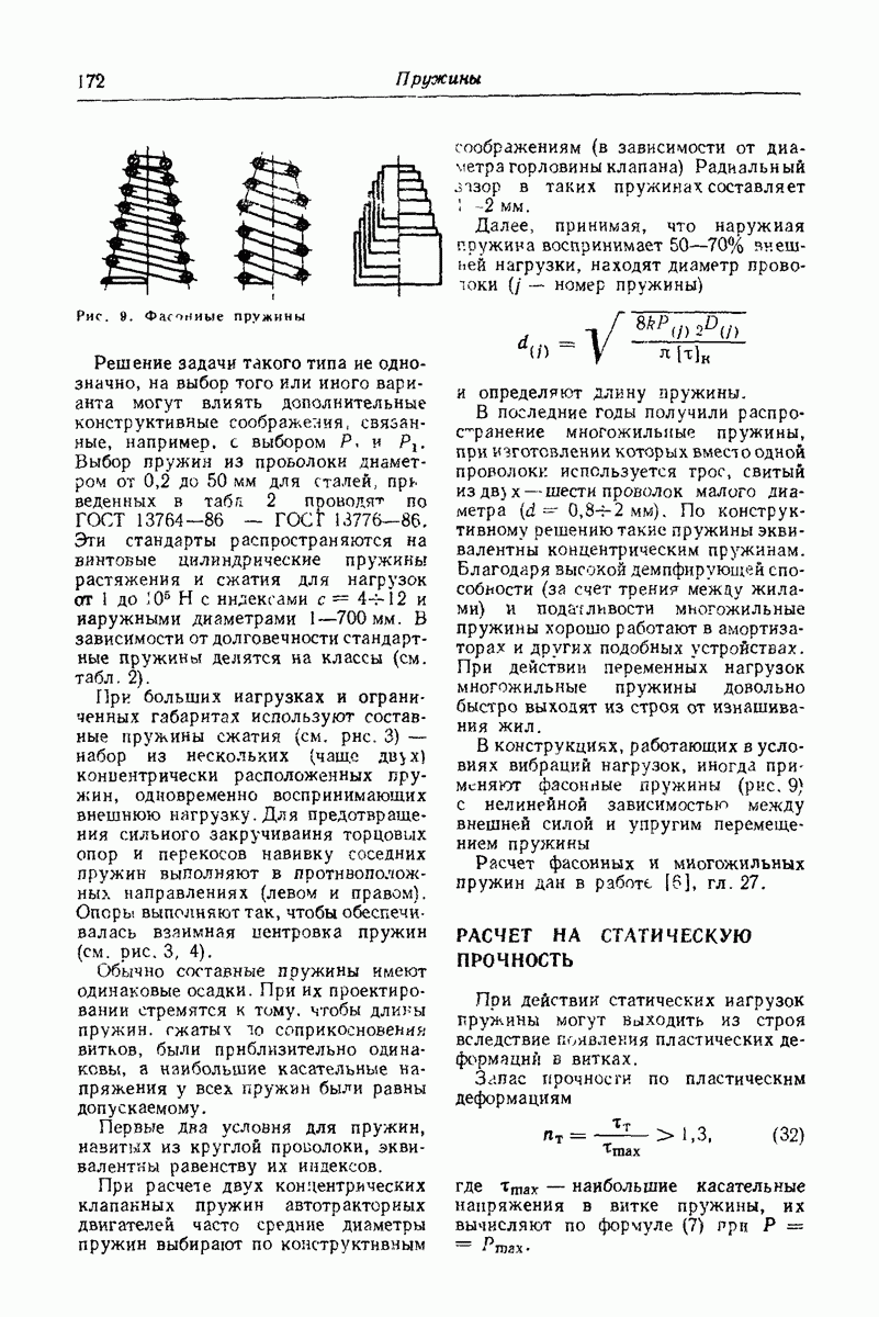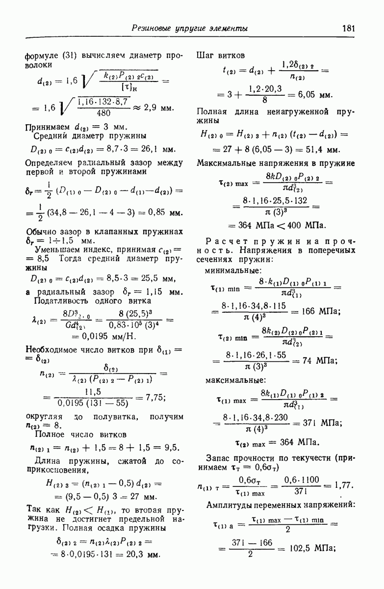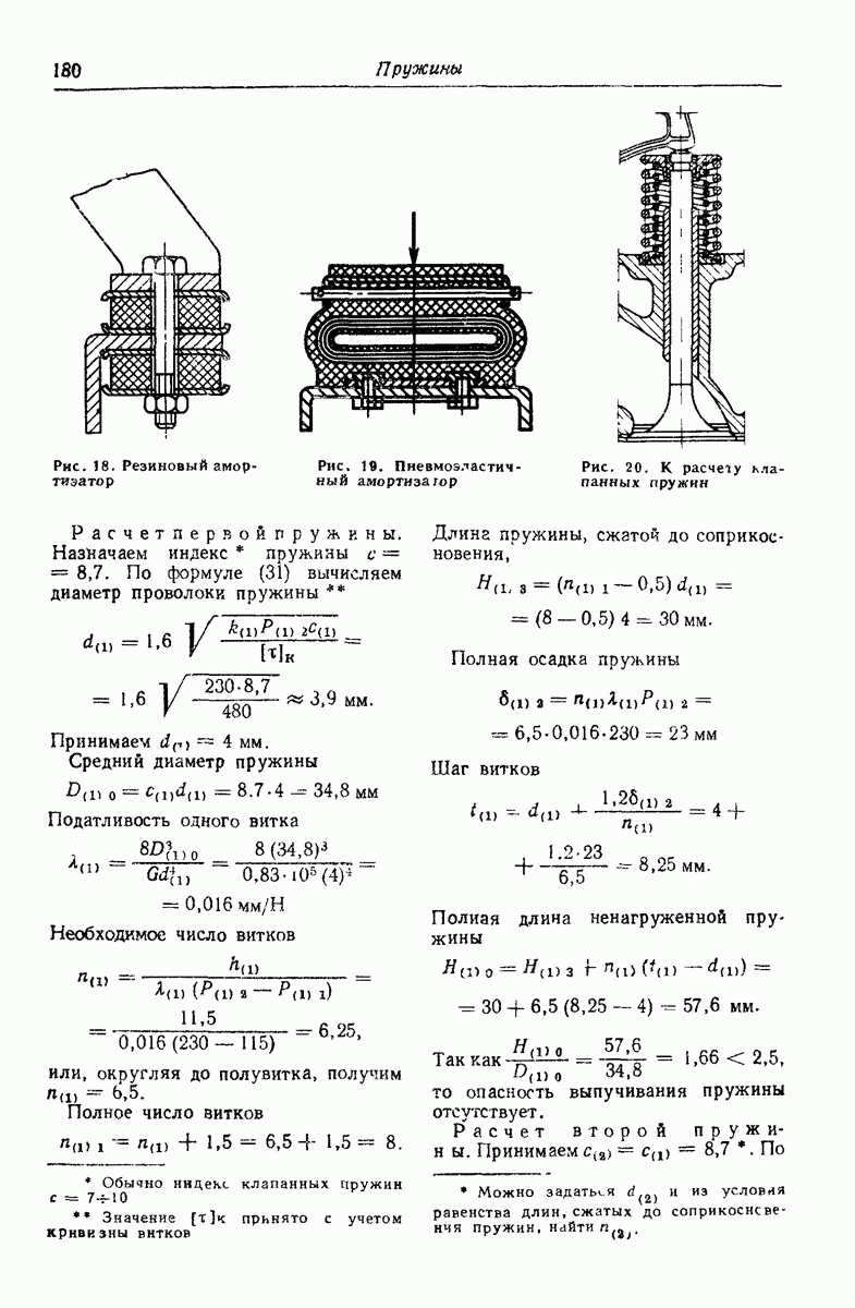 Пример. Рассчитать клапаииые пружины (рис. 20) для карбюраторного двигателя, если известно, что при полном открытии клапана (ход клапана