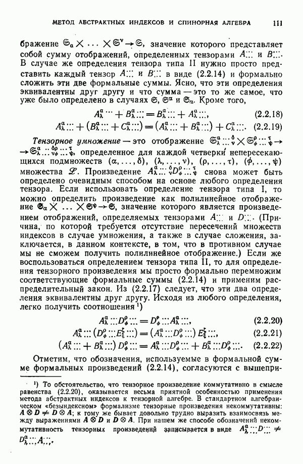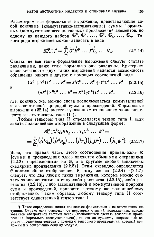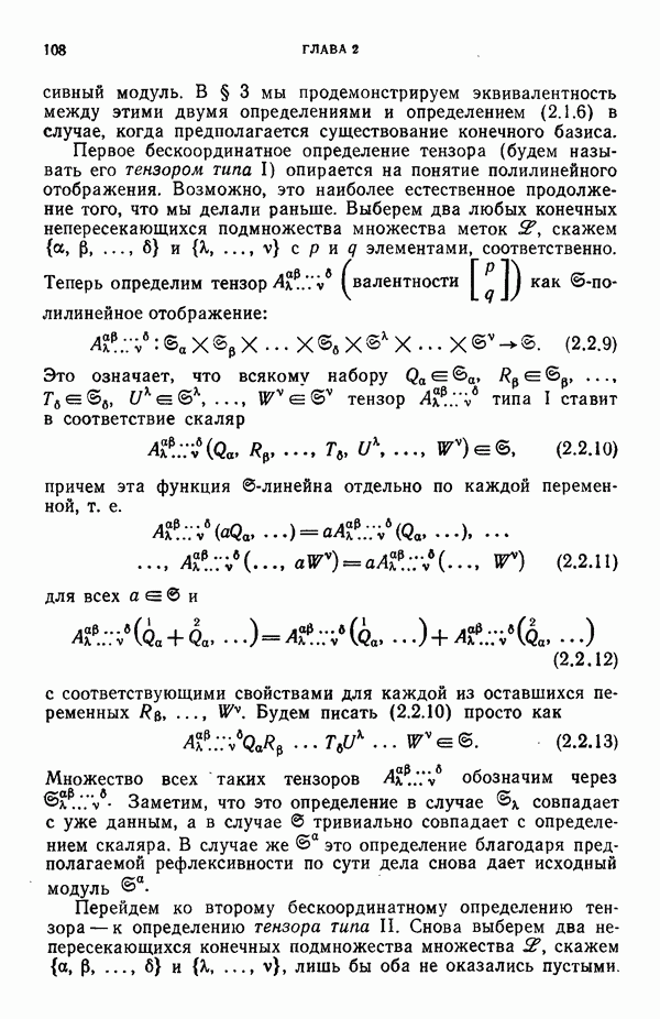 есть Легко убедиться, что каждое из определений тензоров I и II типов ведет к тензорам высшей валентности, являющимся элементами множеств [в частности, см. для сравнения (2.2.38)].
