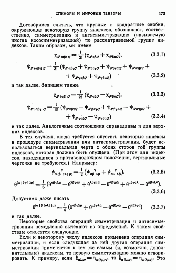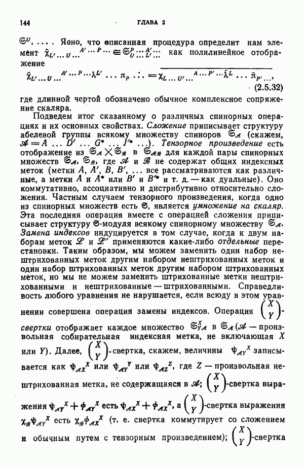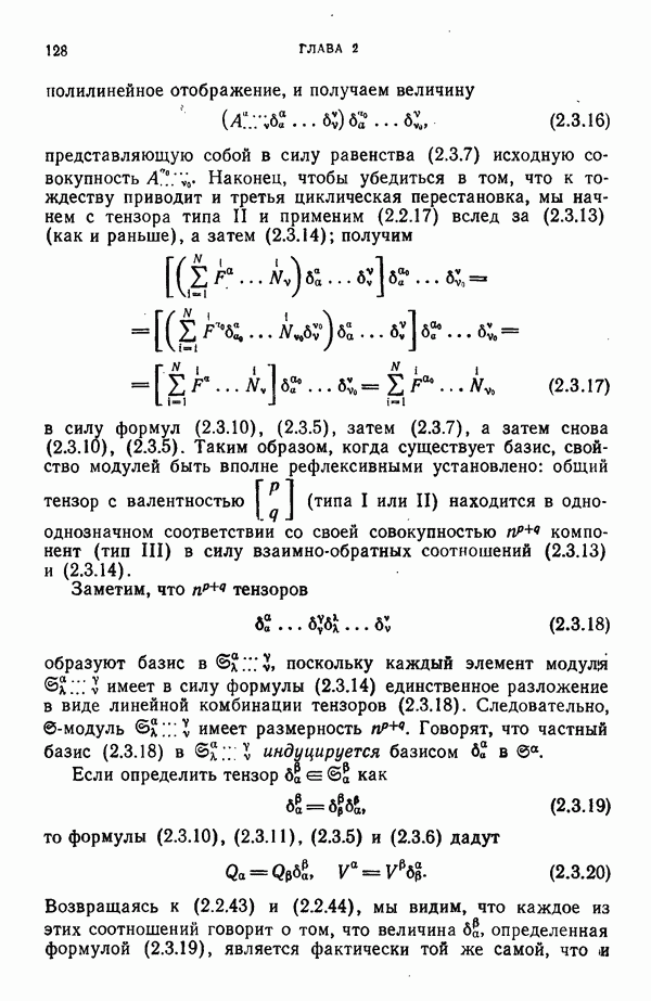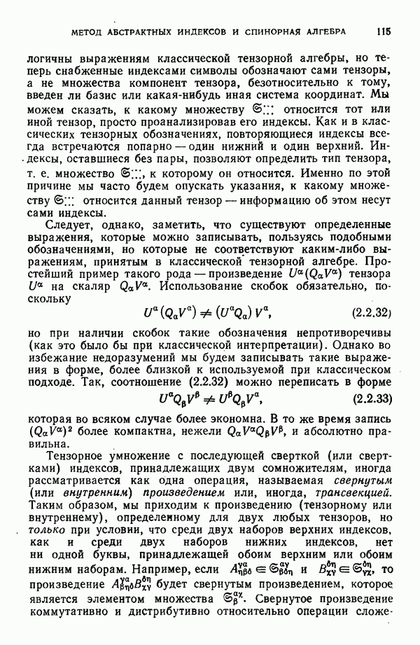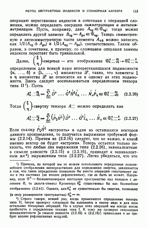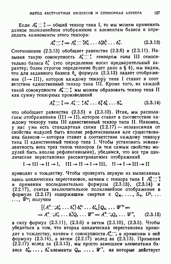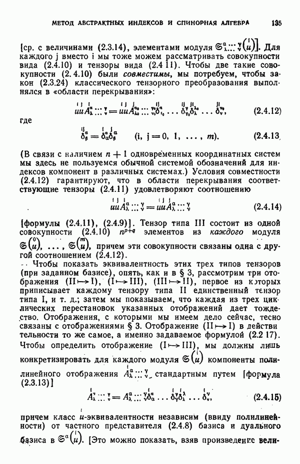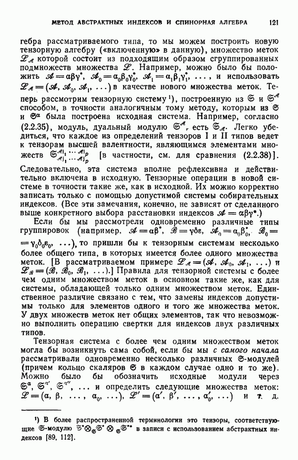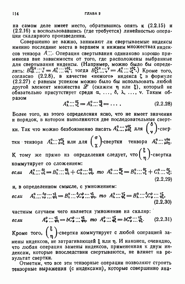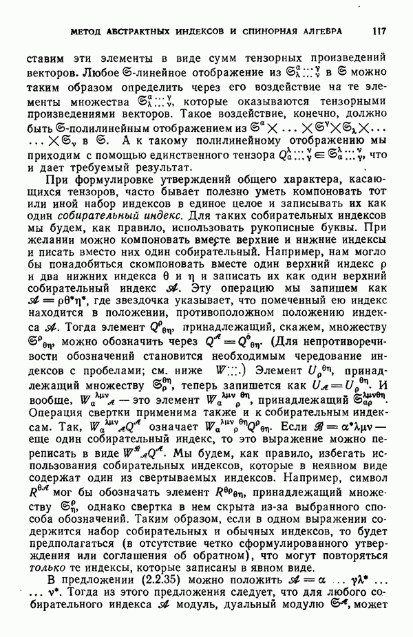 Следовательно, эта система вполне рефлексивна и действительно включена в исходную. Тензорные операции в новой системе в точности такие же, как в исходной. Их можно корректно записать только с помощью допустимой системы собирательных индексов. (Все эти замечания, конечно, не зависят от сделанного выше конкретного выбора расстановки индексов