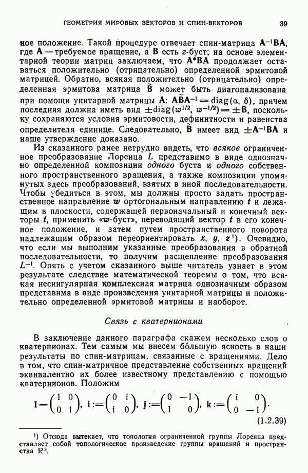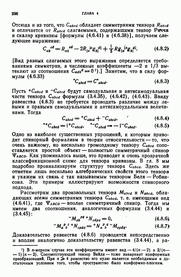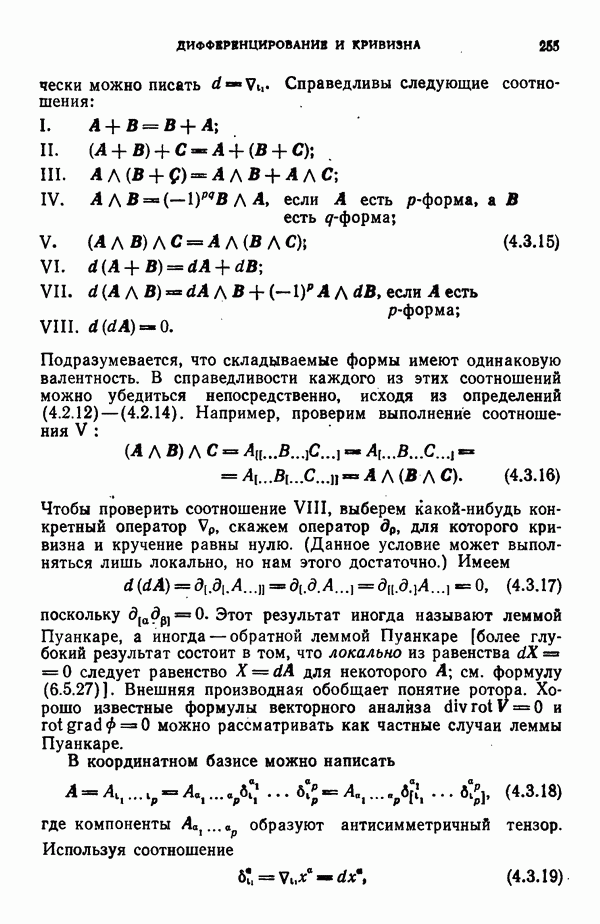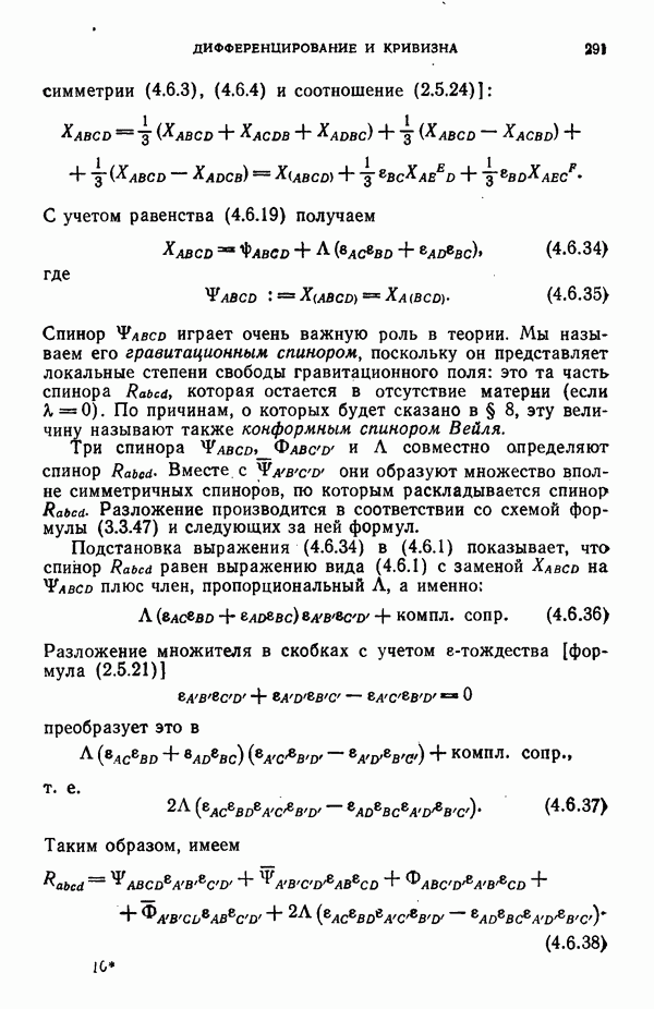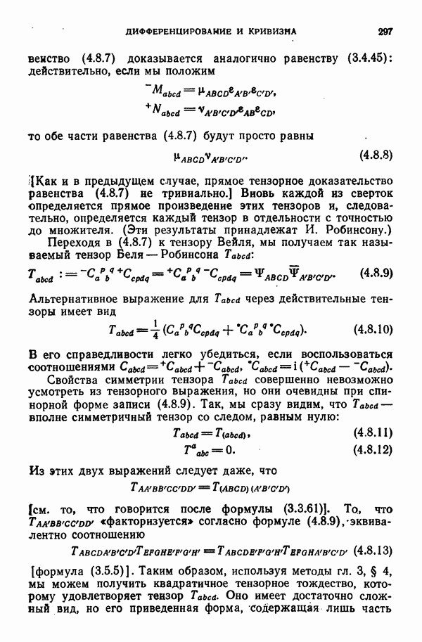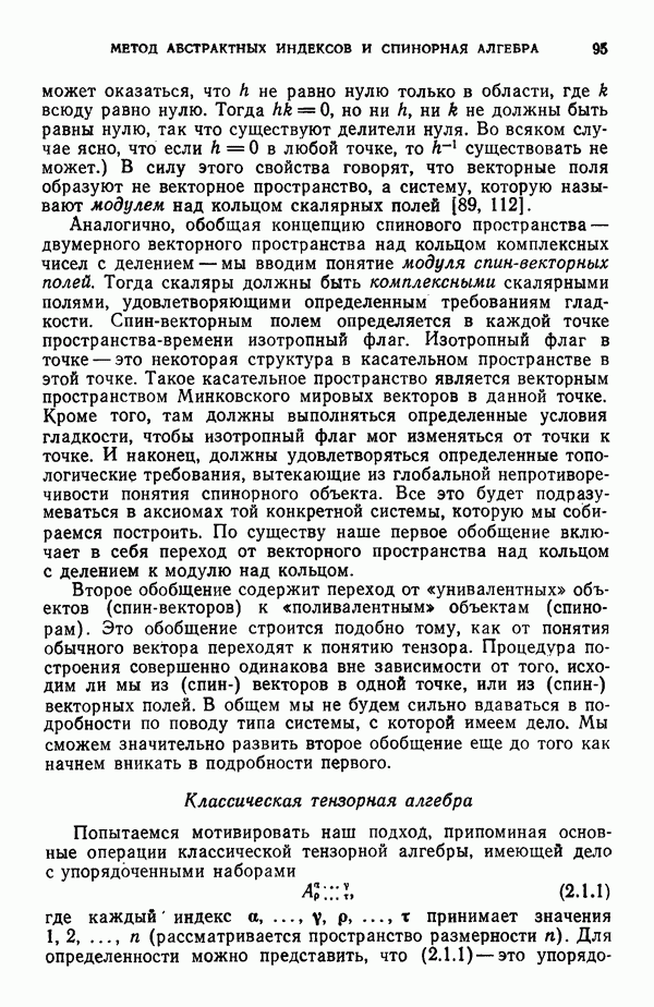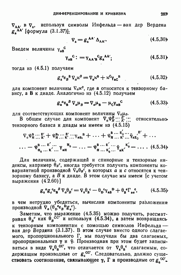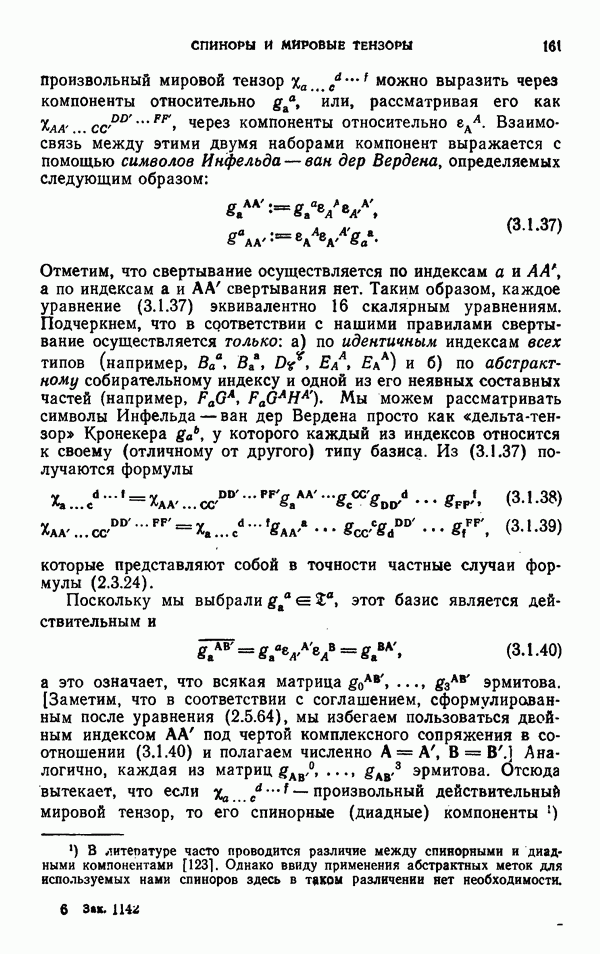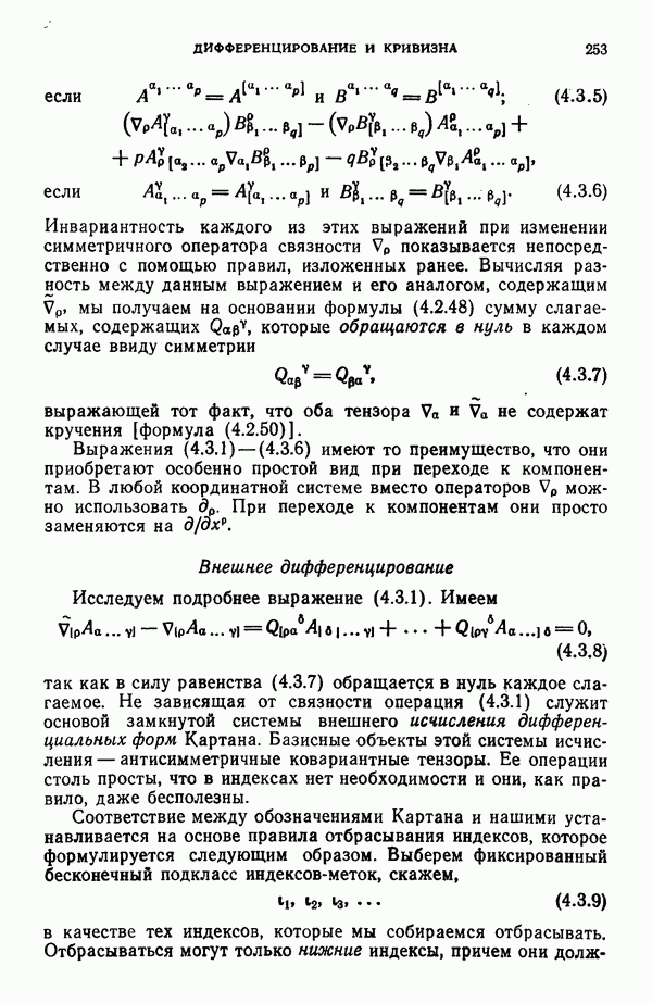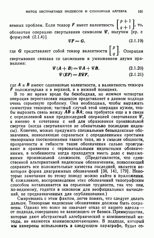 Следовательно, эта система вполне рефлексивна и действительно включена в исходную. Тензорные операции в новой системе в точности такие же, как в исходной. Их можно корректно записать только с помощью допустимой системы собирательных индексов. (Все эти замечания, конечно, не зависят от сделанного выше конкретного выбора расстановки индексов