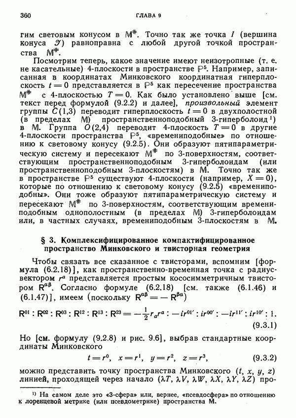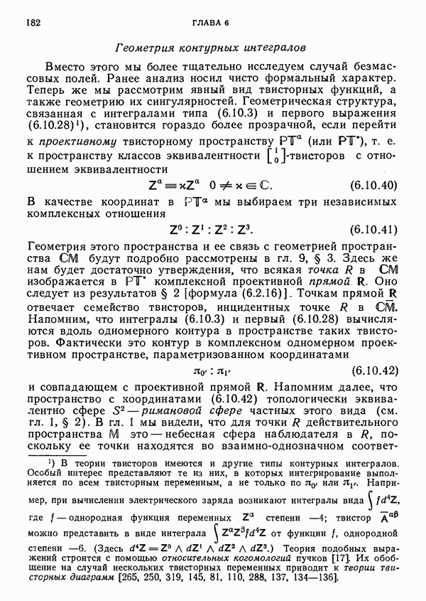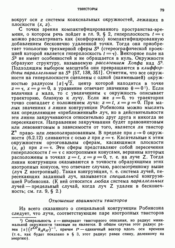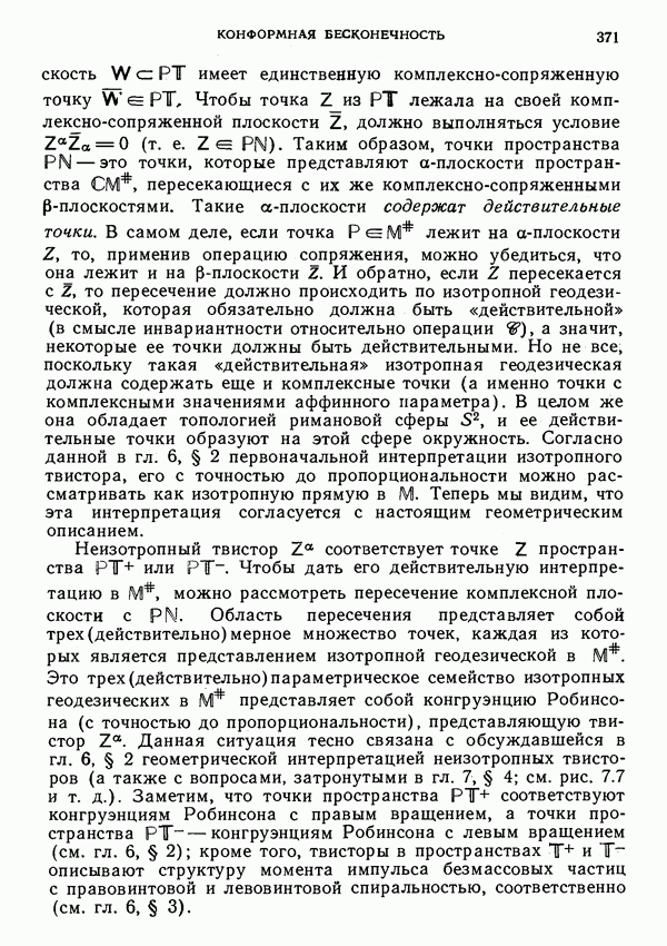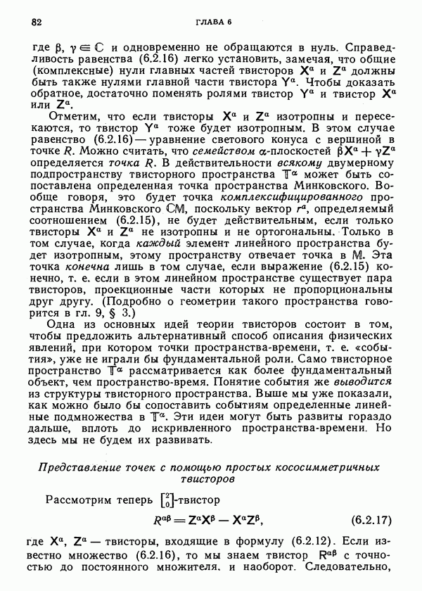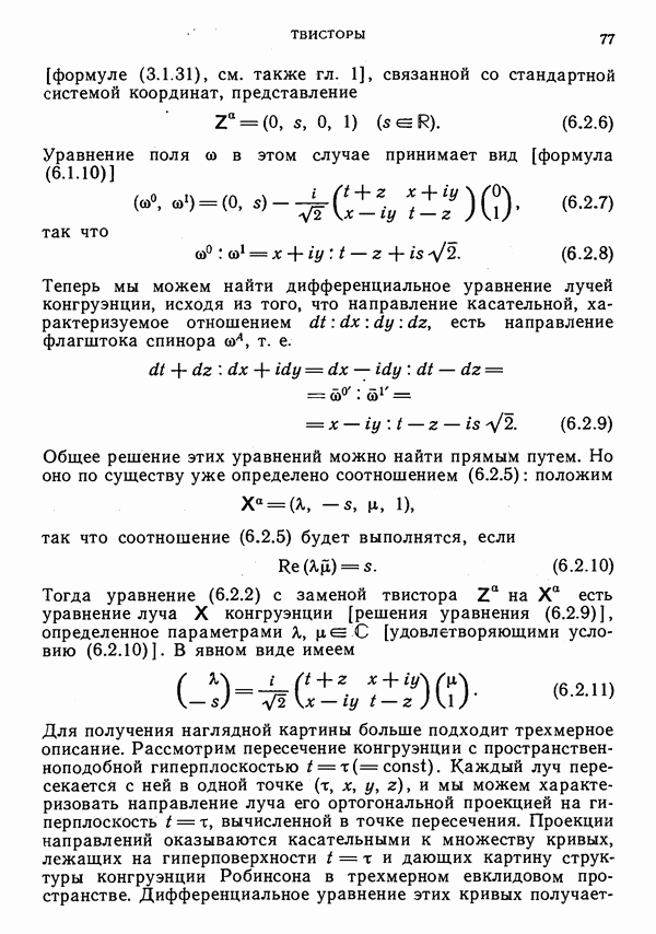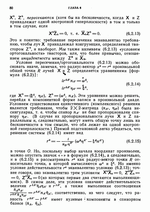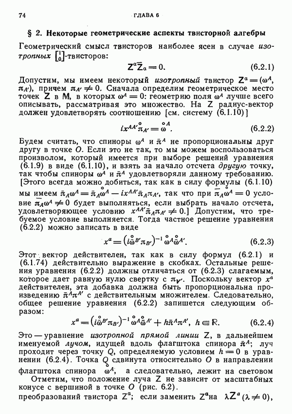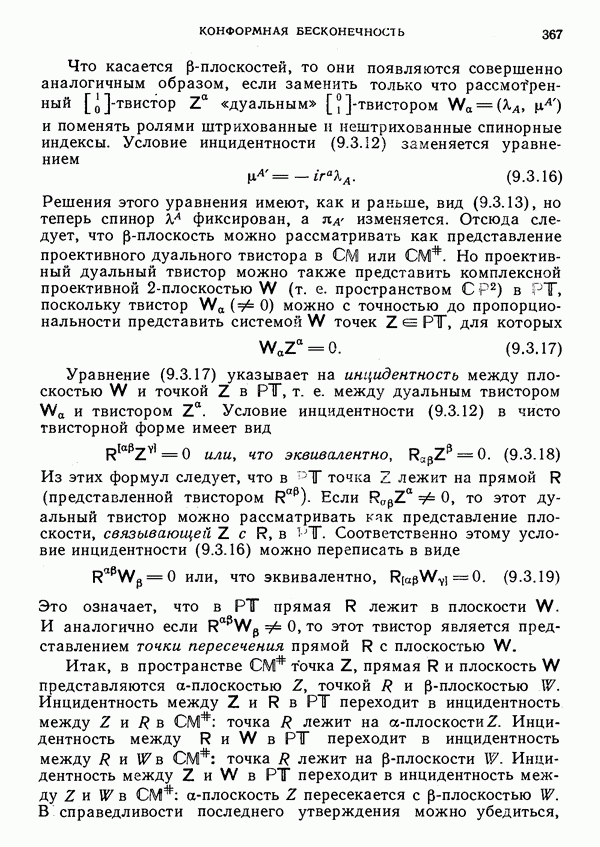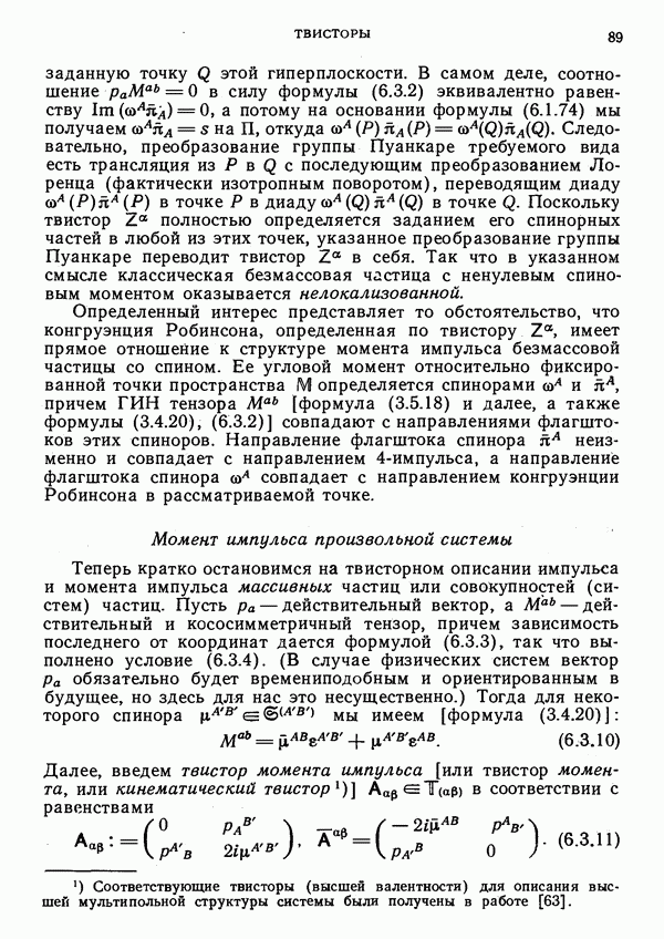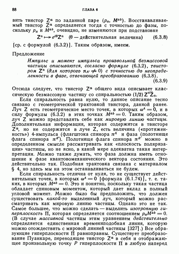 (В случае массивной частицы этим уравнением действительно определяется единственная времениподобная линия, которую можно отождествить с мировой линией частицы [327].) Все образующие гиперплоскости П равноправны. Существует преобразование Пуанкаре, переводящее твистор
