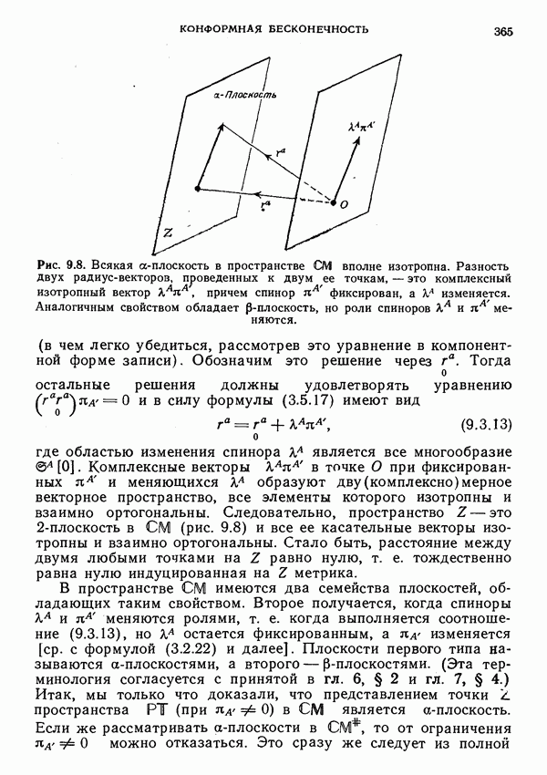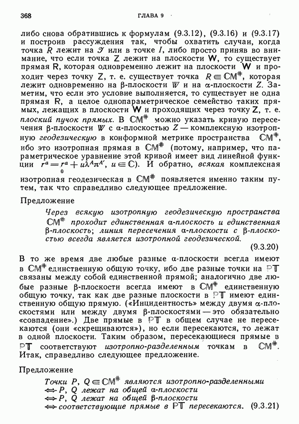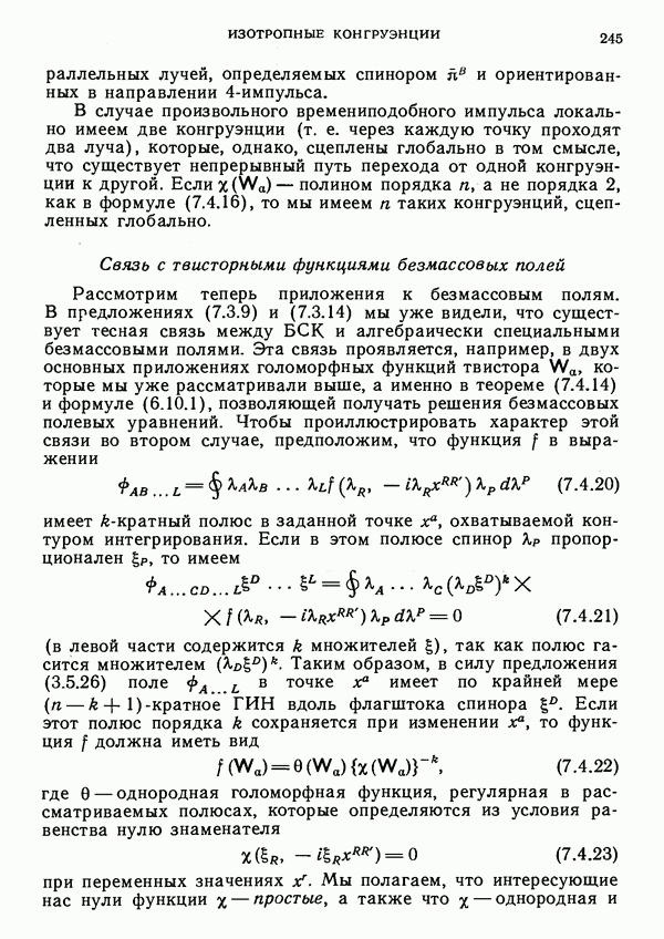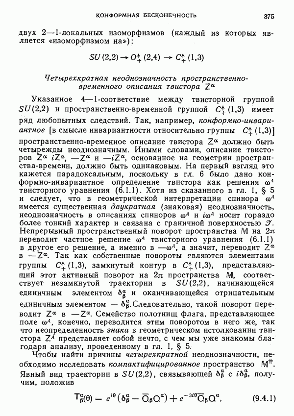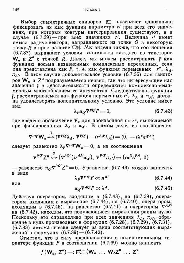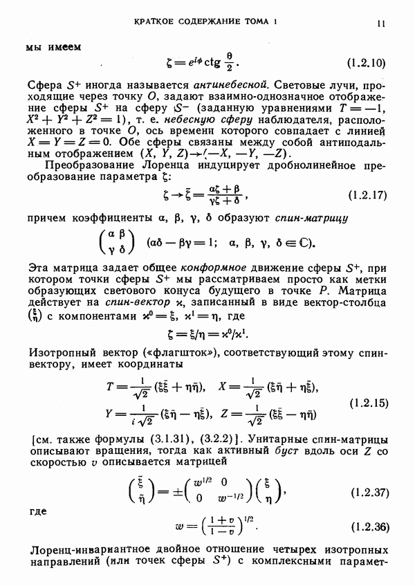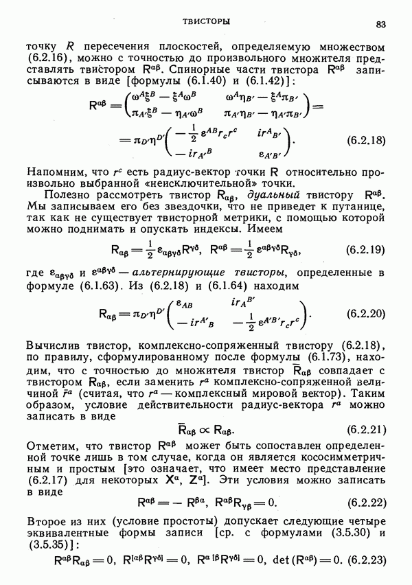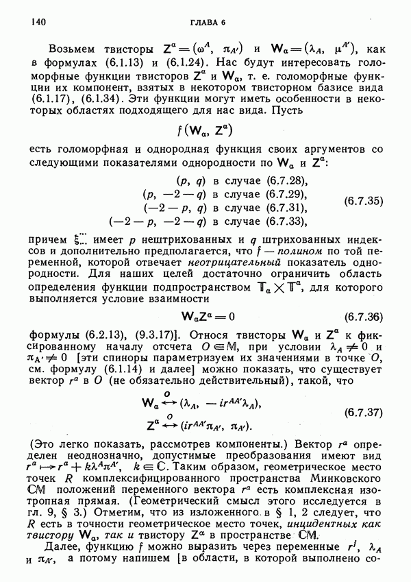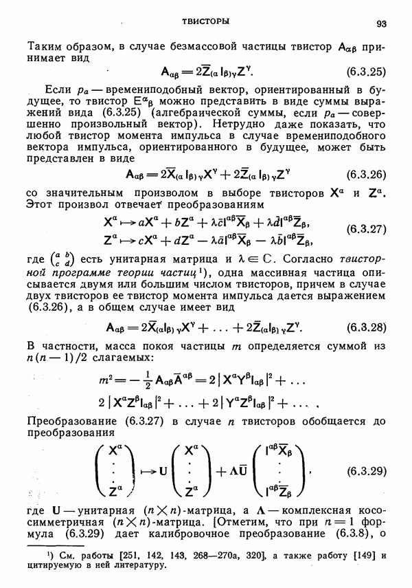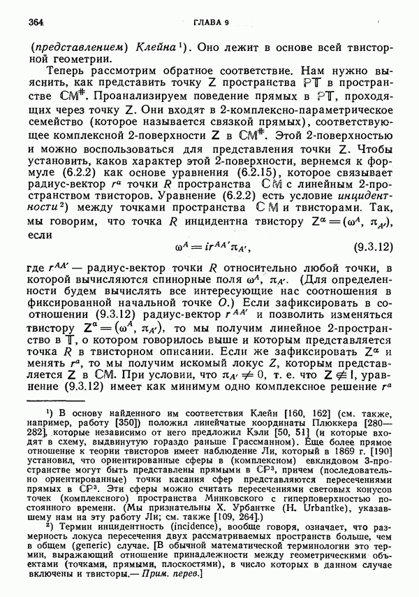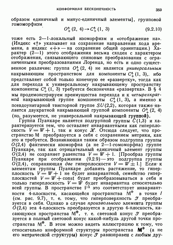 (В случае массивной частицы этим уравнением действительно определяется единственная времениподобная линия, которую можно отождествить с мировой линией частицы [327].) Все образующие гиперплоскости П равноправны. Существует преобразование Пуанкаре, переводящее твистор