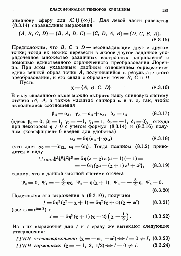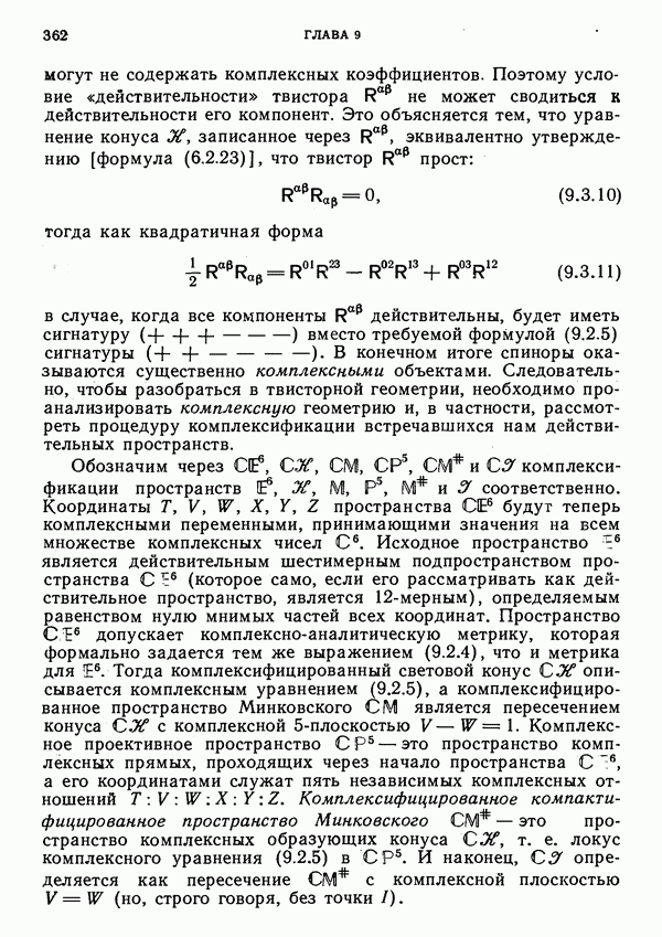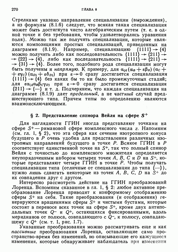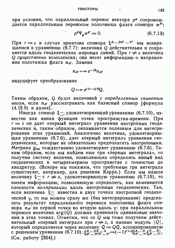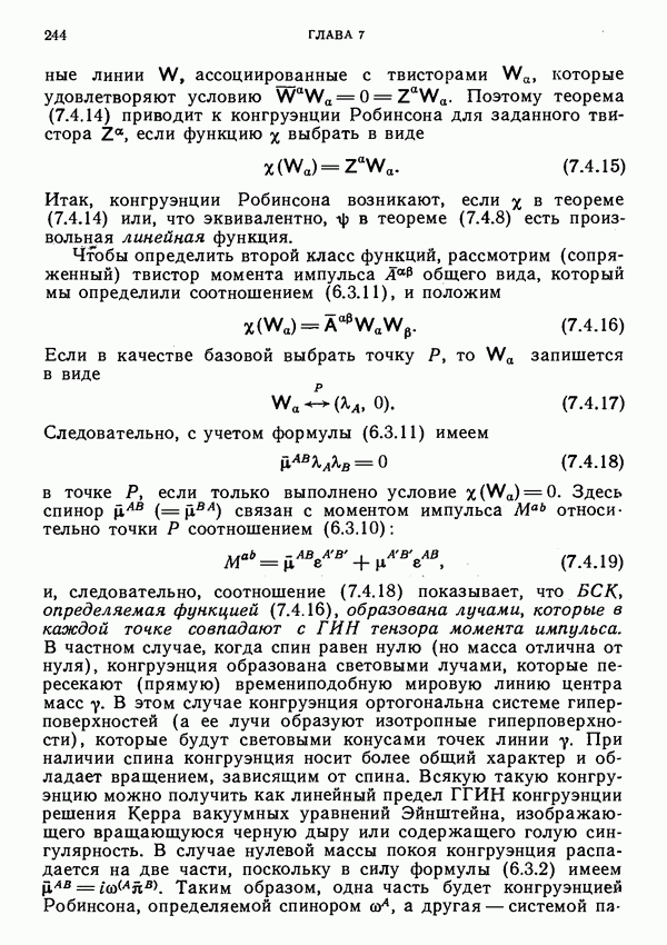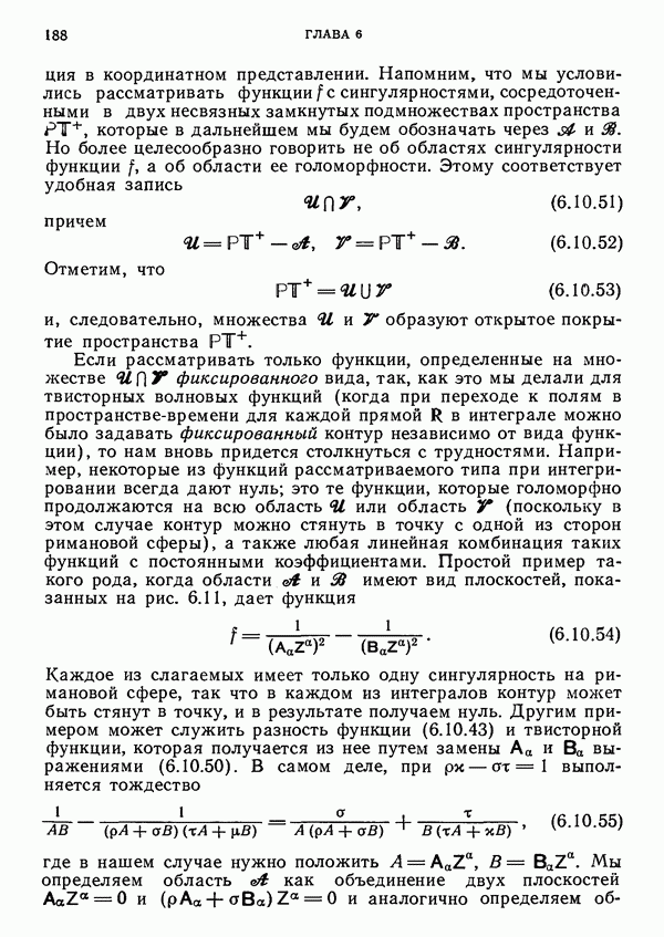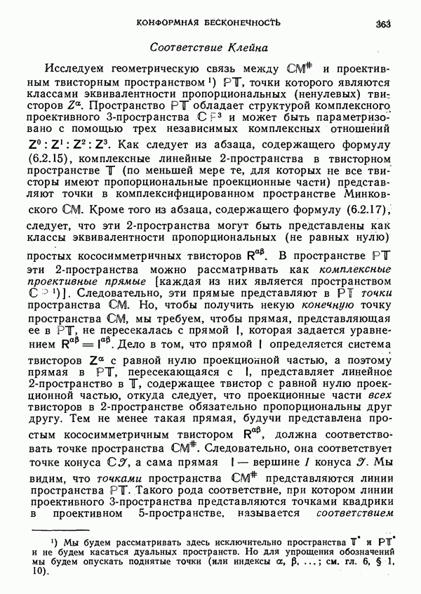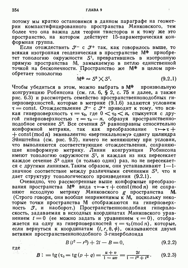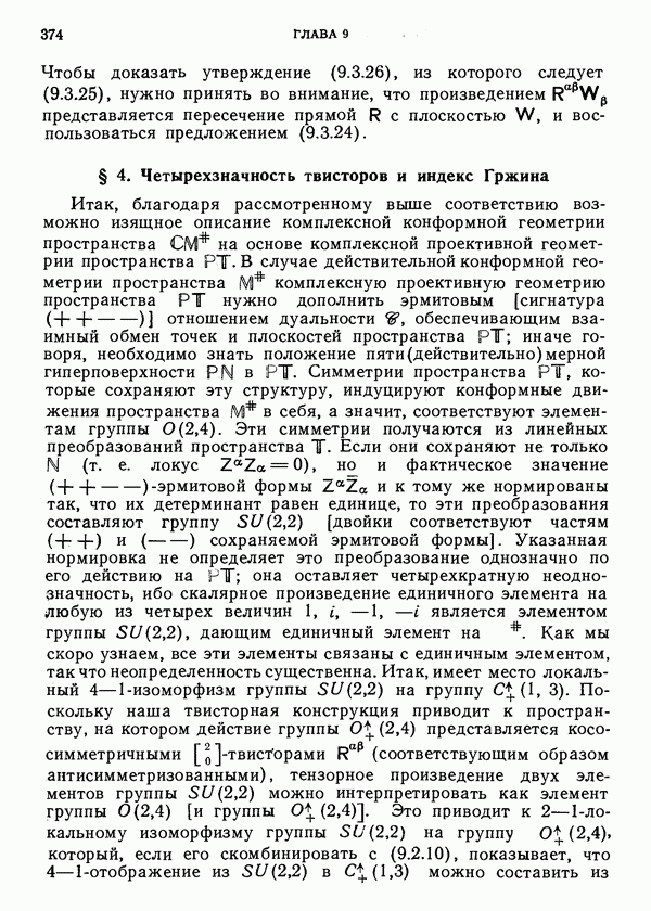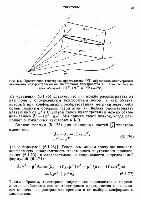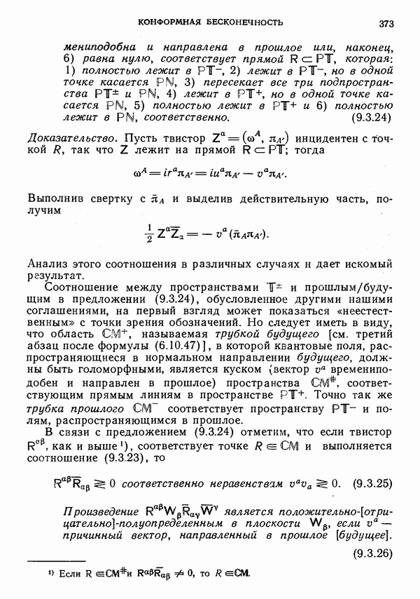 (В случае массивной частицы этим уравнением действительно определяется единственная времениподобная линия, которую можно отождествить с мировой линией частицы [327].) Все образующие гиперплоскости П равноправны. Существует преобразование Пуанкаре, переводящее твистор