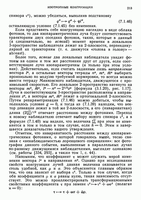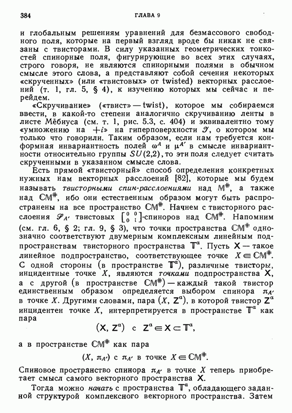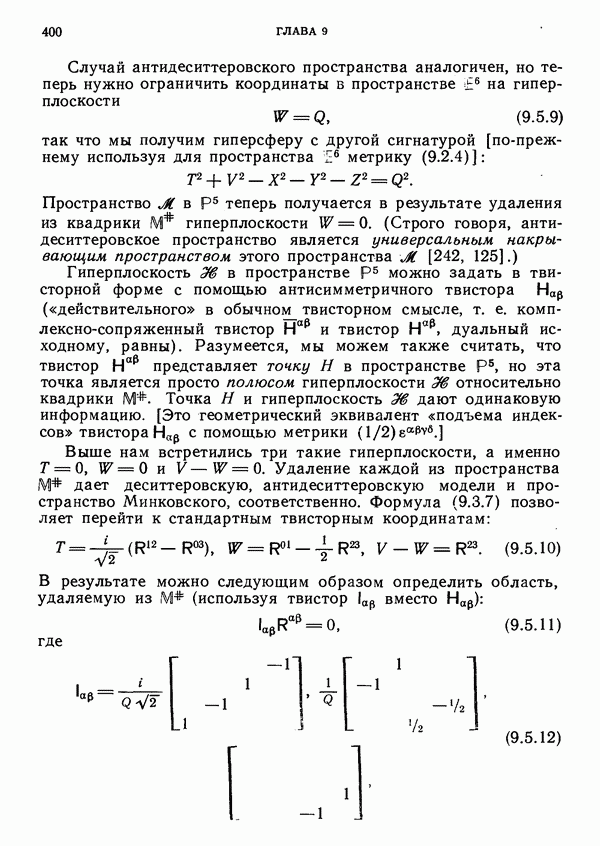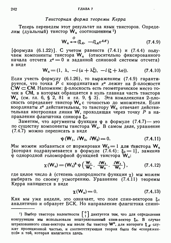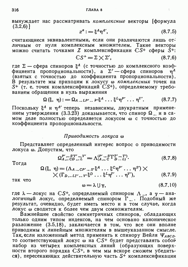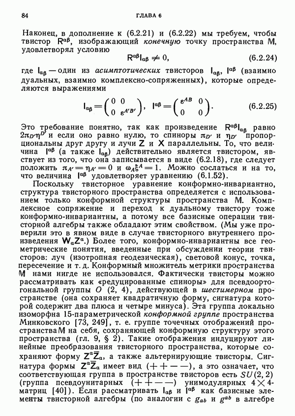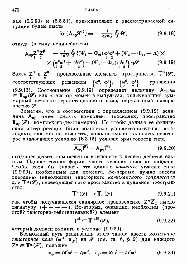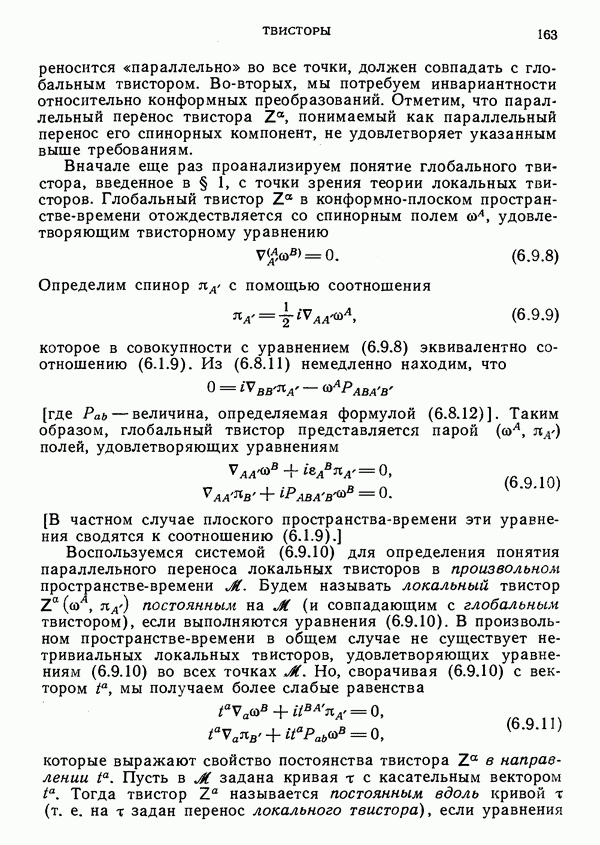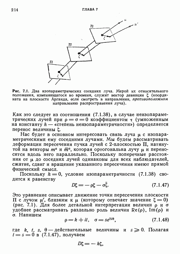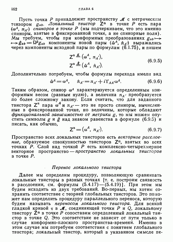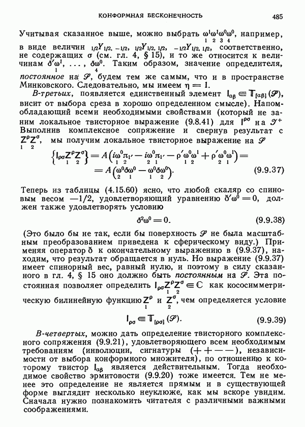 (В случае массивной частицы этим уравнением действительно определяется единственная времениподобная линия, которую можно отождествить с мировой линией частицы [327].) Все образующие гиперплоскости П равноправны. Существует преобразование Пуанкаре, переводящее твистор