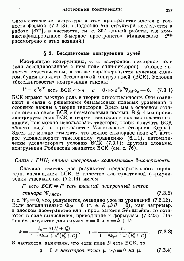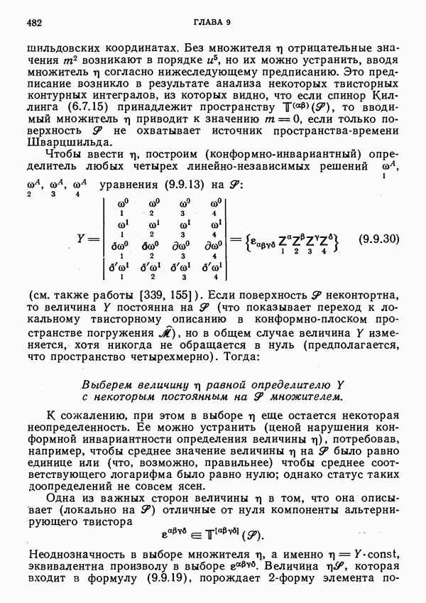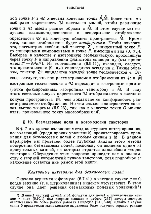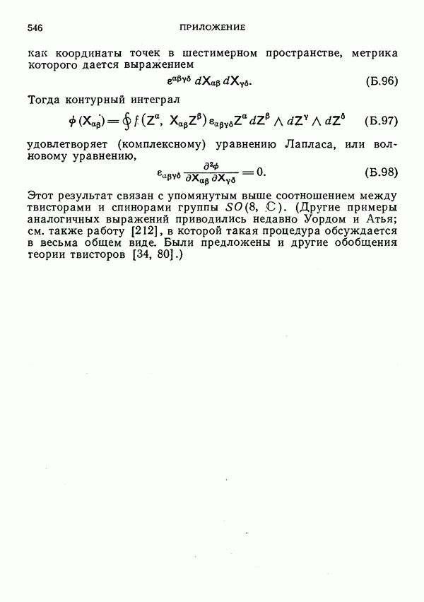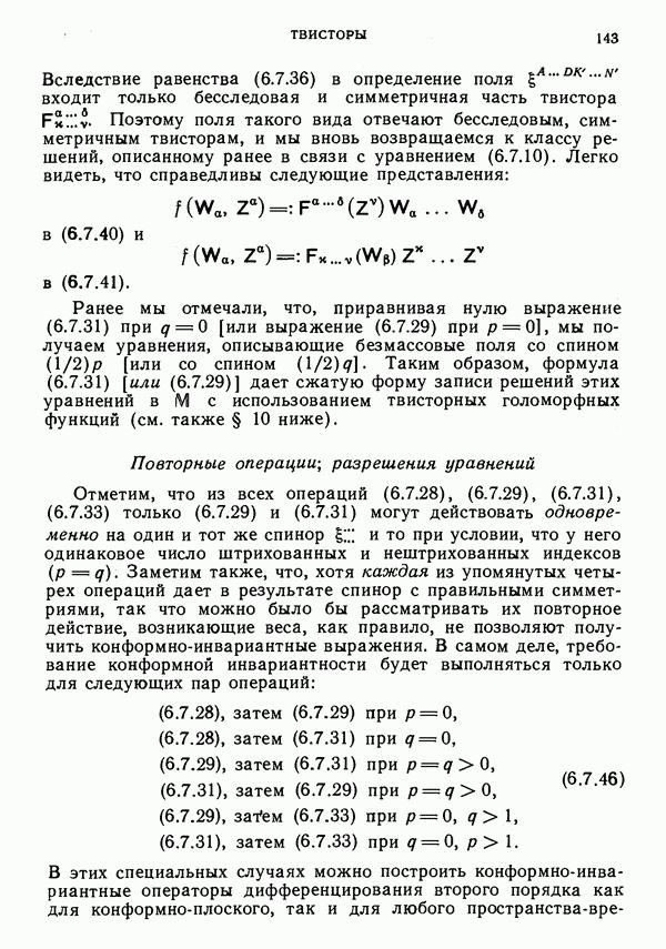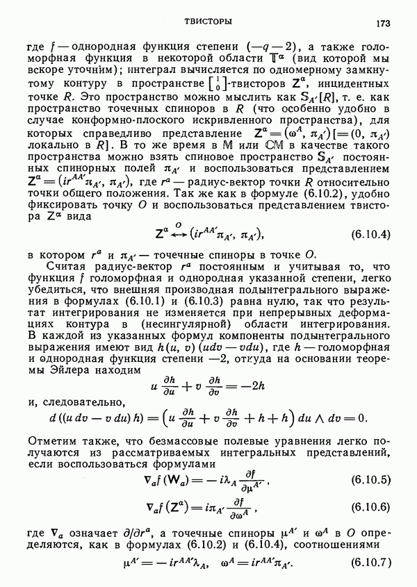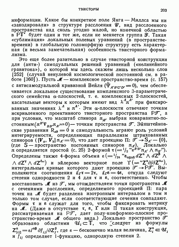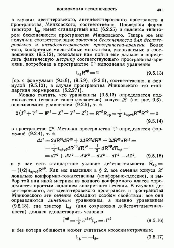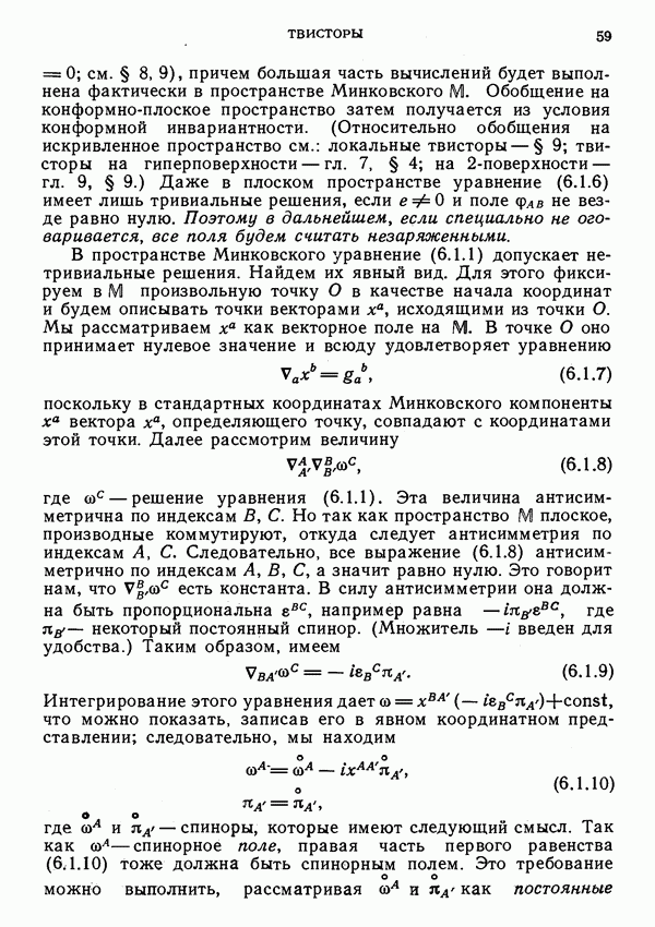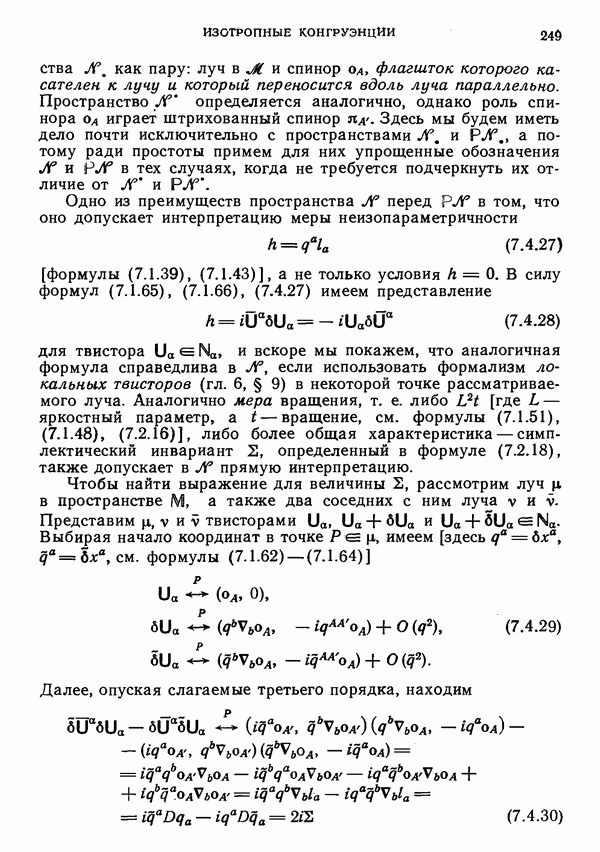 (В случае массивной частицы этим уравнением действительно определяется единственная времениподобная линия, которую можно отождествить с мировой линией частицы [327].) Все образующие гиперплоскости П равноправны. Существует преобразование Пуанкаре, переводящее твистор