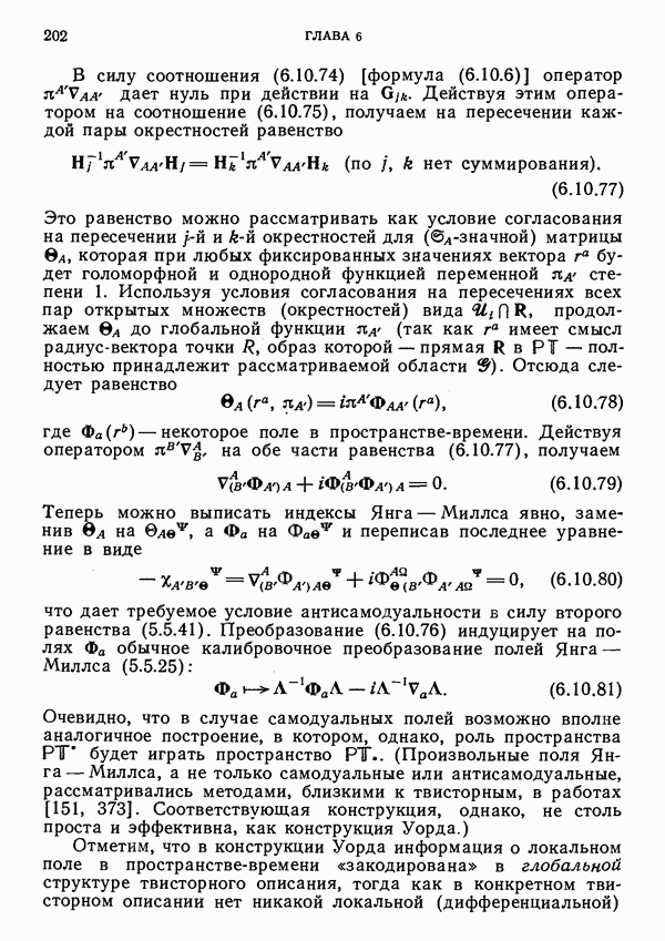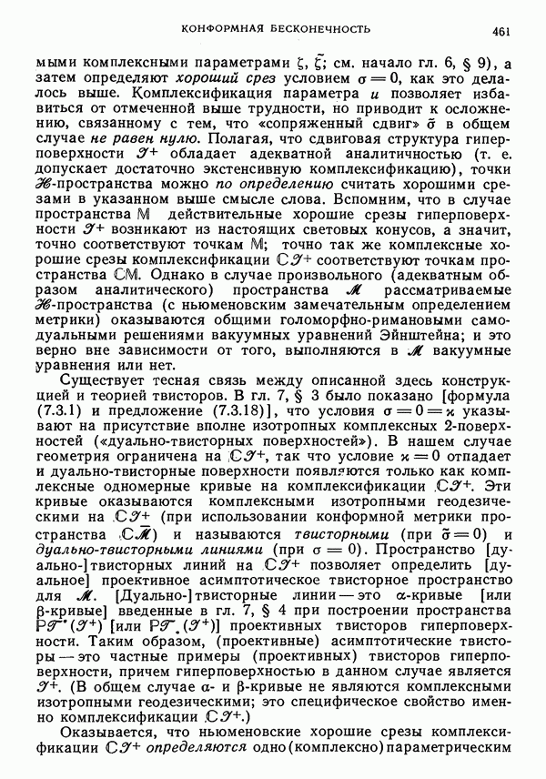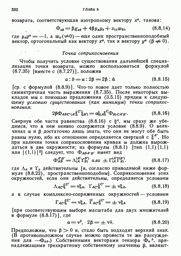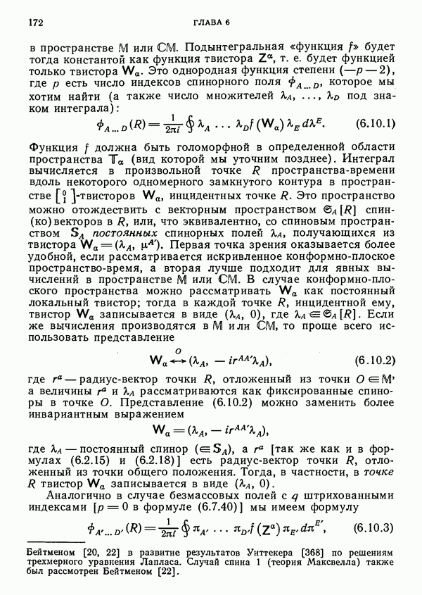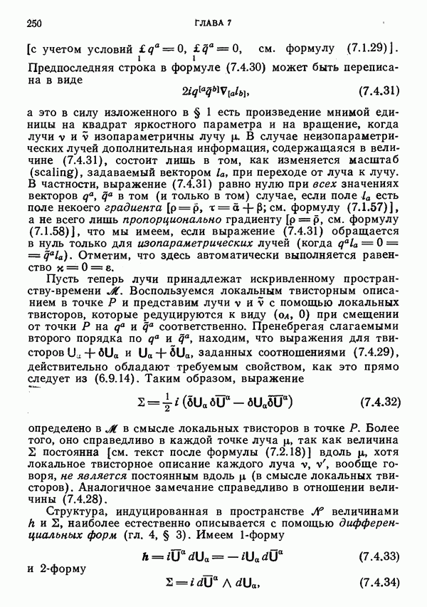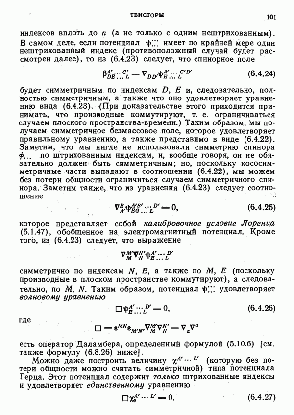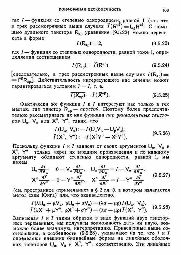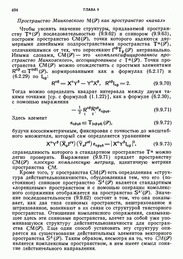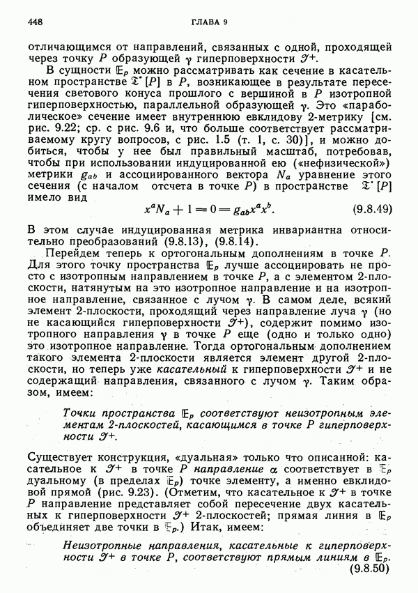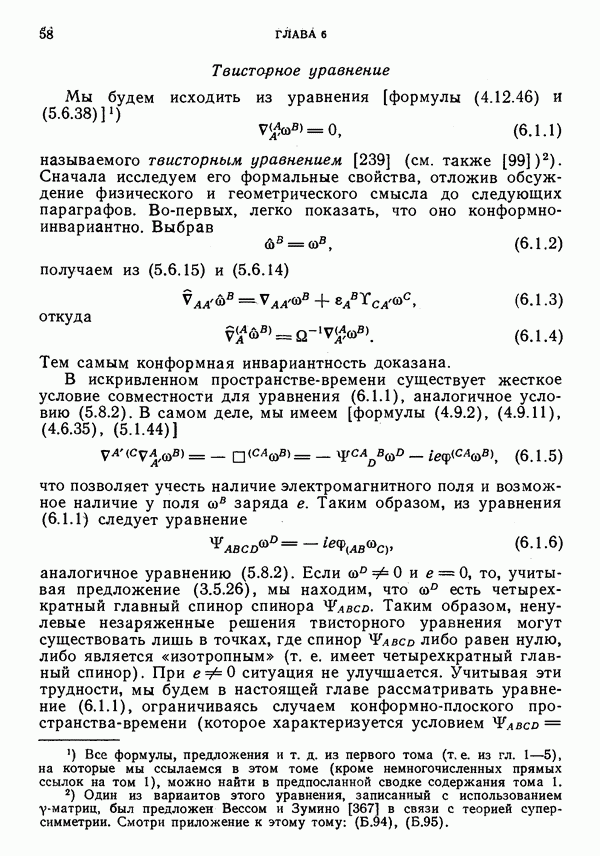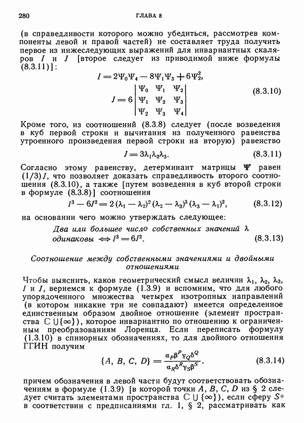 (В случае массивной частицы этим уравнением действительно определяется единственная времениподобная линия, которую можно отождествить с мировой линией частицы [327].) Все образующие гиперплоскости П равноправны. Существует преобразование Пуанкаре, переводящее твистор