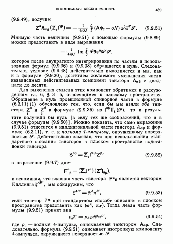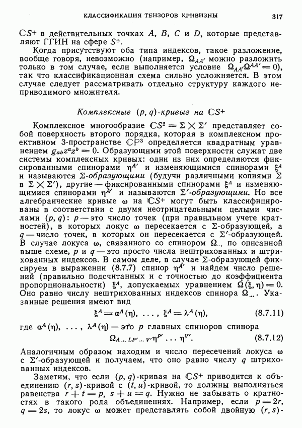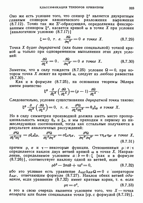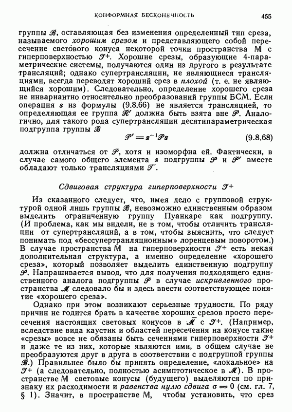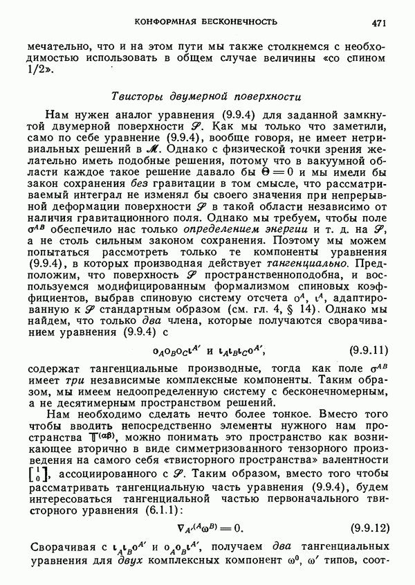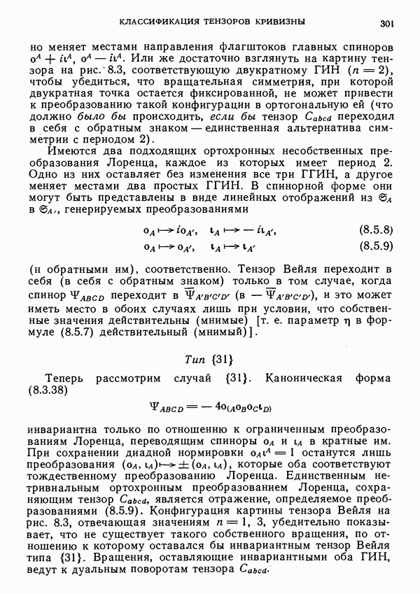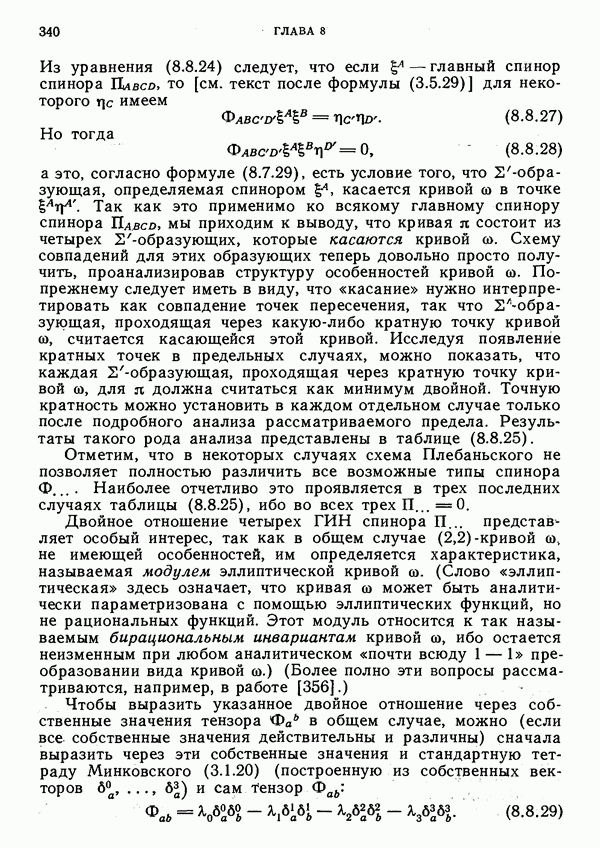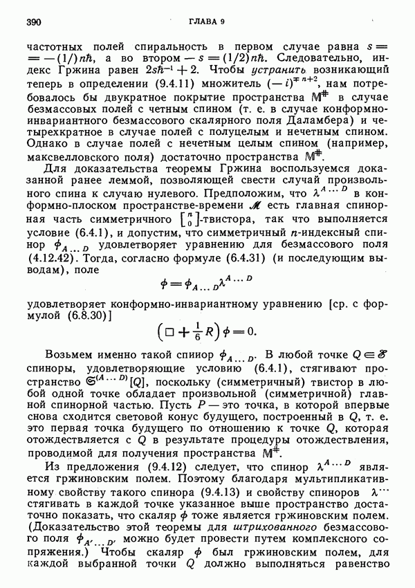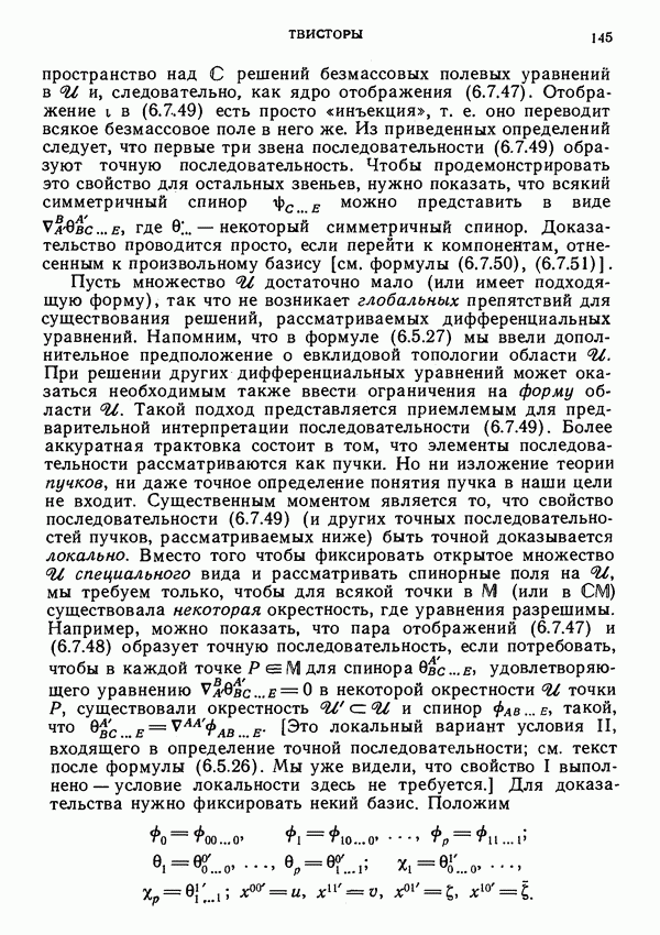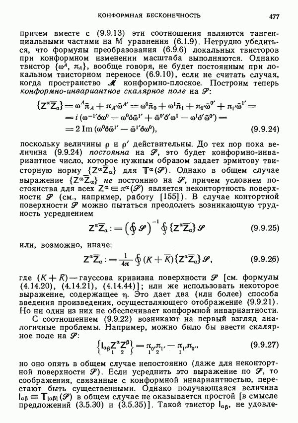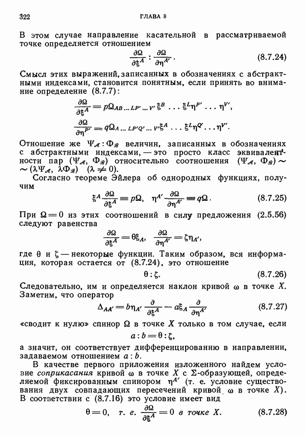 (В случае массивной частицы этим уравнением действительно определяется единственная времениподобная линия, которую можно отождествить с мировой линией частицы [327].) Все образующие гиперплоскости П равноправны. Существует преобразование Пуанкаре, переводящее твистор