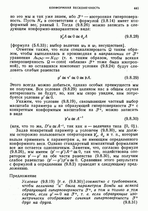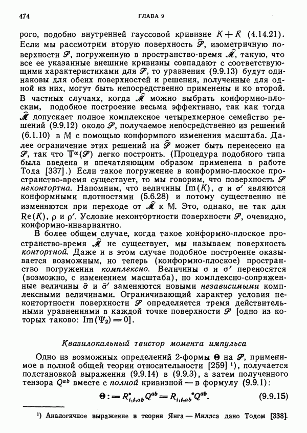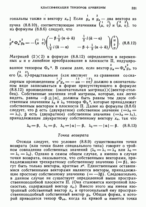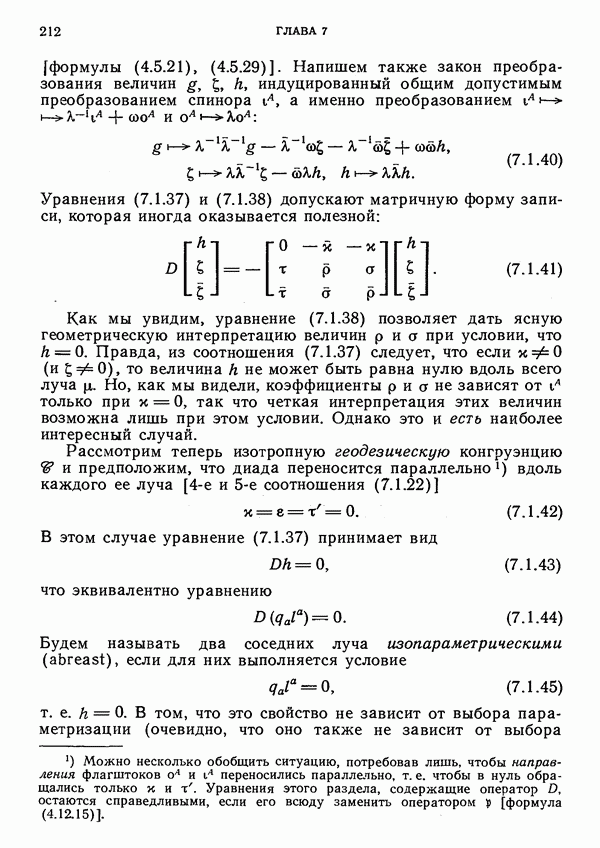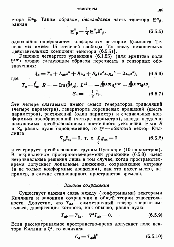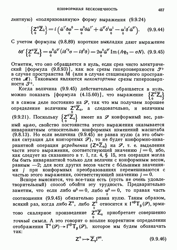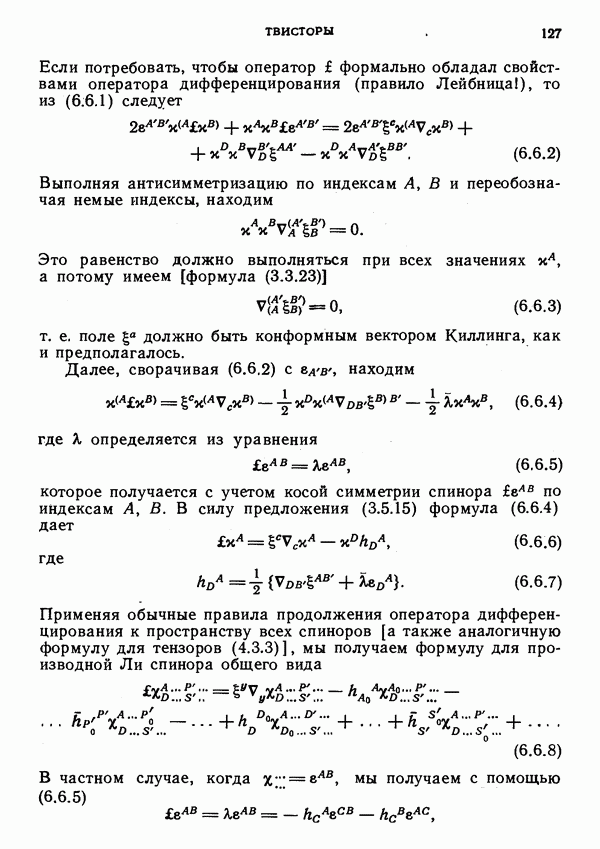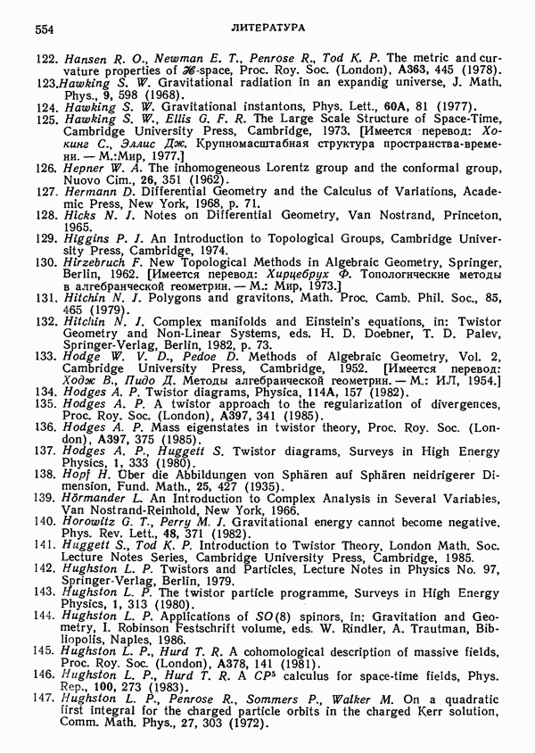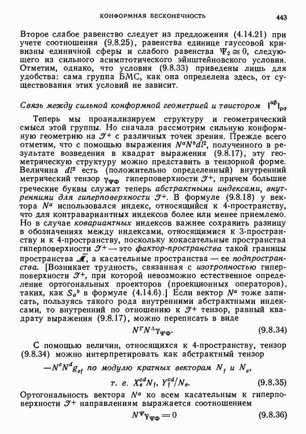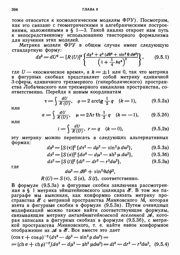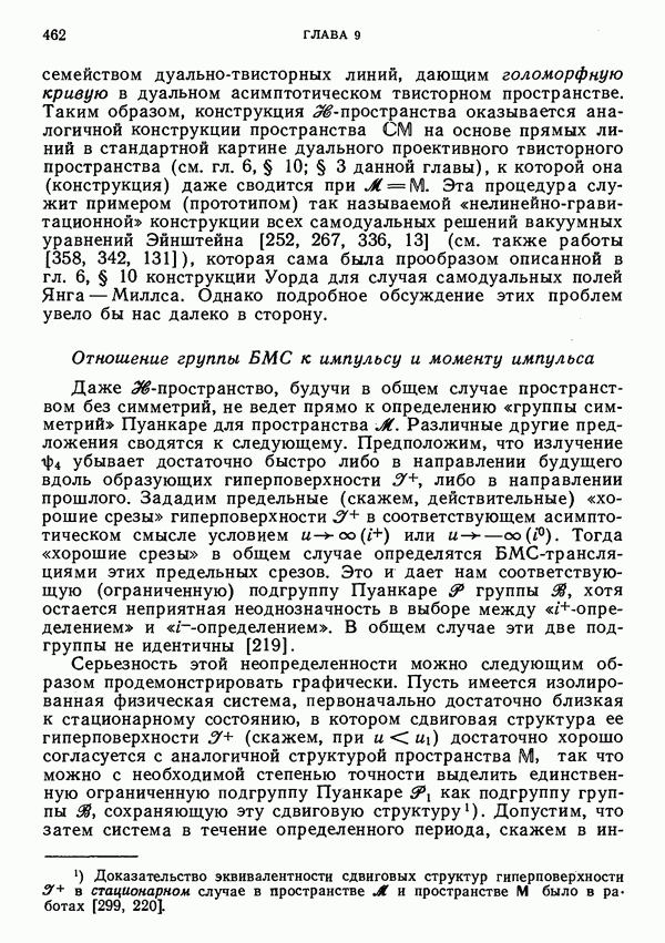 (В случае массивной частицы этим уравнением действительно определяется единственная времениподобная линия, которую можно отождествить с мировой линией частицы [327].) Все образующие гиперплоскости П равноправны. Существует преобразование Пуанкаре, переводящее твистор