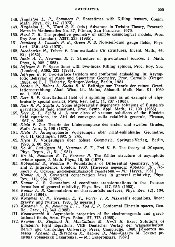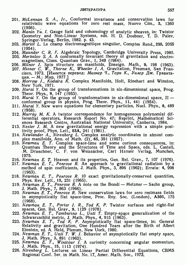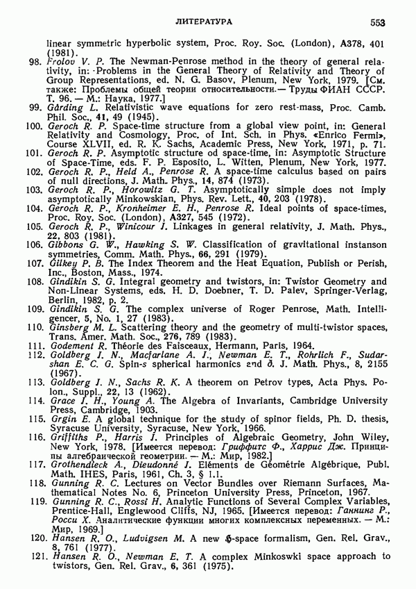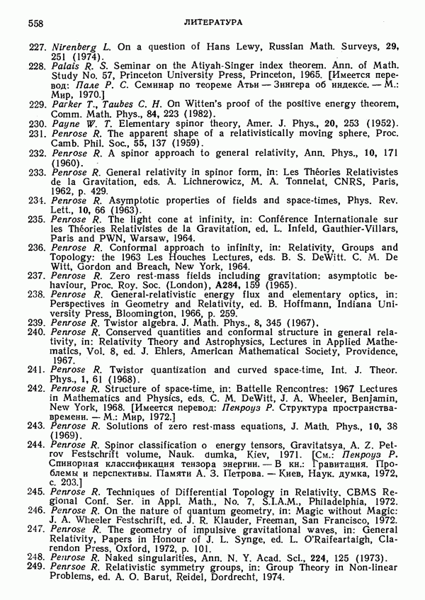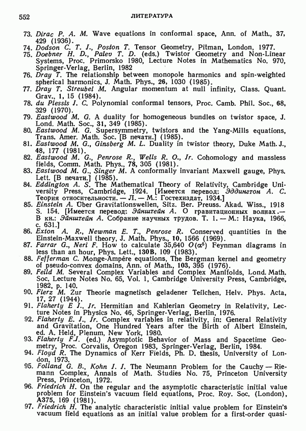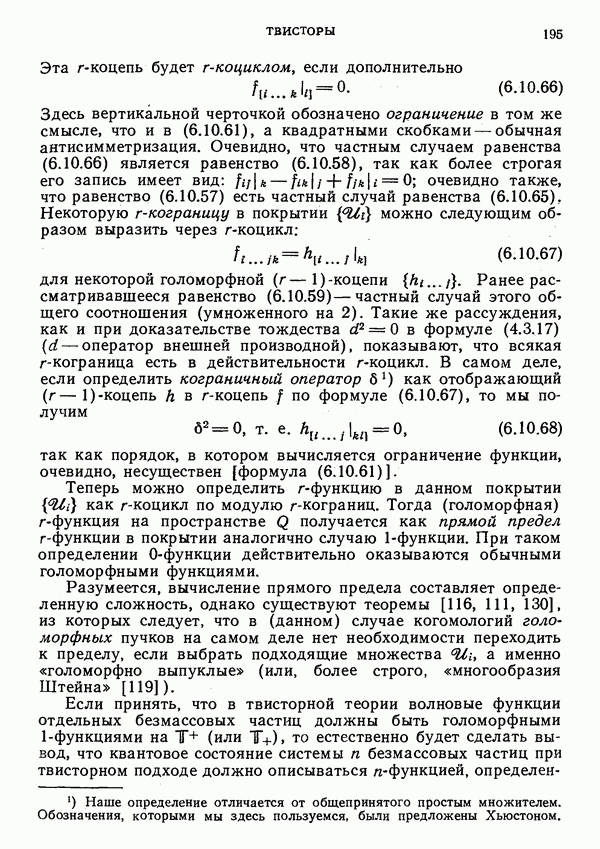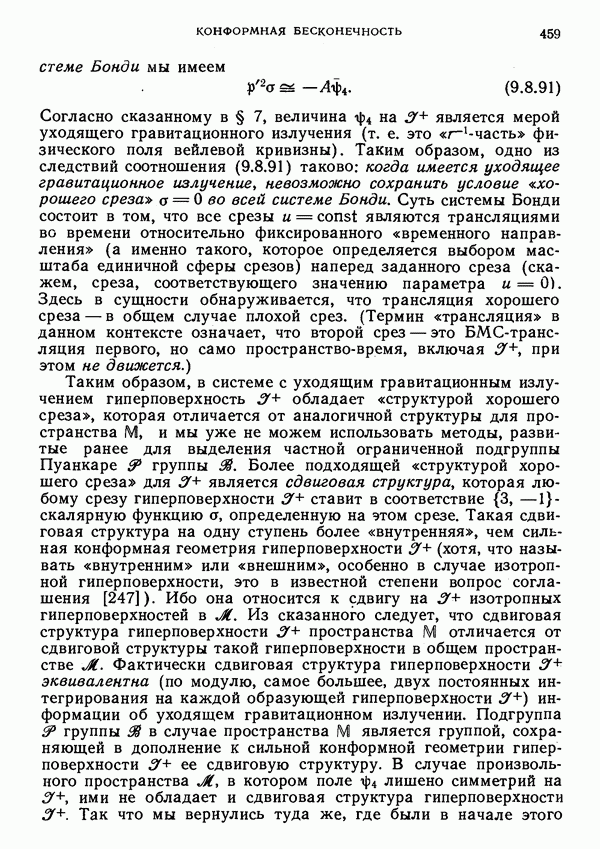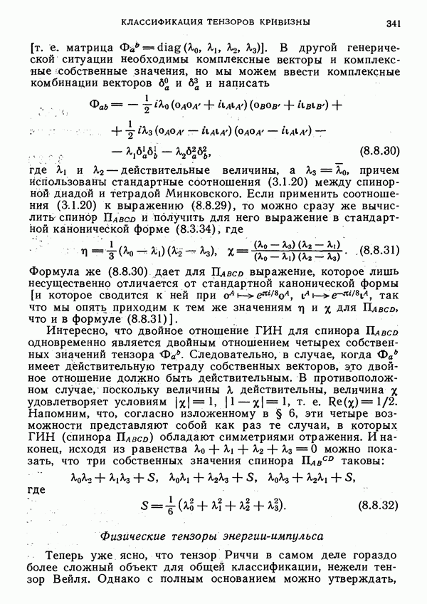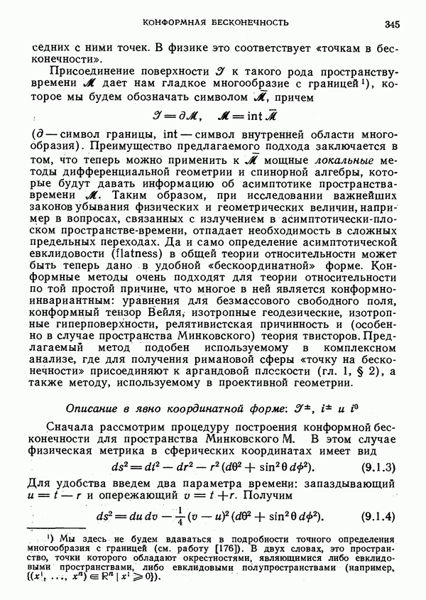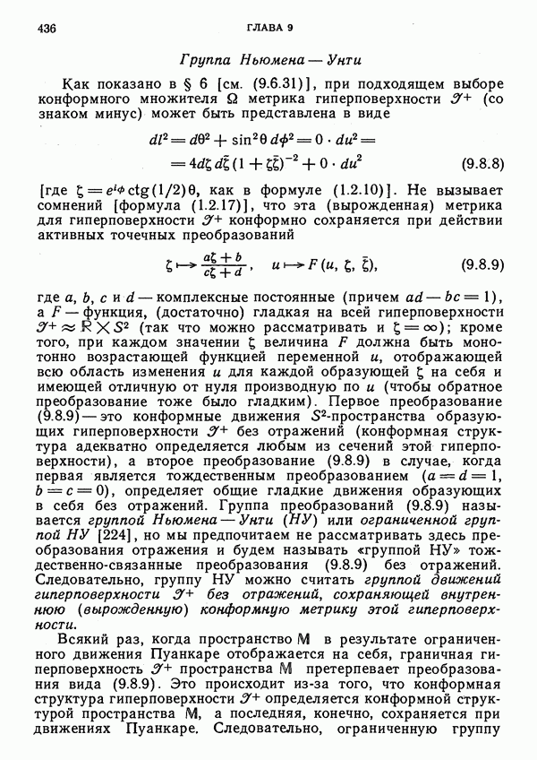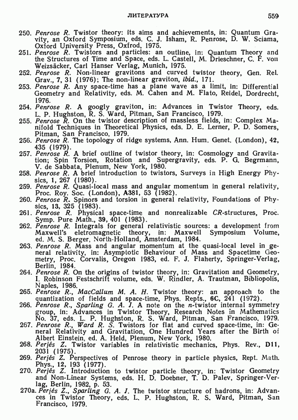 (В случае массивной частицы этим уравнением действительно определяется единственная времениподобная линия, которую можно отождествить с мировой линией частицы [327].) Все образующие гиперплоскости П равноправны. Существует преобразование Пуанкаре, переводящее твистор