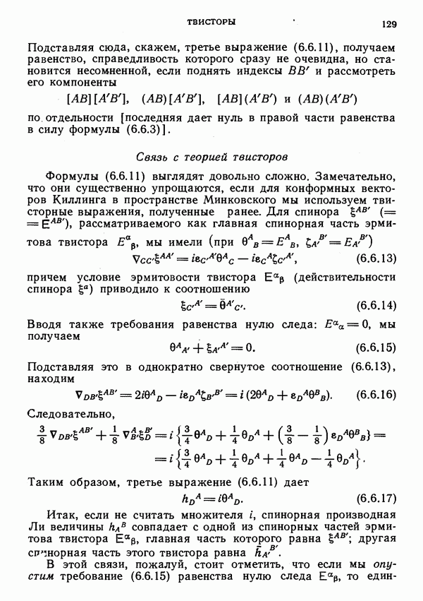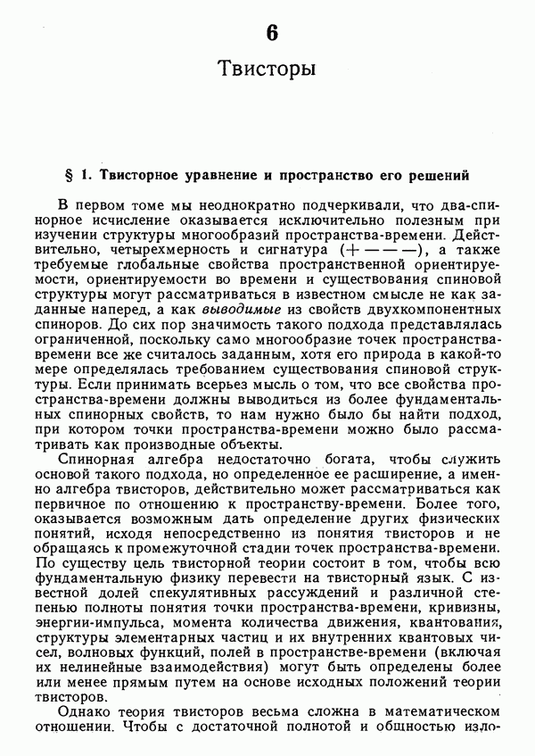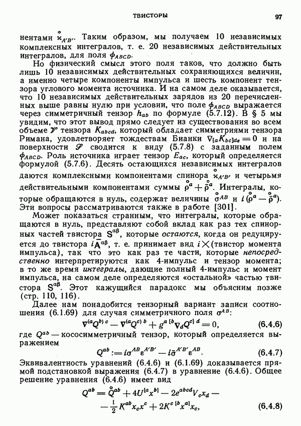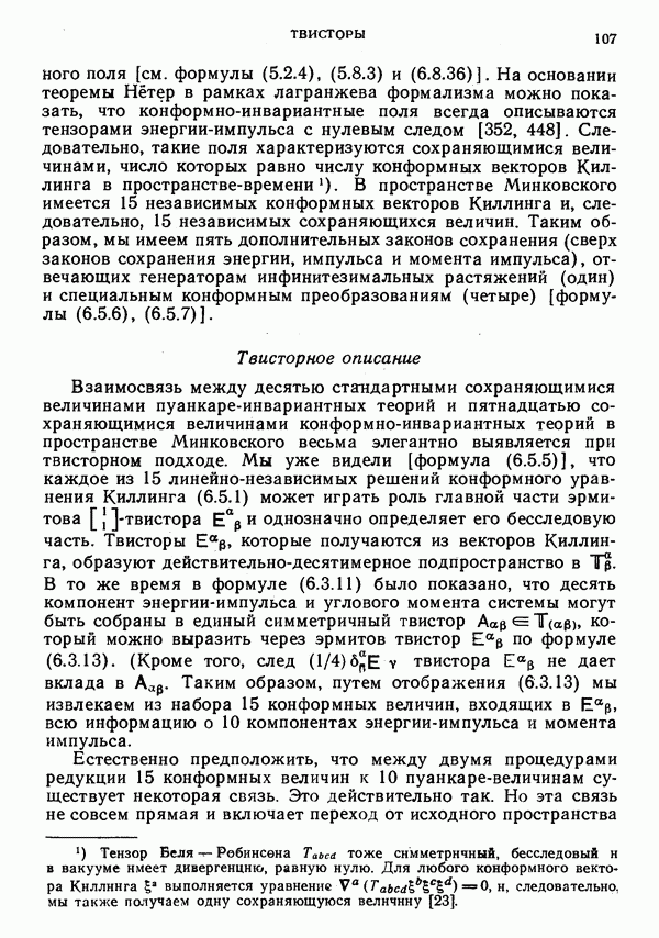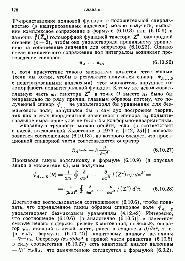Обратимся к физической интерпретации твистора. В известном смысле эта интерпретация более естественна и более полна, чем геометрическая, обсуждавшаяся выше. Физический смысл имеет не класс эквивалентности пропорциональных твисторов