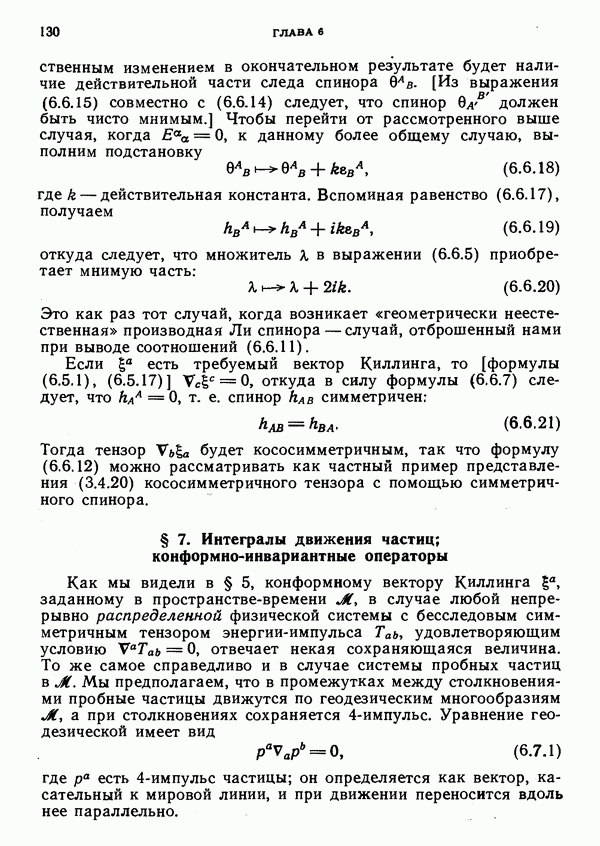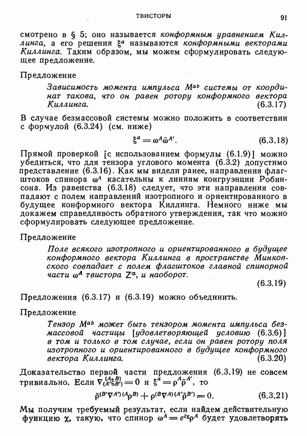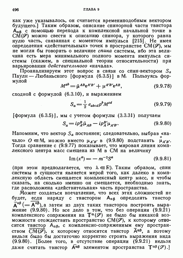 Рассмотрим далее физическую систему, импульс и момент импульса которой определяются формулами вида (6.3.2). Поскольку 4-импульс изотропен и направлен в будущее, можно считать, что мы имеем дело с безмассовой частицей (масса покоя которой равна нулю). Ее спин можно выразить через спин-вектор Паули — Любаньского: