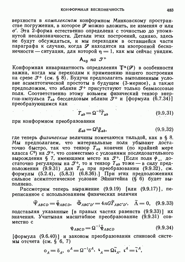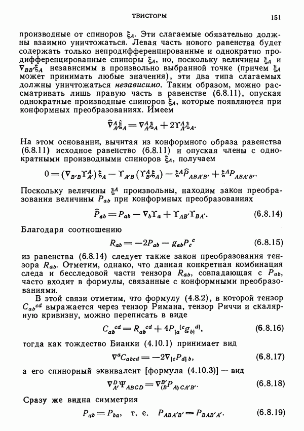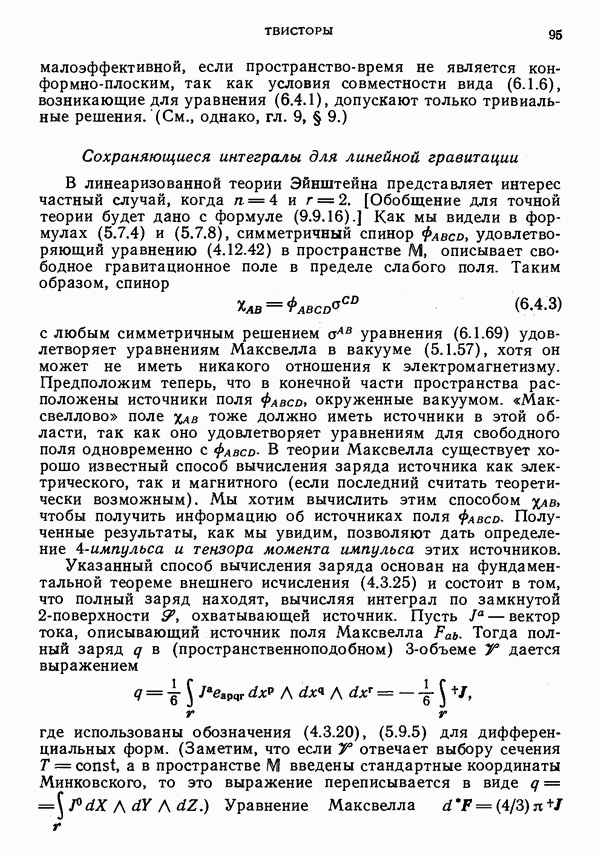 импульса (момента количества движения) в специальной теории относительности [327]. В них названные величины, отнесенные к произвольной точке Р, выражаются через те же величины, отнесенные к началу отсчета О. Для дальнейших ссылок отметим также, что из формул (6.3.3) можно получить следующее уравнение для дуального тензора