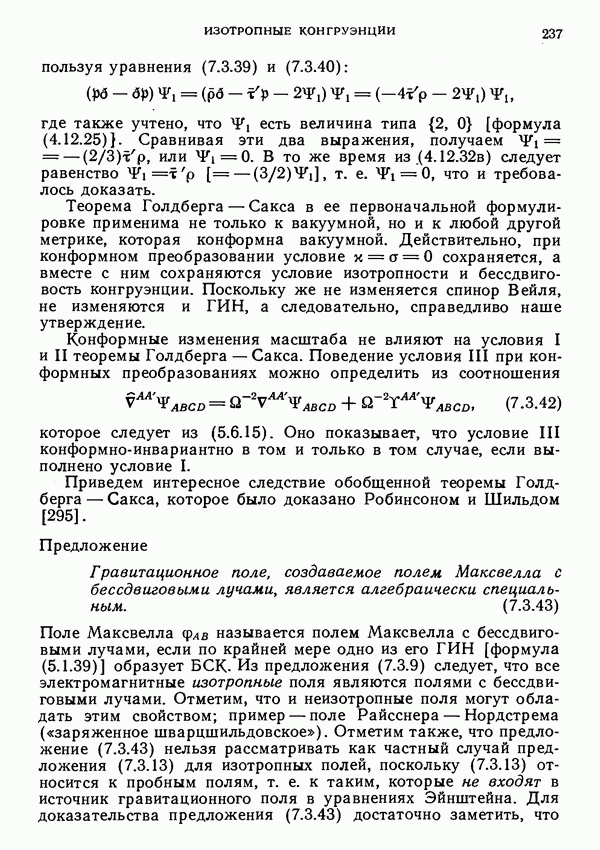 совпадает с направлением конгруэнции Робинсона в рассматриваемой точке.