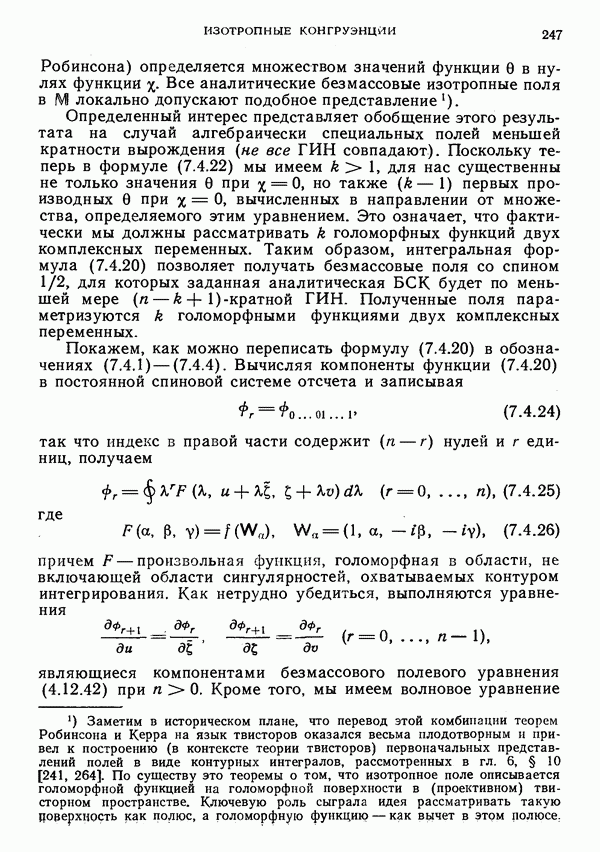 Определенный интерес представляет то обстоятельство, что конгруэнция Робинсона, определенная по твистору