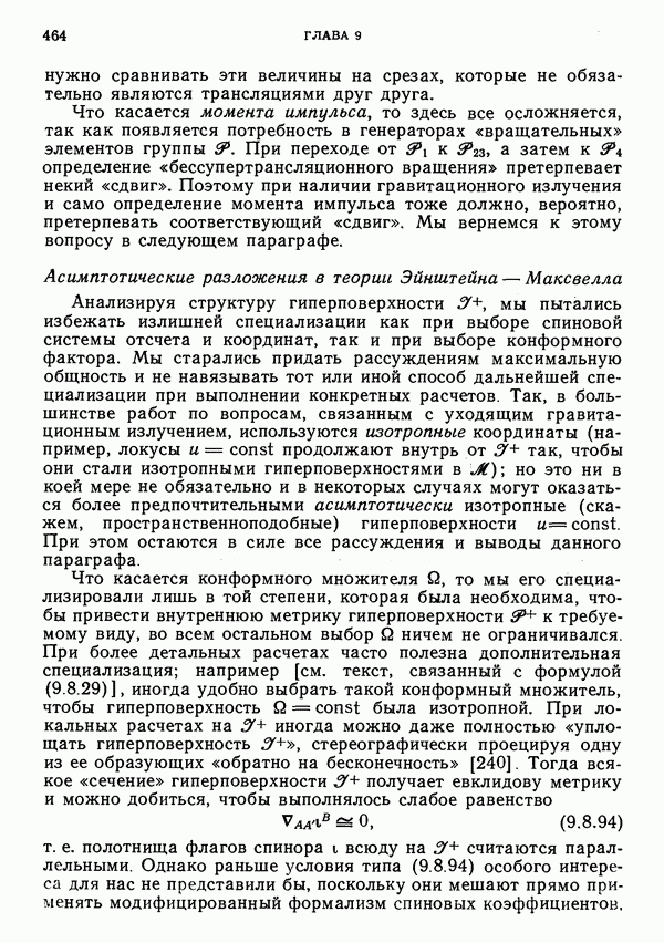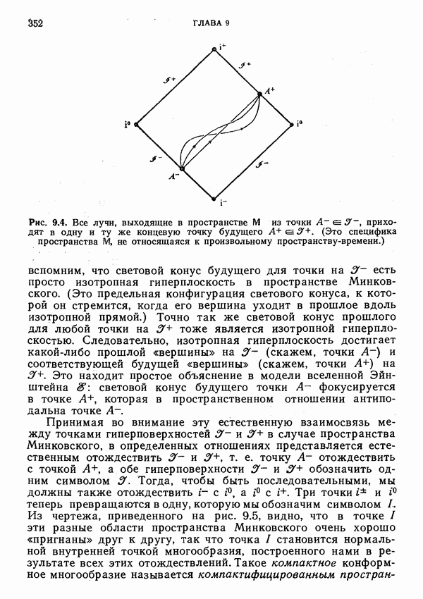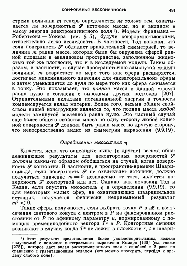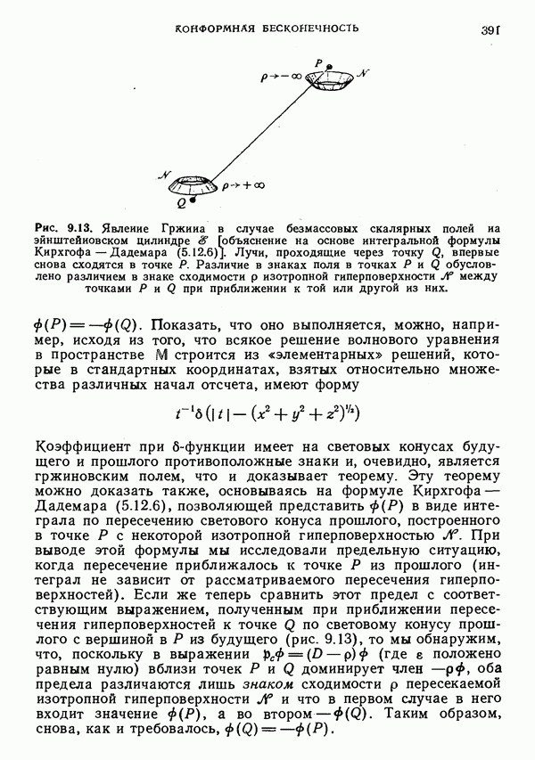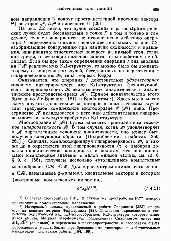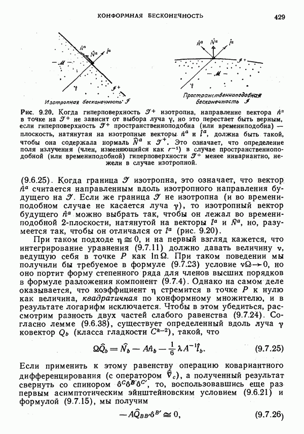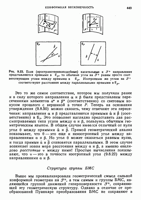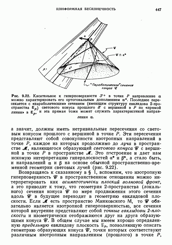 Это и понятно, поскольку такая частица обладает спиновым моментом, который дает вклад в полный угловой момент. Можно было бы предположить, что должен существовать какой-то выделенный луч, который можно рассматривать как мировую линию частицы. Однако это не так. Самое большее, что можно сделать — выделить изотропную гиперплоскость П, которая определяется соотношением