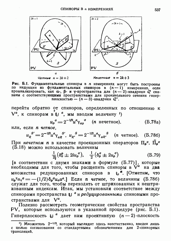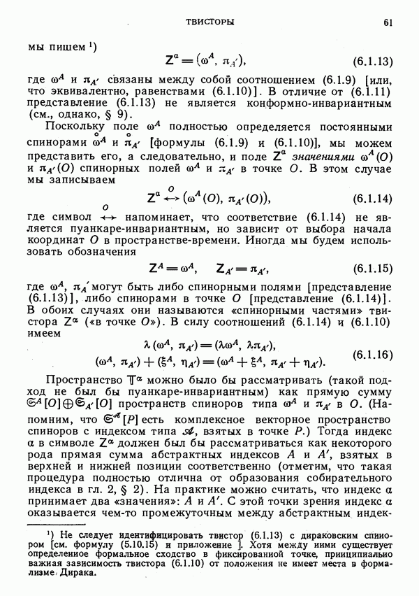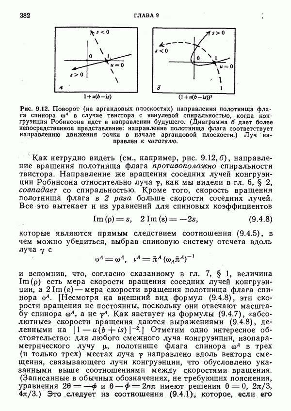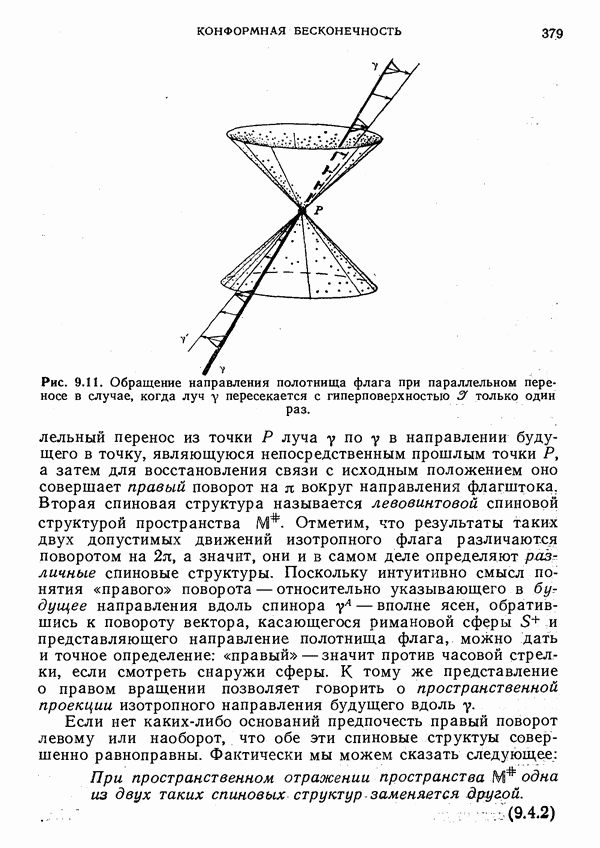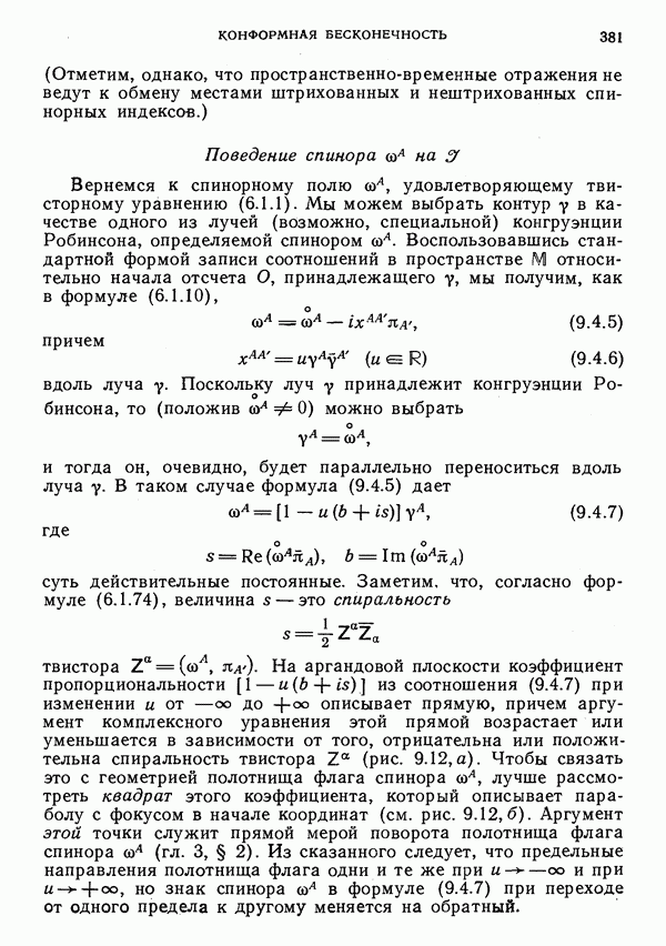 Полотнище флага спинора пА можно в определенном смысле рассматривать как «плоскость поляризации» частицы, но не ясно, в какой мере адекватна такая интерпретация. Можно также думать, что фаза должна иметь отношение к фазе квантовомеханического вектора состояния. Это действительно так. Подобная трактовка связана с материалом § 4, но здесь мы на этом останавливаться не будем.