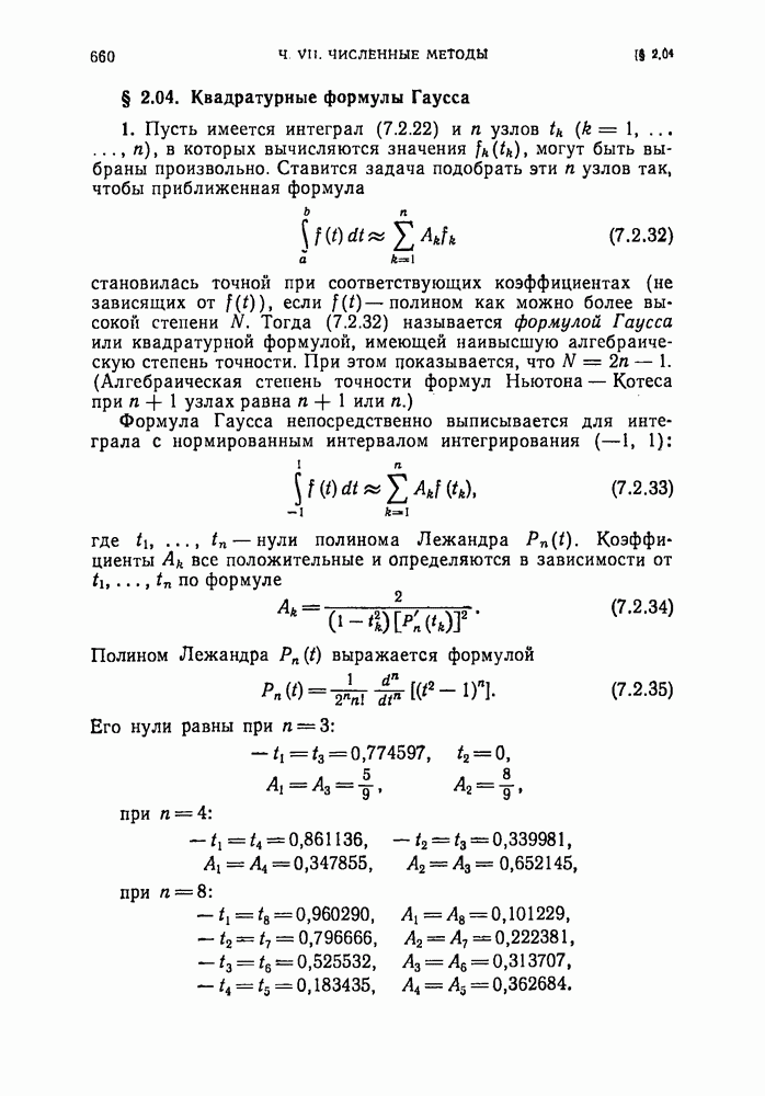 Формулы Гаусса являются часто наиболее эффективными, т. е. позволяют вычислять интеграл на произвольном интервале интегрирования с заданной точностью при минимальном числе узлов (более подробно об оптимальном выборе квадратурной формулы см. в [9]).